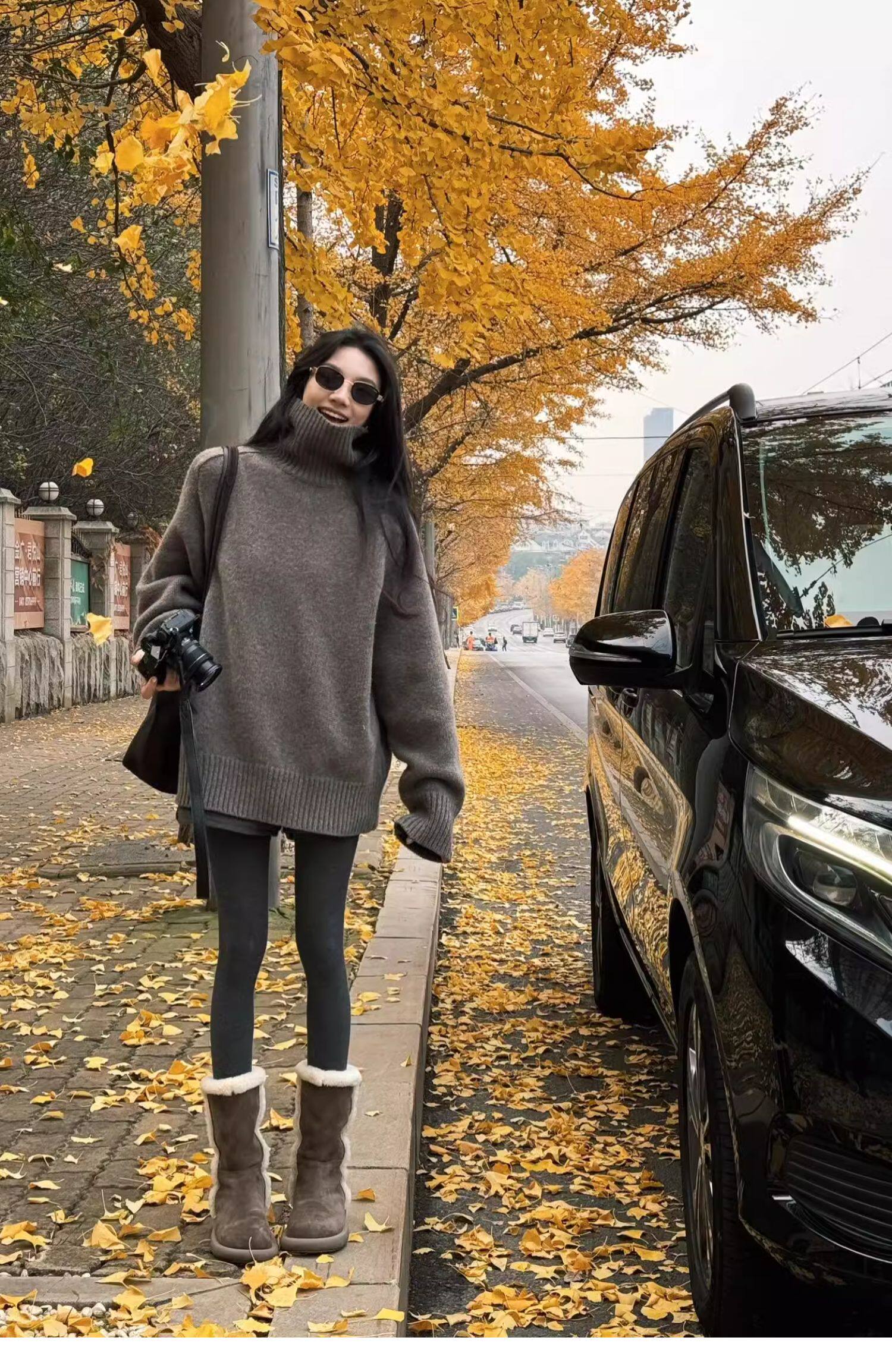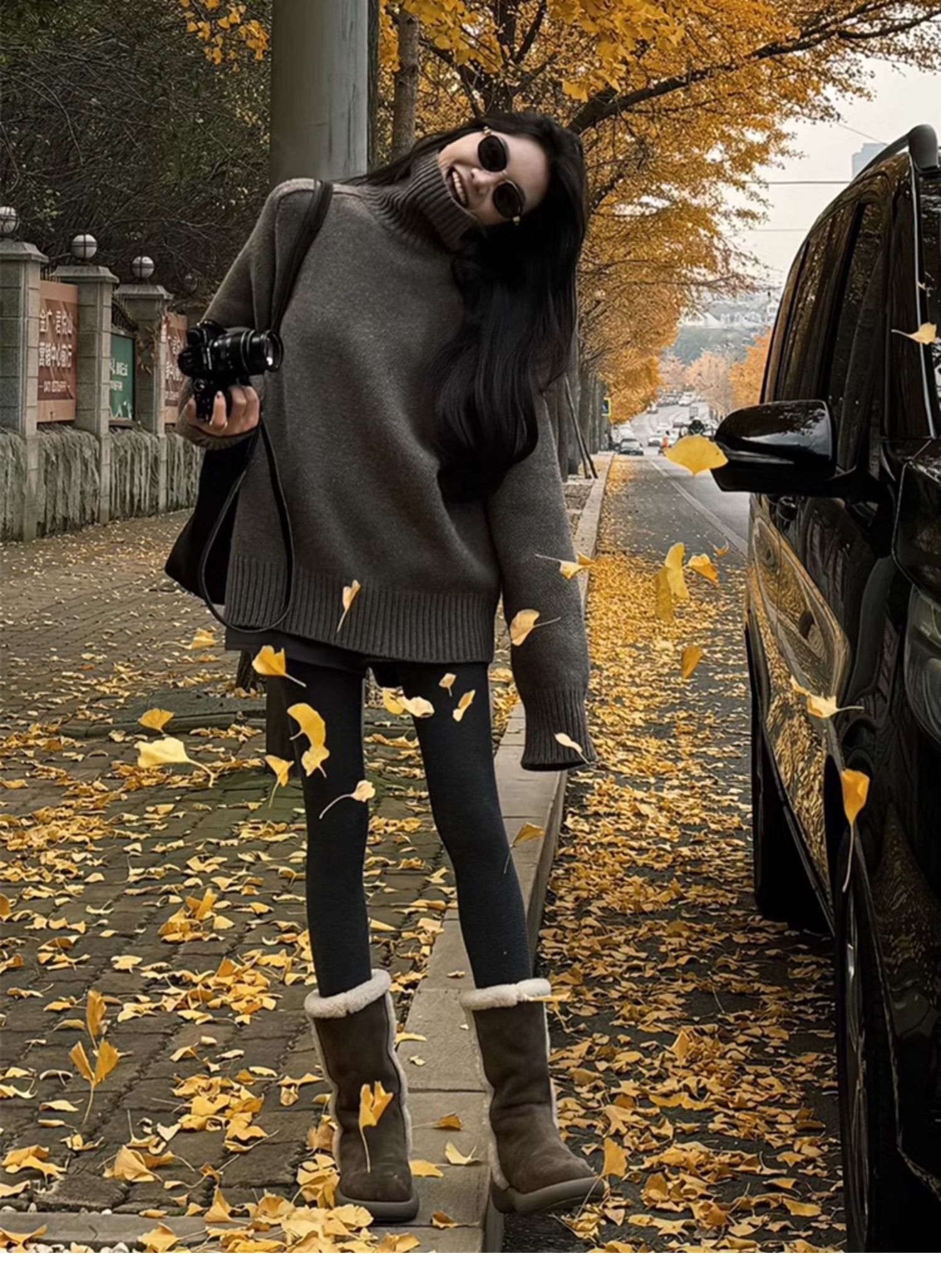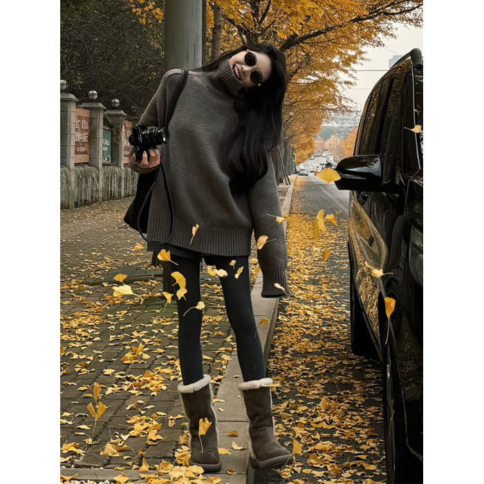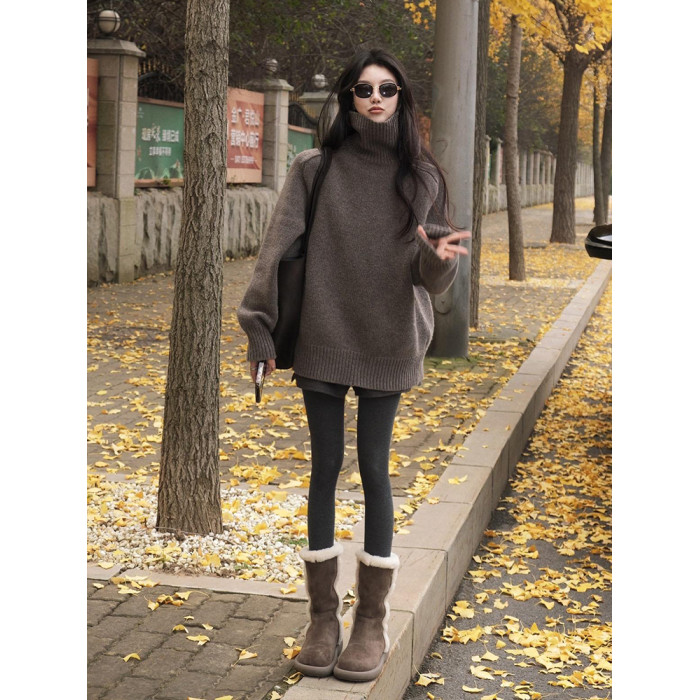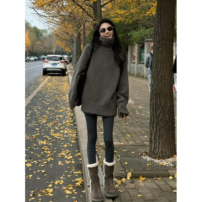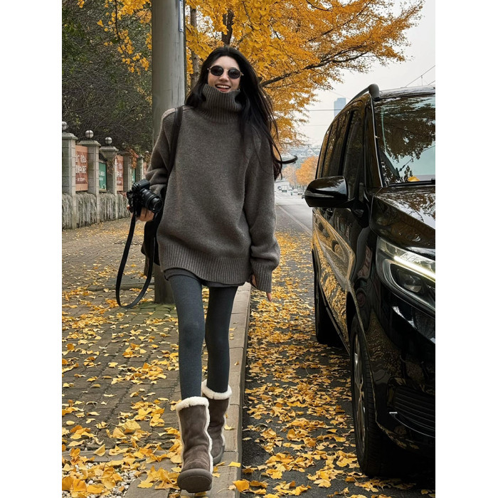 冬季高領套頭毛衣女秋冬加厚外穿慵懶風寬松中長款遮屁股針織上衣