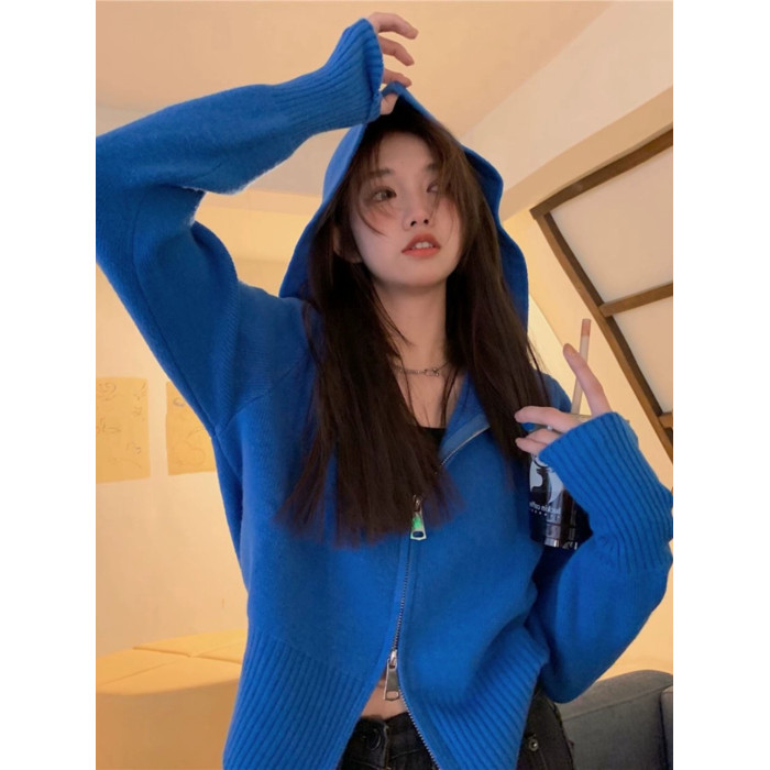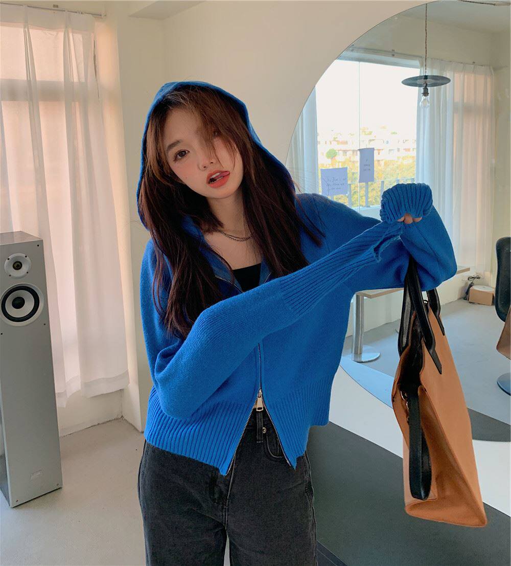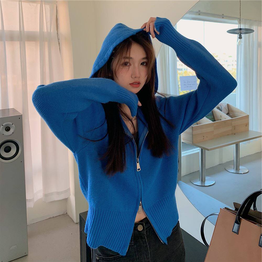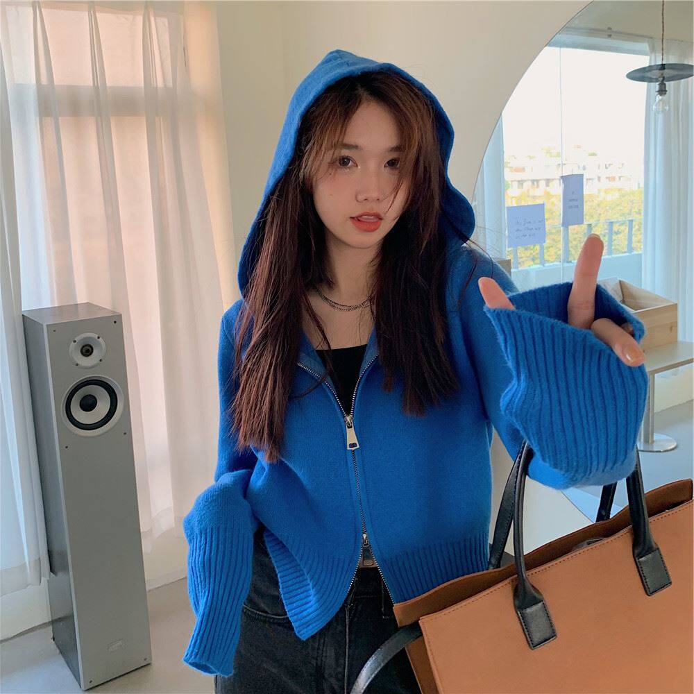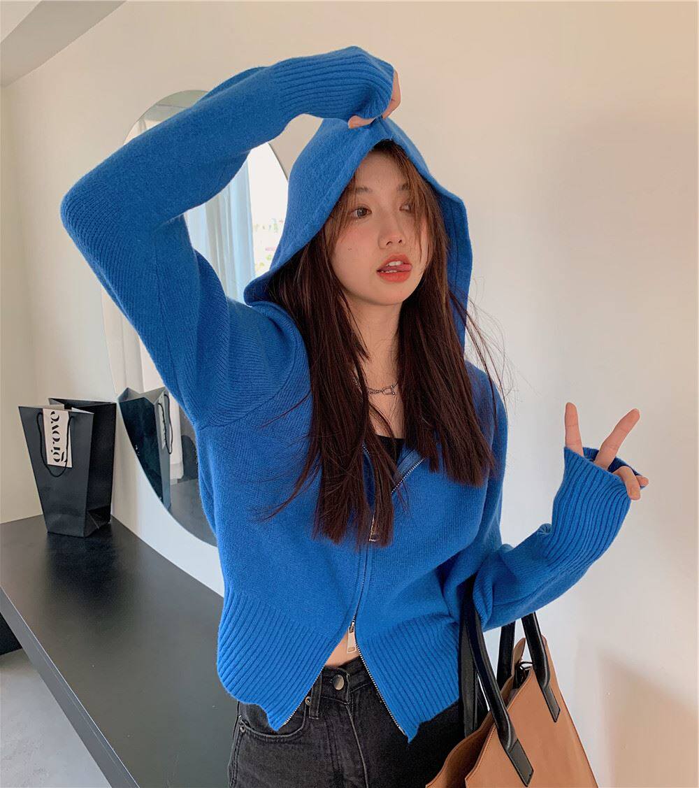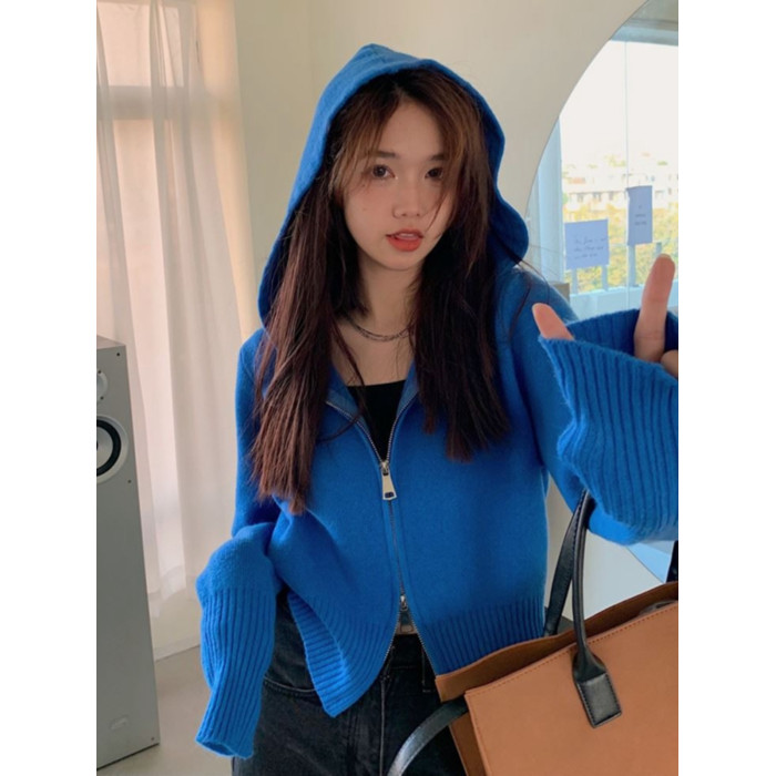 連帽衛衣針織開衫外套小個子女裝2025秋冬新款慵懶寬松打底毛衣潮