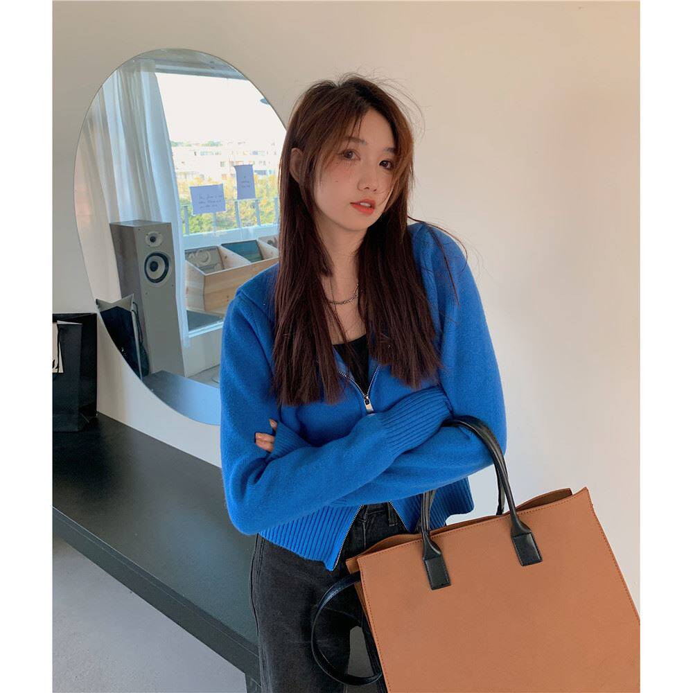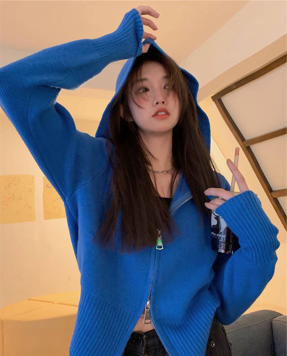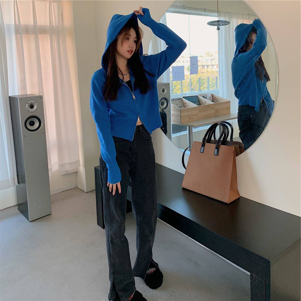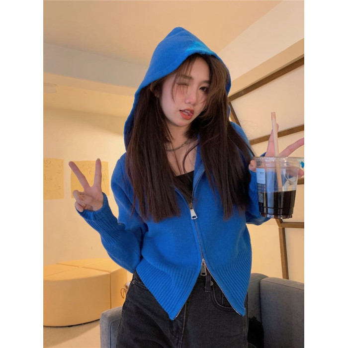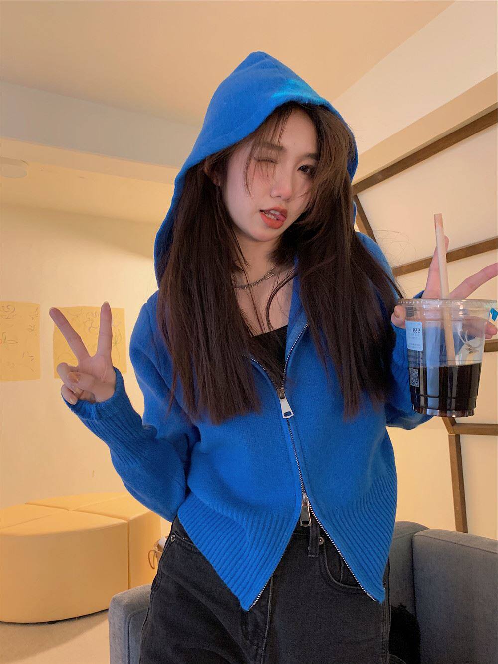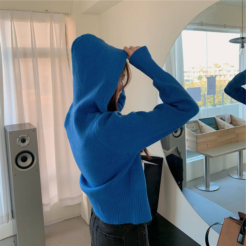 連帽衛衣針織開衫外套小個子女裝2025秋冬新款慵懶寬松打底毛衣潮