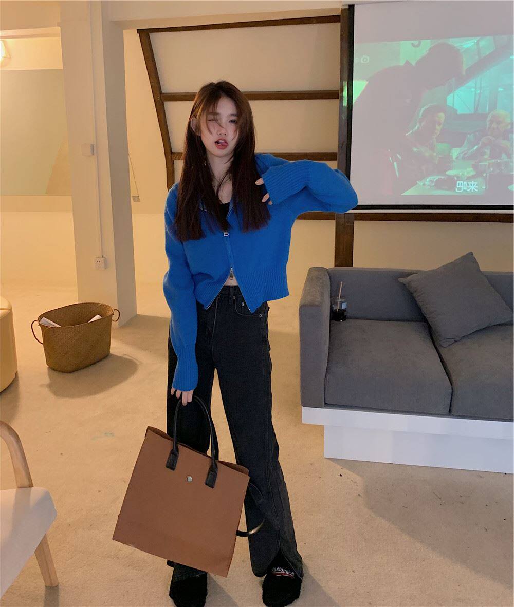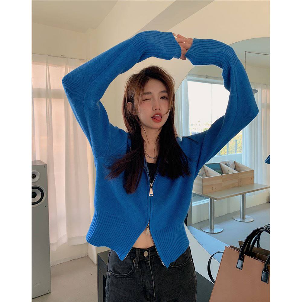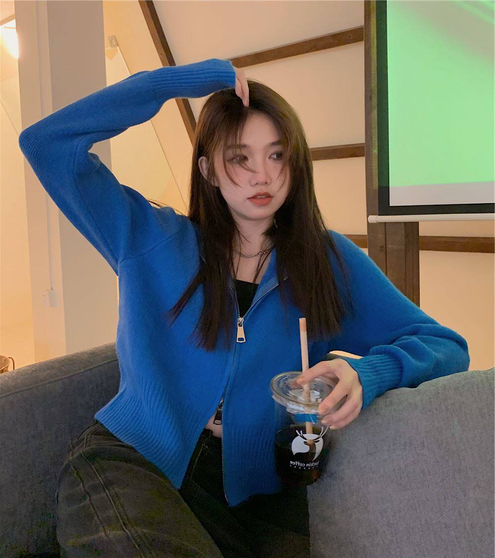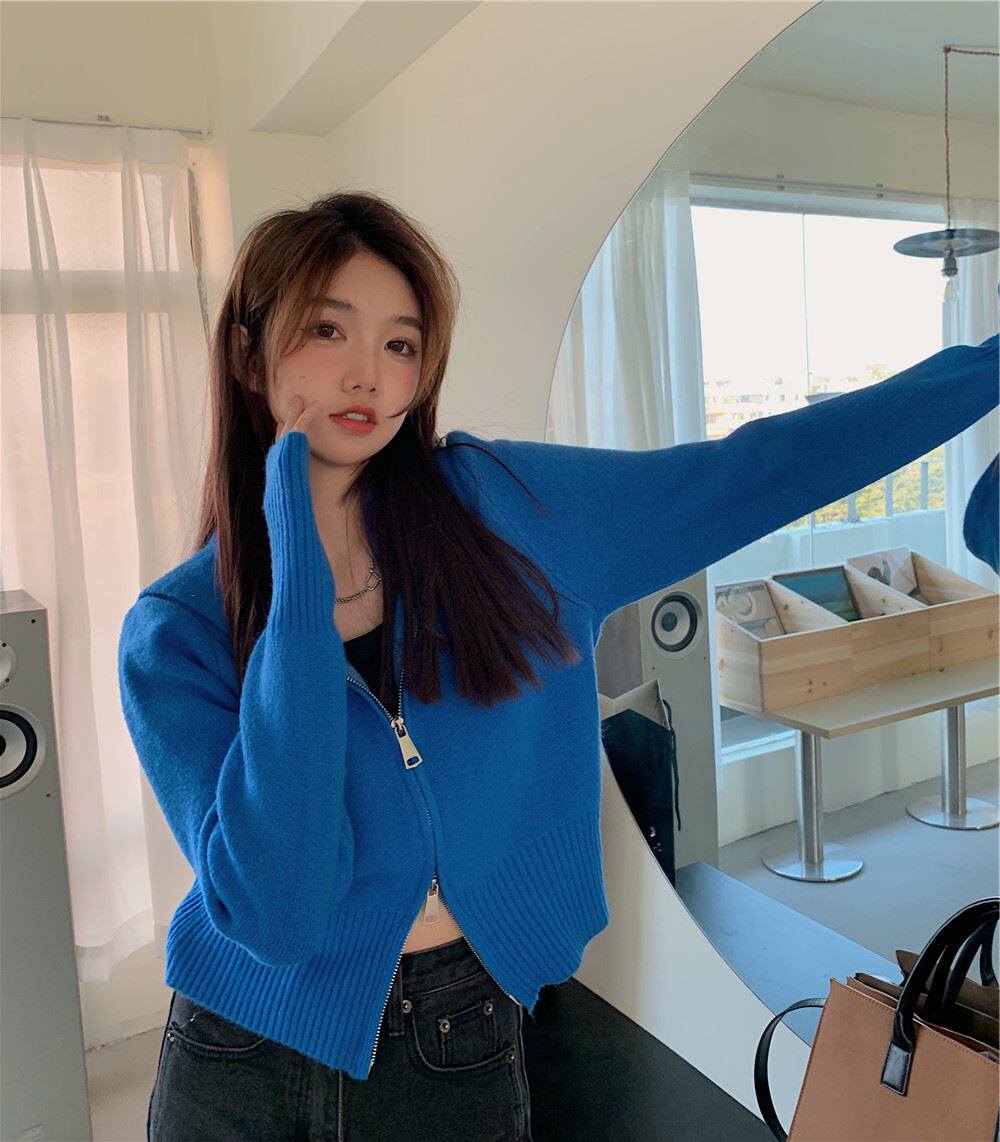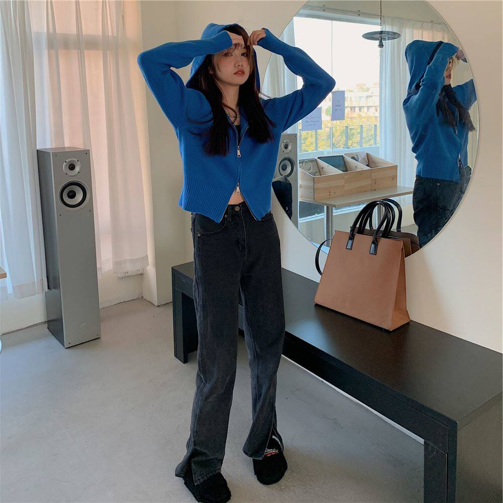 連帽衛衣針織開衫外套小個子女裝2025秋冬新款慵懶寬松打底毛衣潮