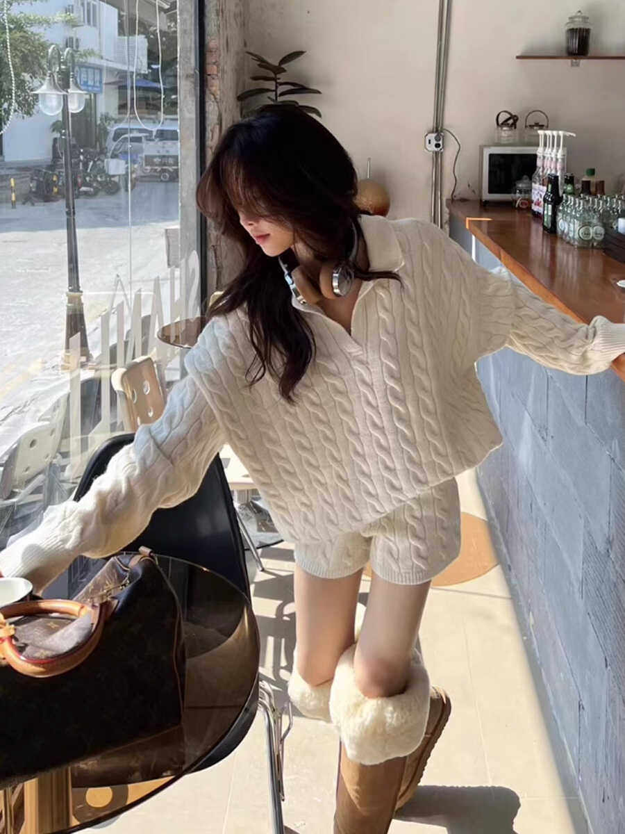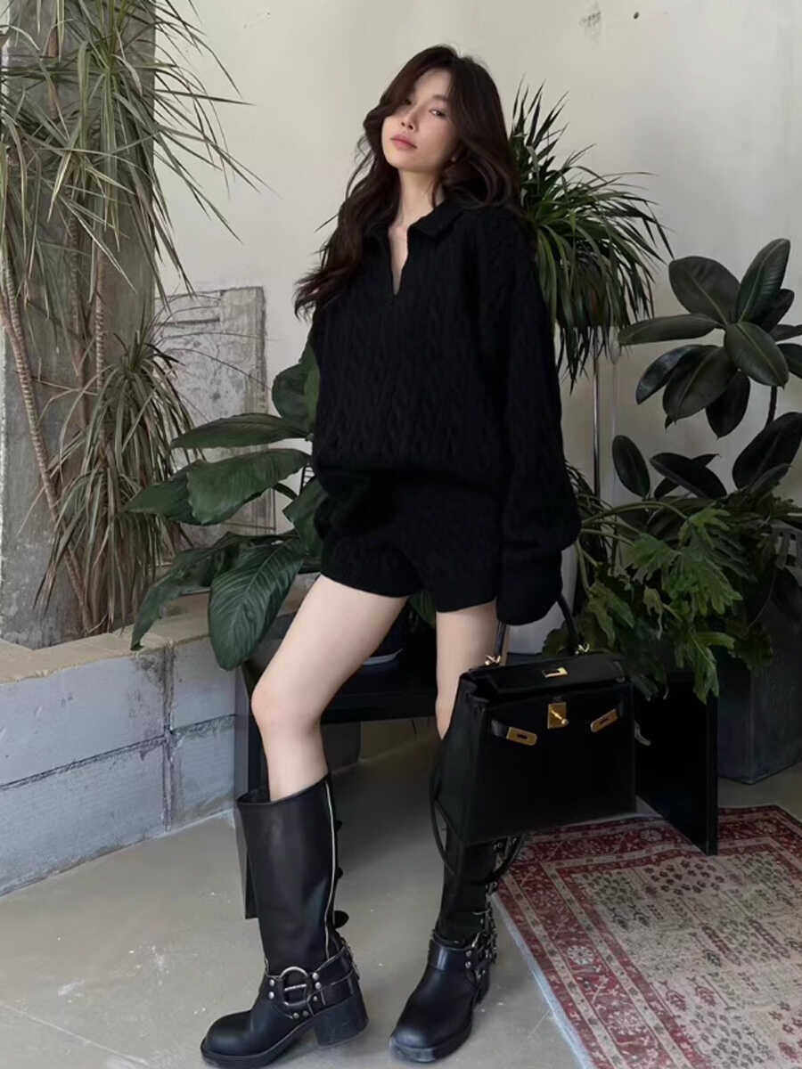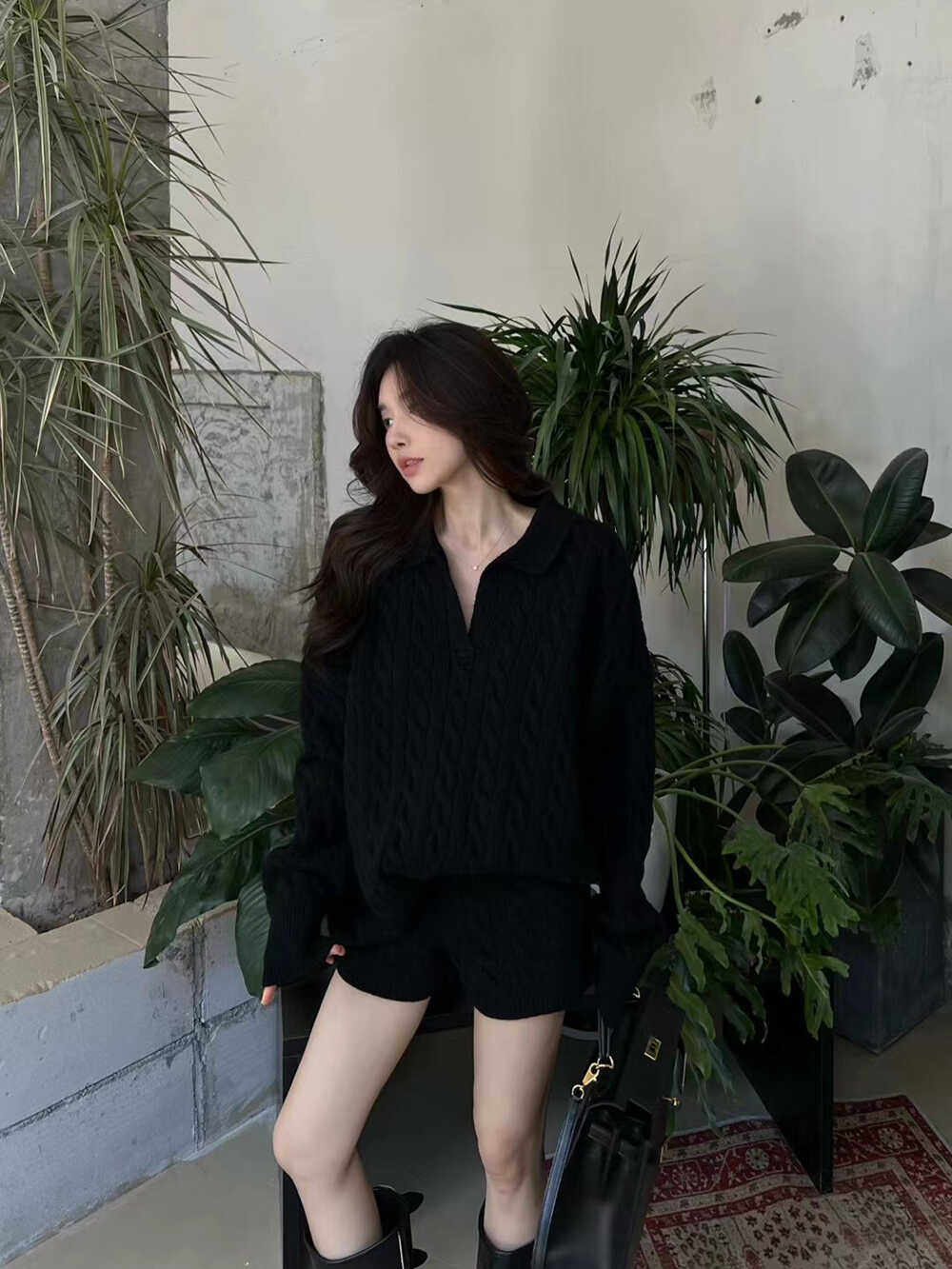 美式復古麻花V領時尚套裝2025早秋新款寬松慵懶風套頭針織兩件套