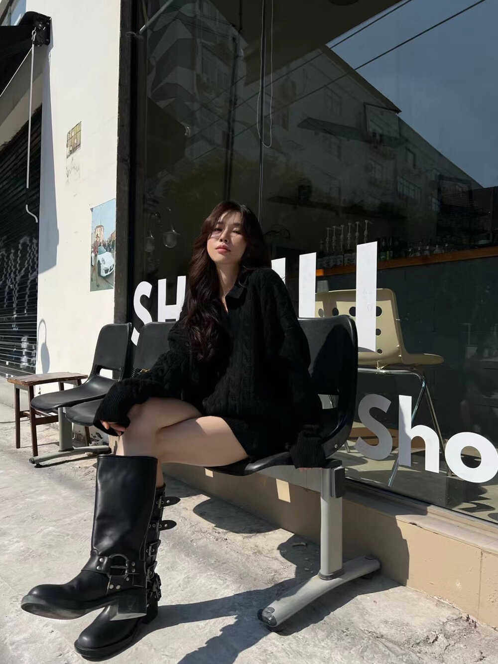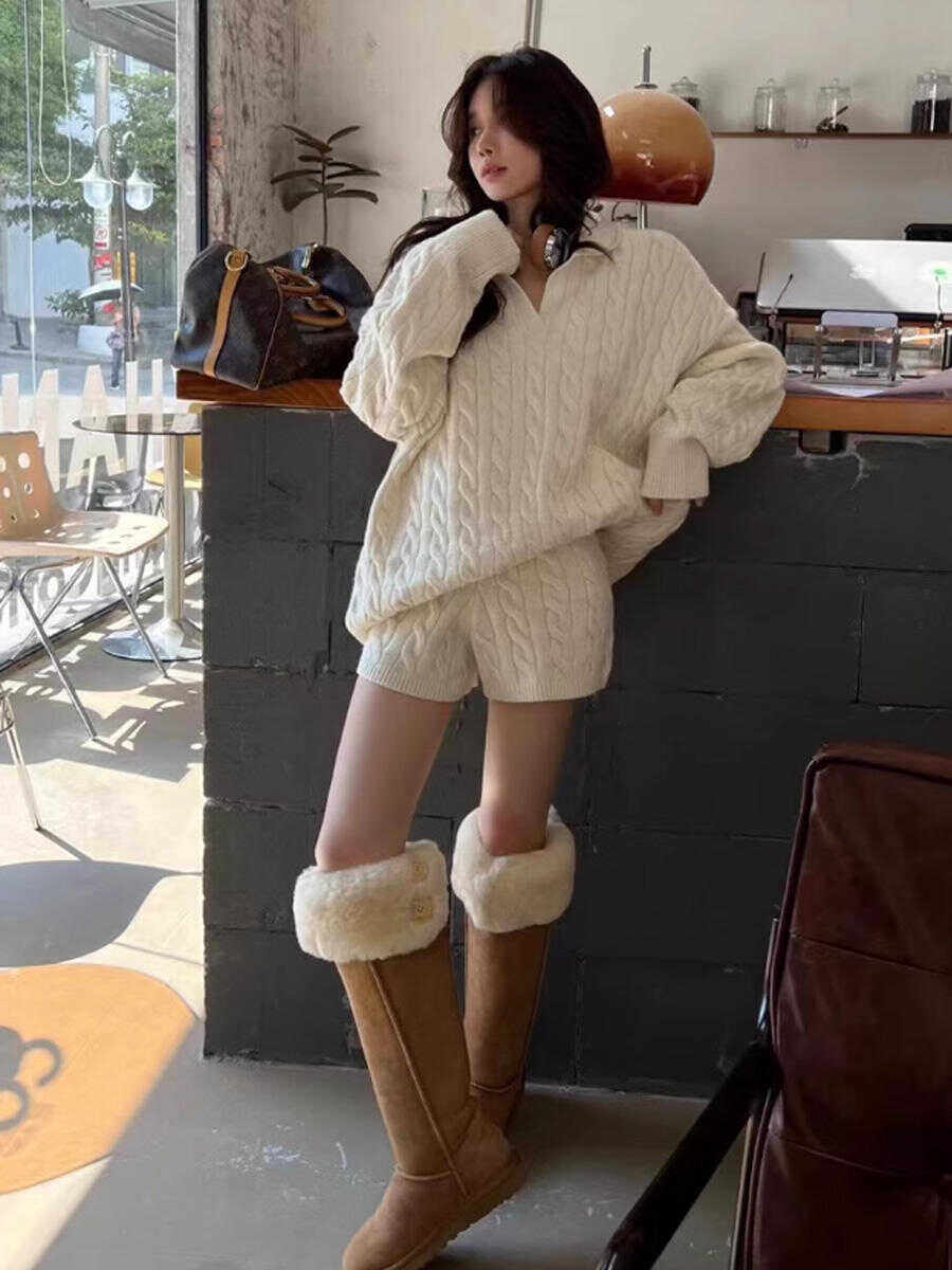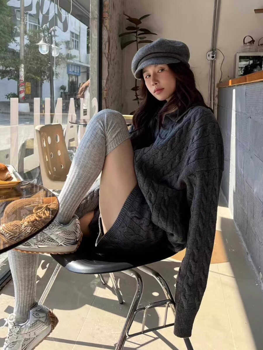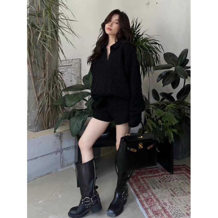 美式復古麻花V領時尚套裝2025早秋新款寬松慵懶風套頭針織兩件套