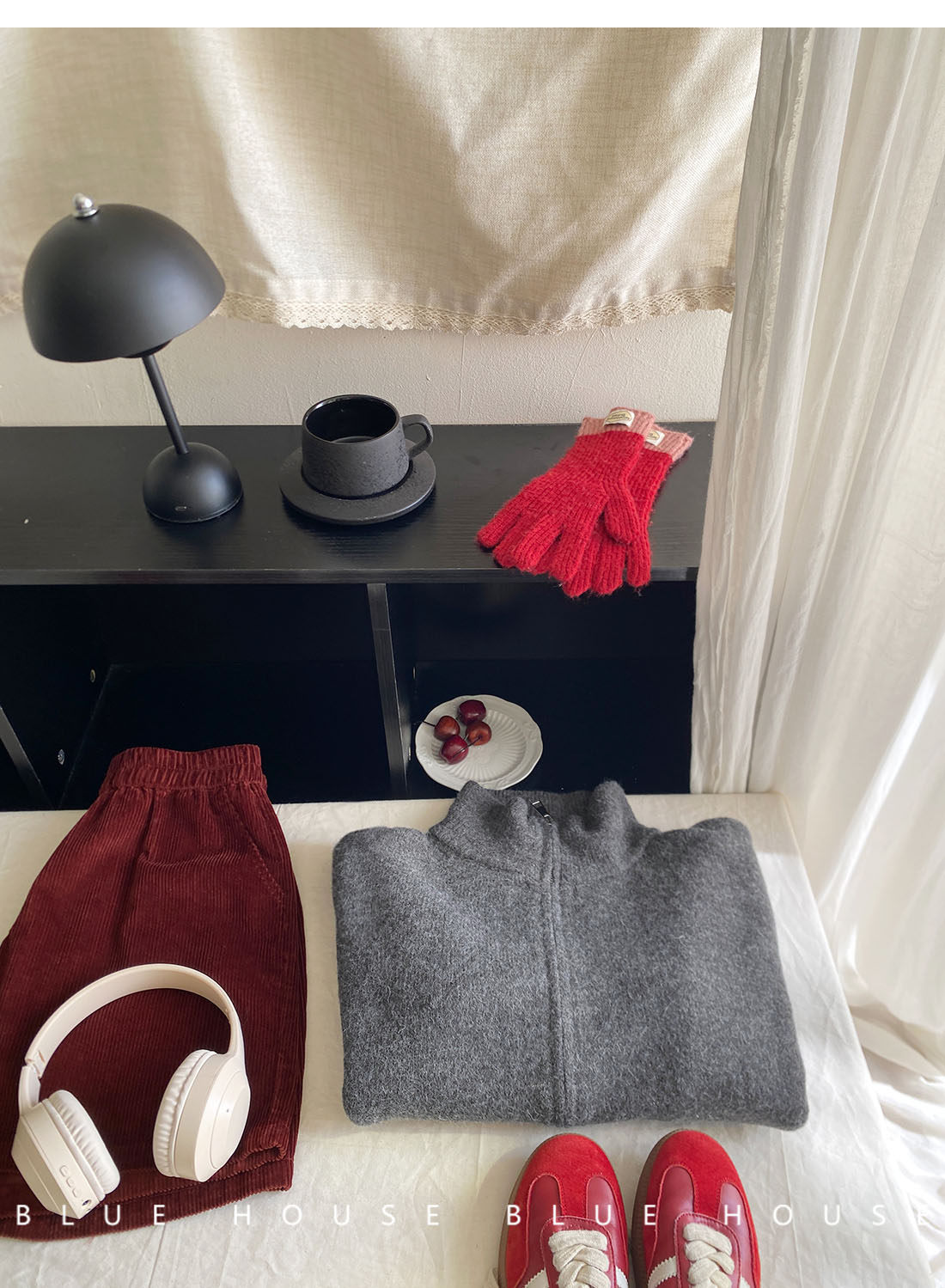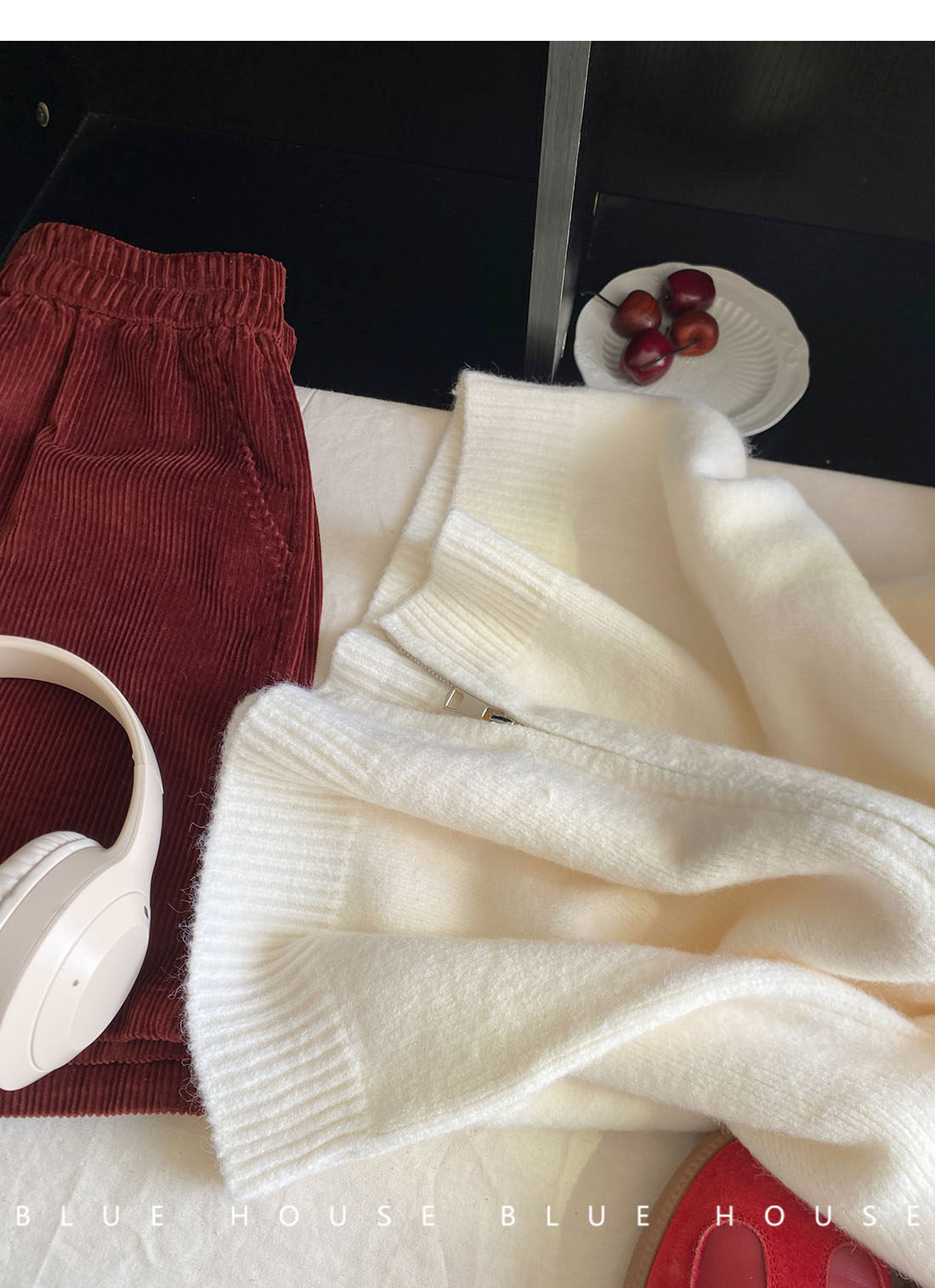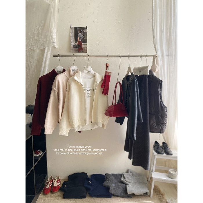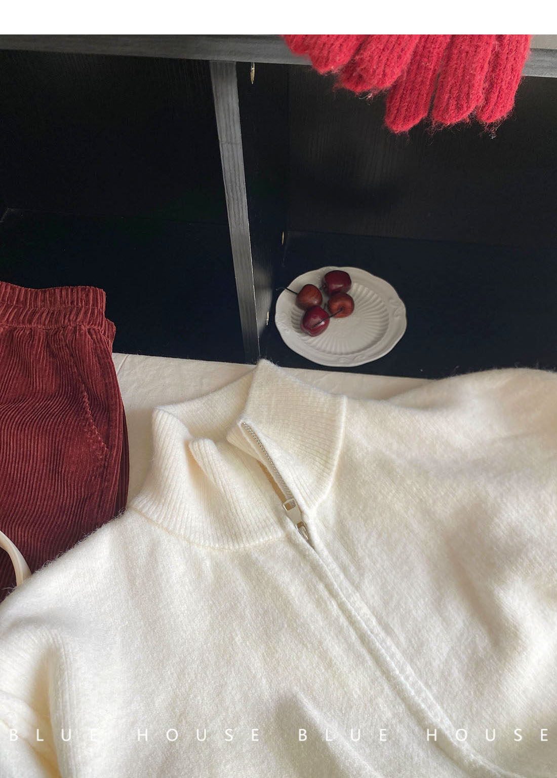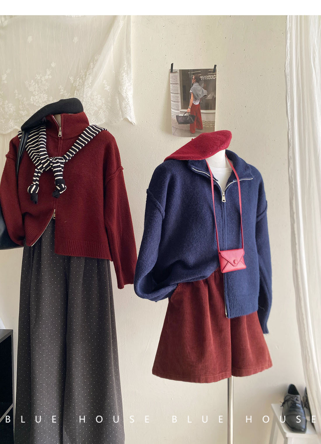 復古雙拉鍊立領毛衣外套女秋冬法式反車拼接長袖休閒減齡針織開衫