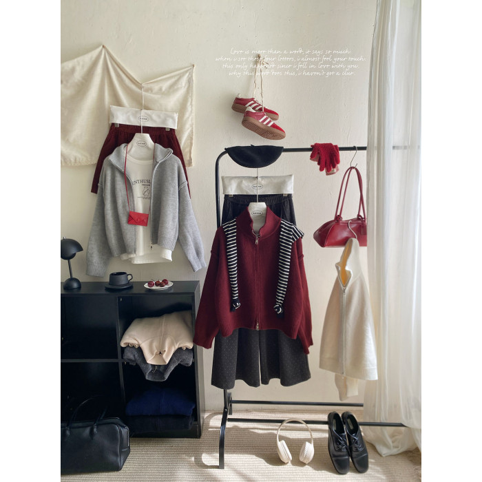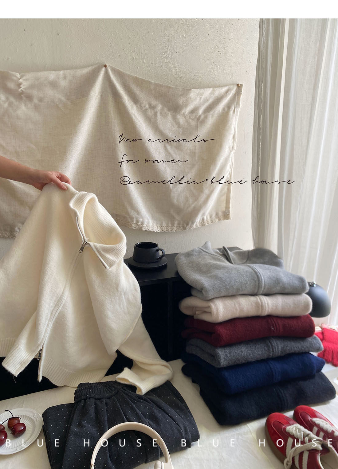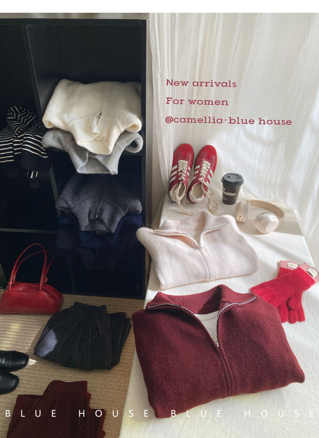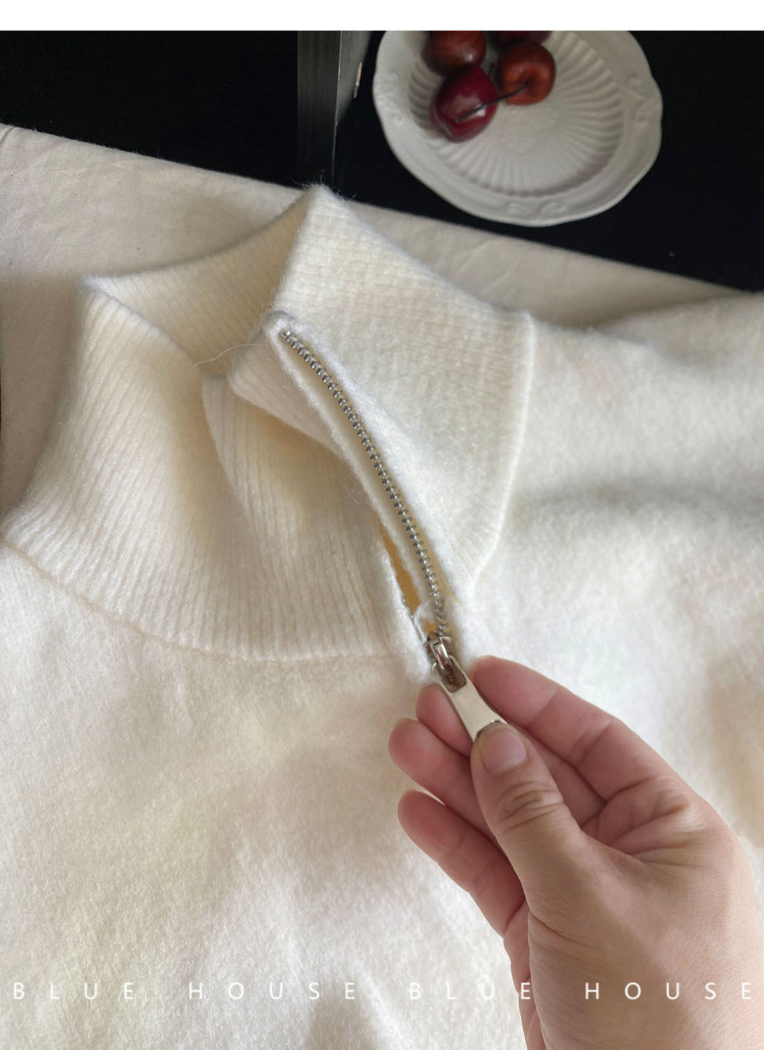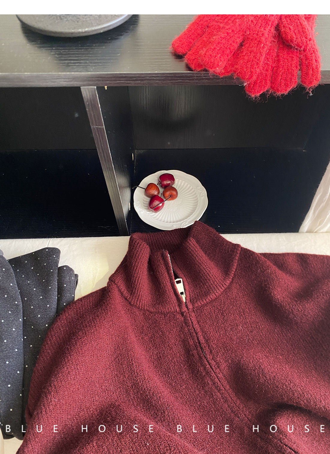 復古雙拉鍊立領毛衣外套女秋冬法式反車拼接長袖休閒減齡針織開衫