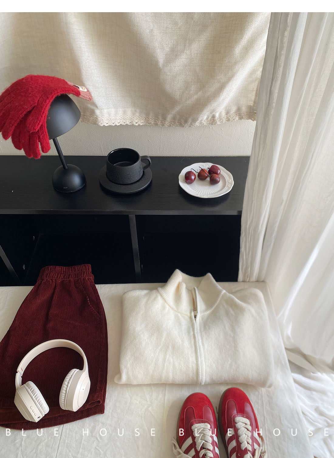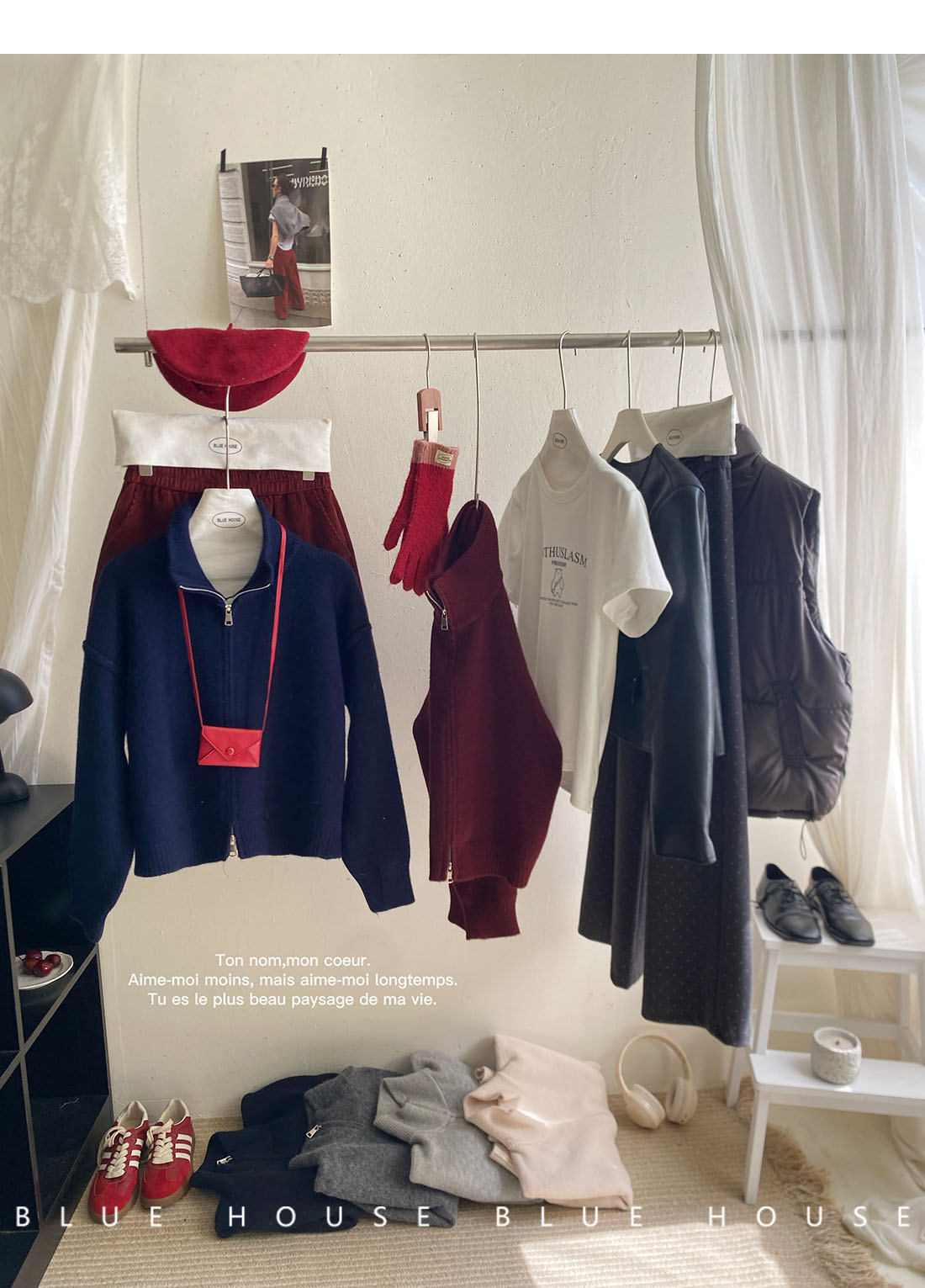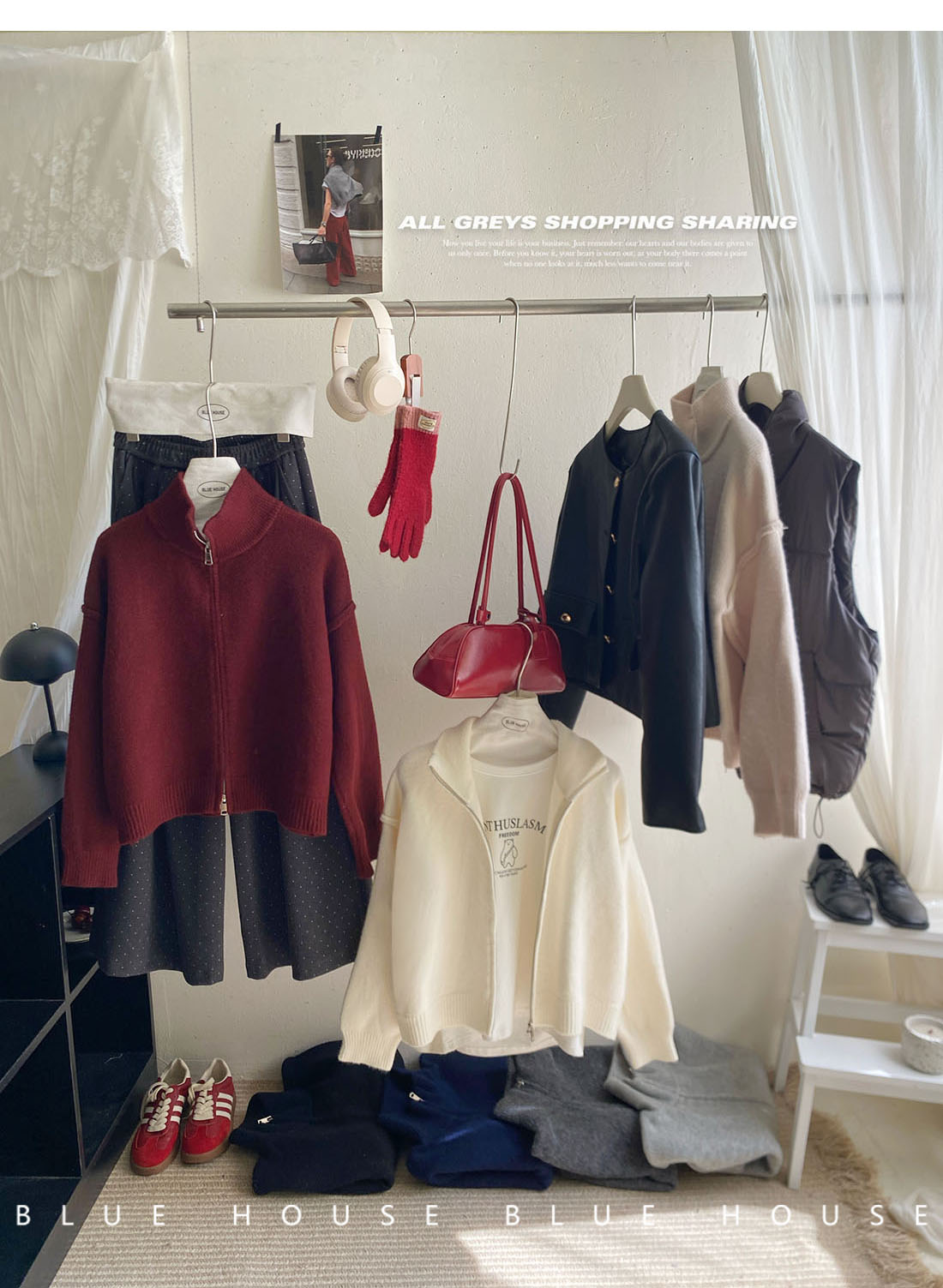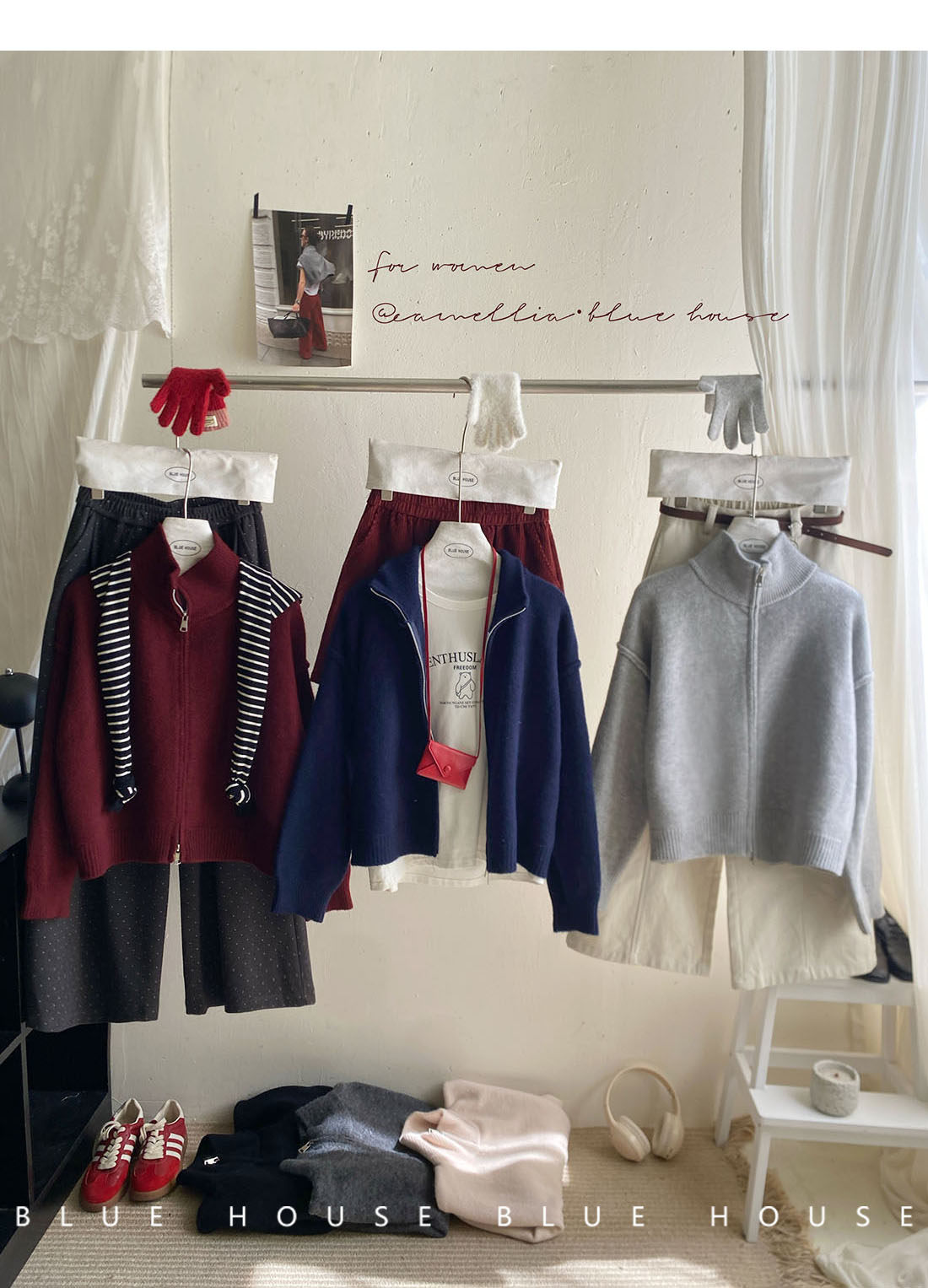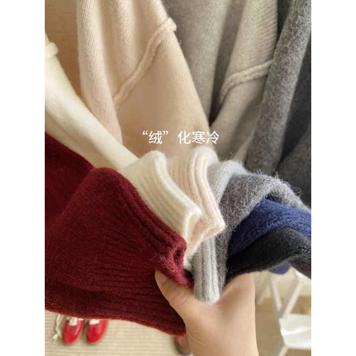 復古雙拉鍊立領毛衣外套女秋冬法式反車拼接長袖休閒減齡針織開衫