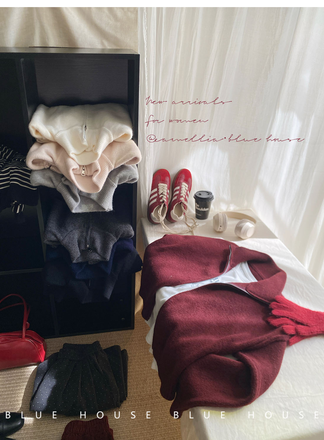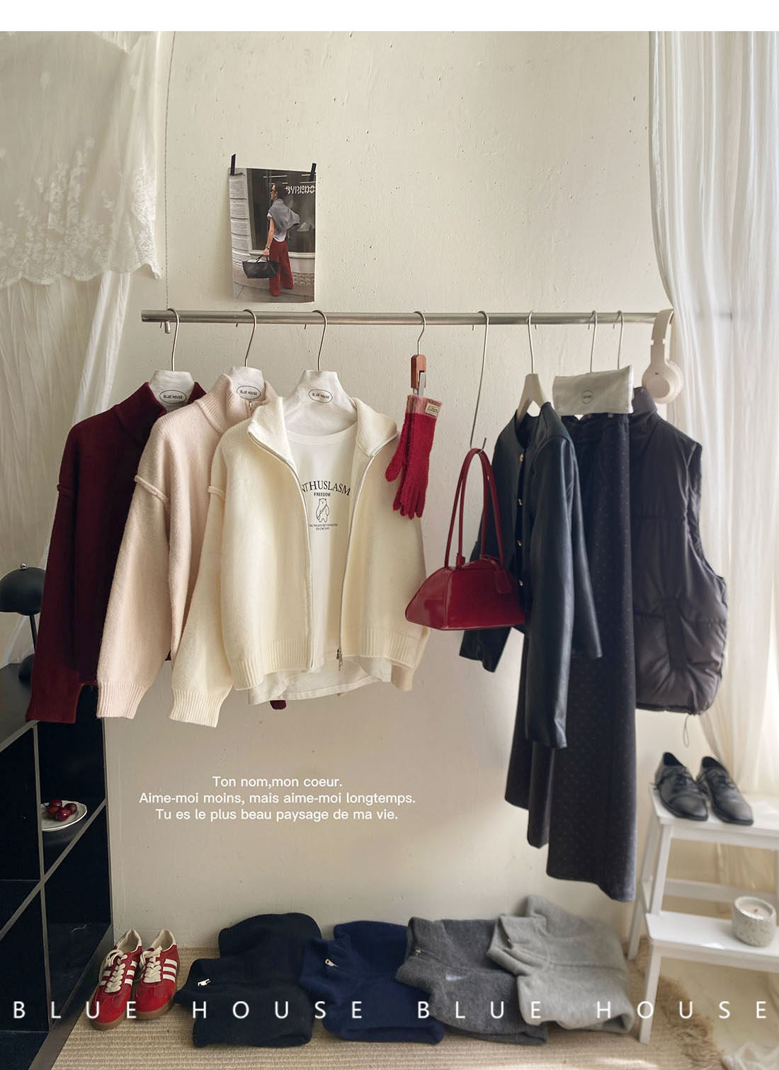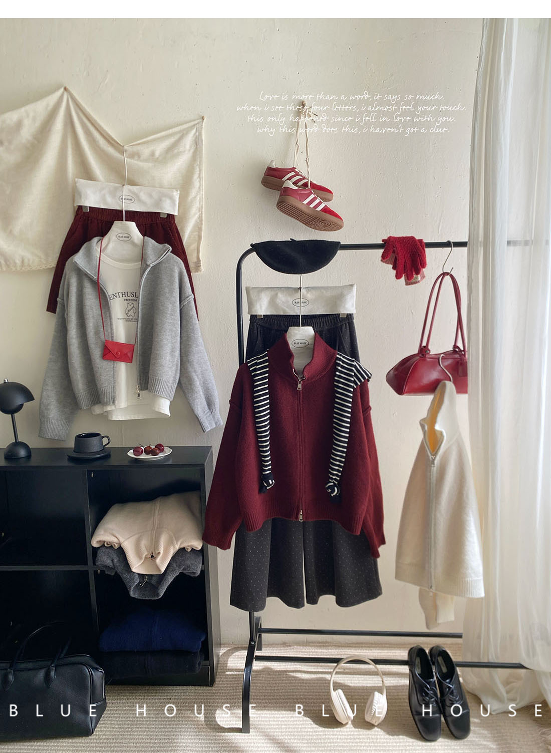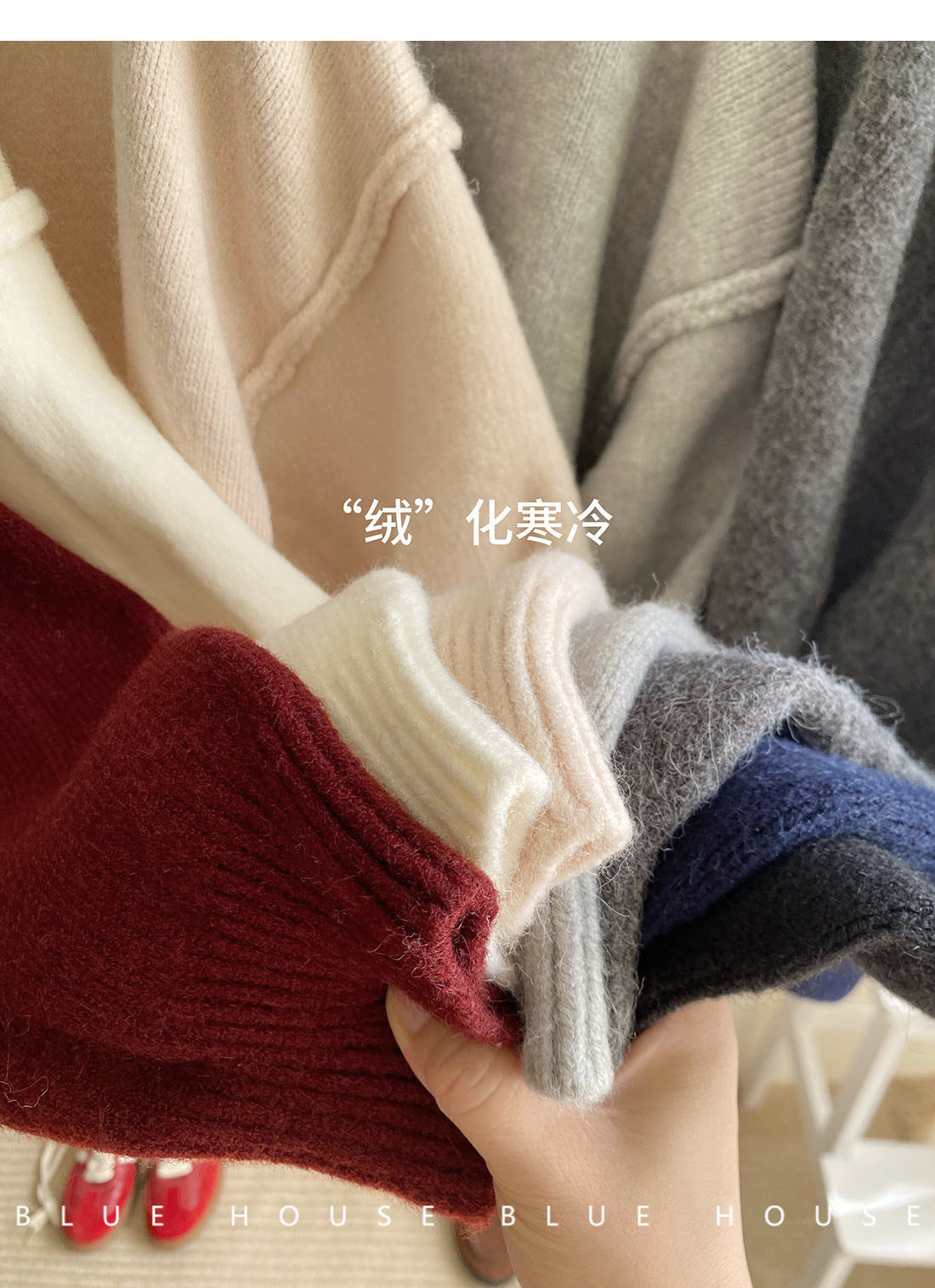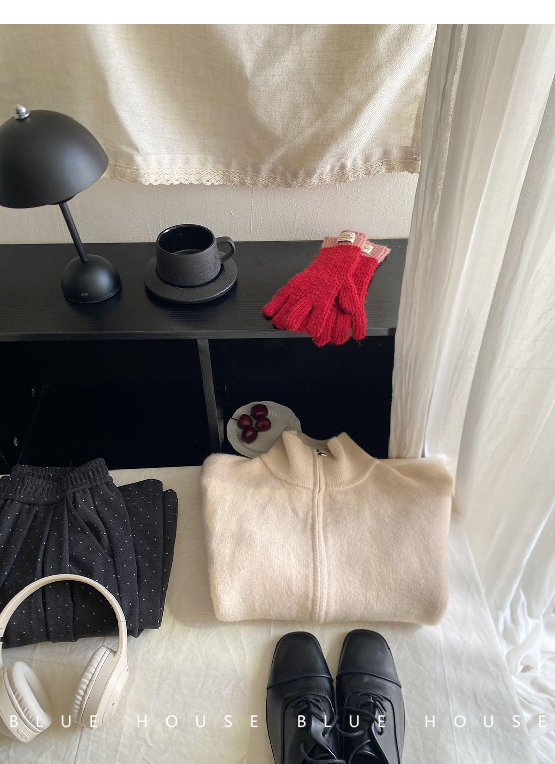 復古雙拉鍊立領毛衣外套女秋冬法式反車拼接長袖休閒減齡針織開衫