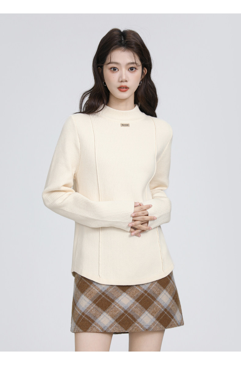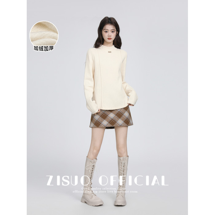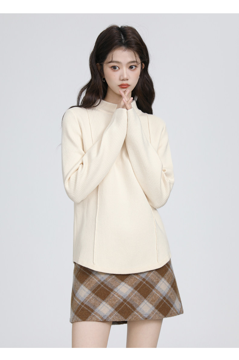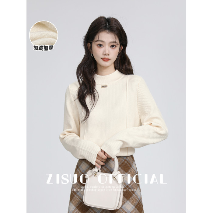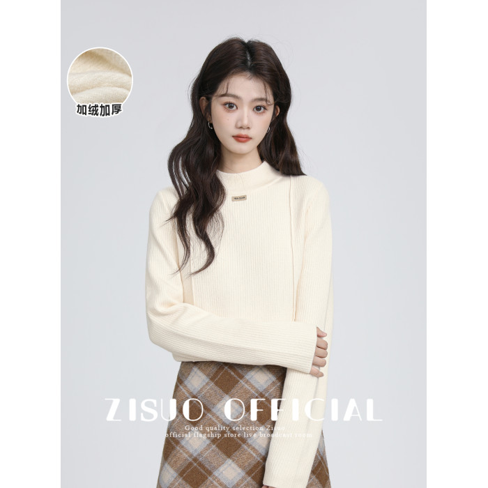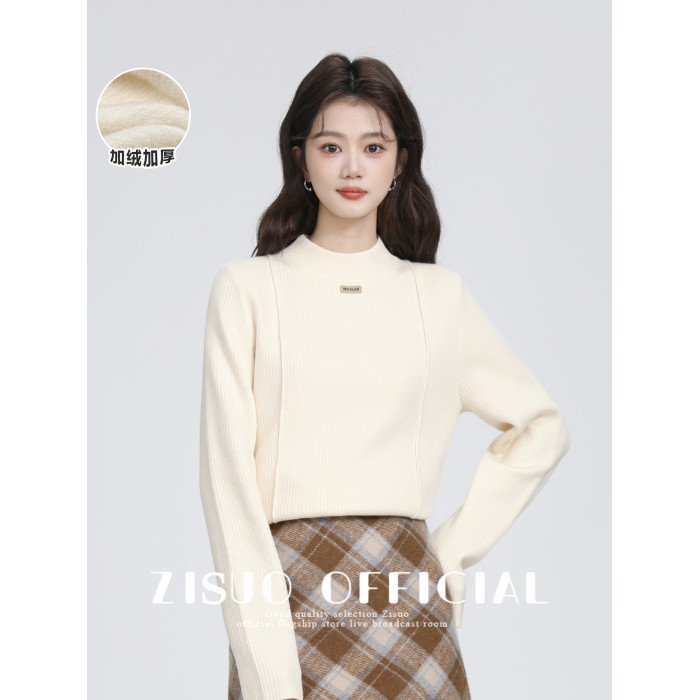 杏色半高領加絨毛衣女2026秋冬新款加厚一體絨打底衫內搭針織上衣