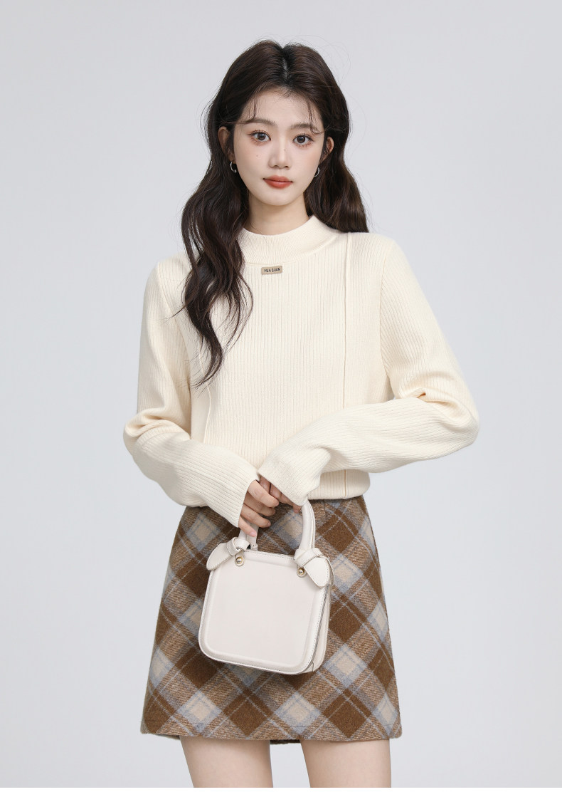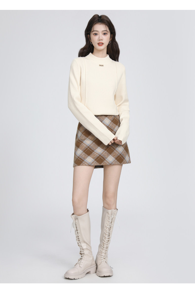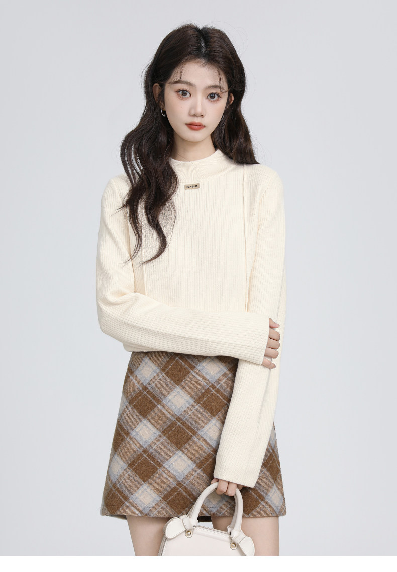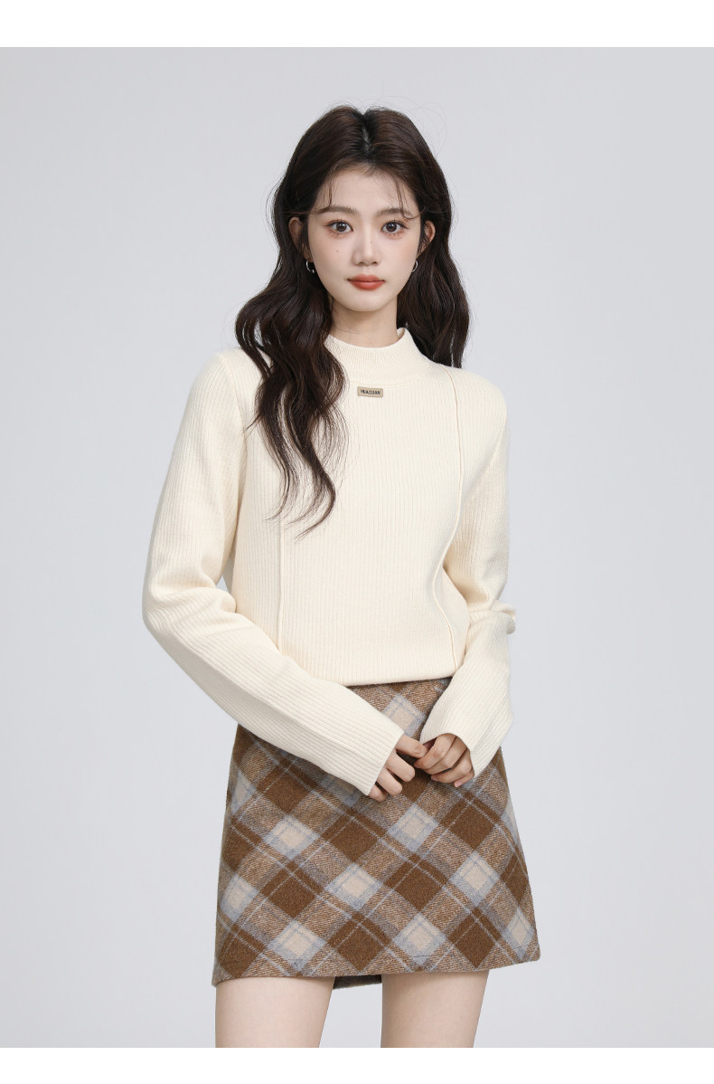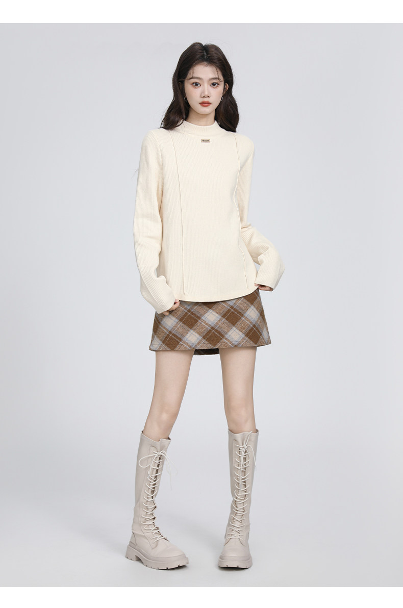杏色半高領加絨毛衣女2026秋冬新款加厚一體絨打底衫內搭針織上衣
