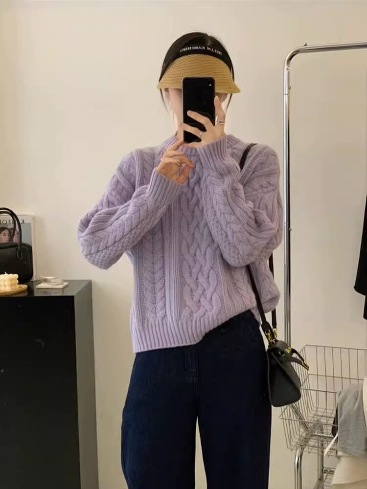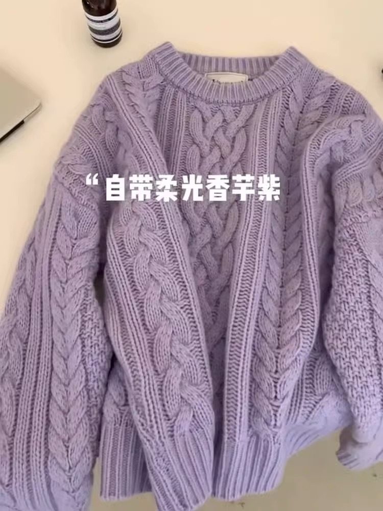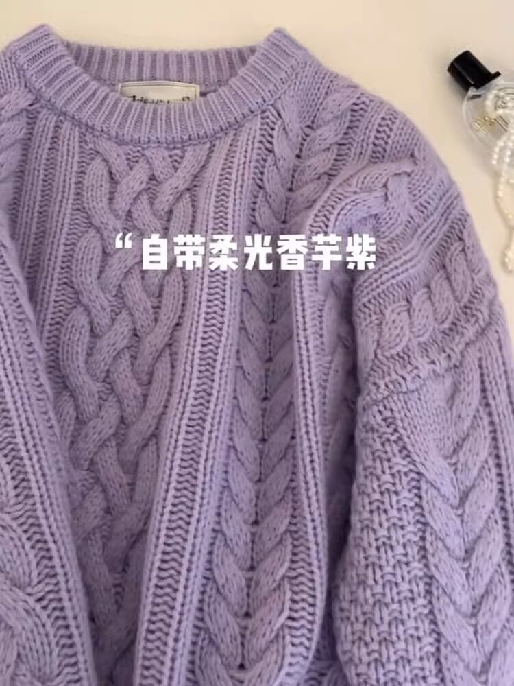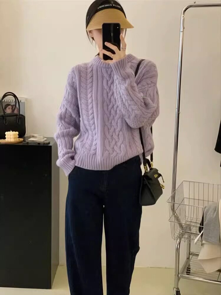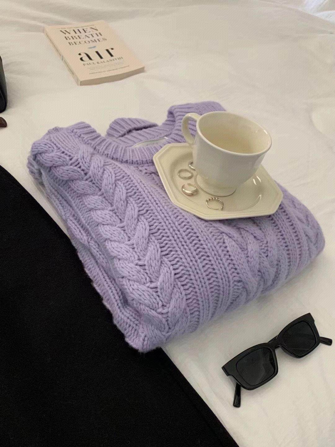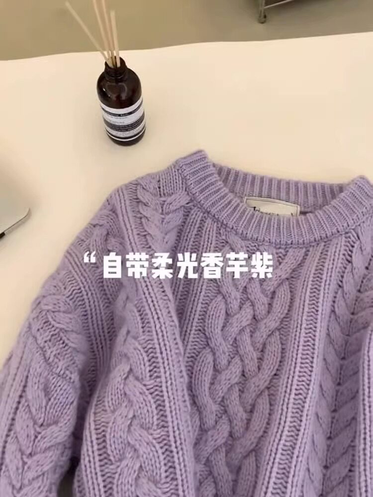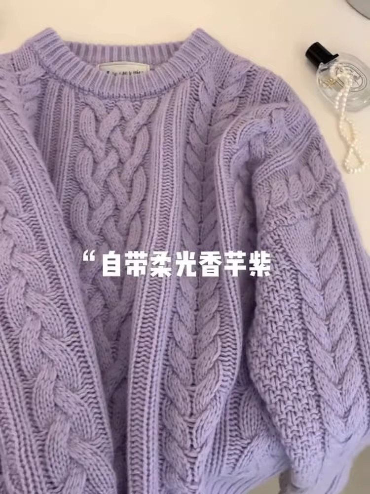 藍色浣熊絨套頭針織衫女秋冬季加厚外穿高級感慵懶風粗針麻花毛衣