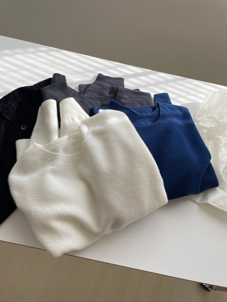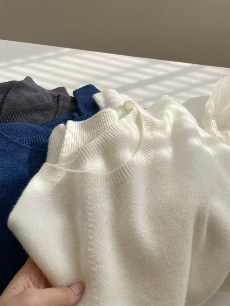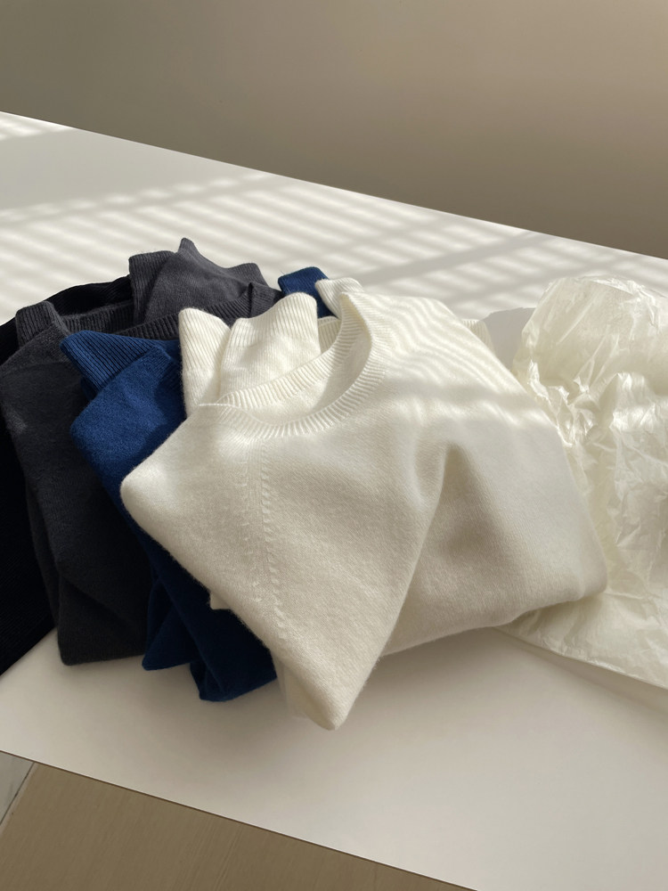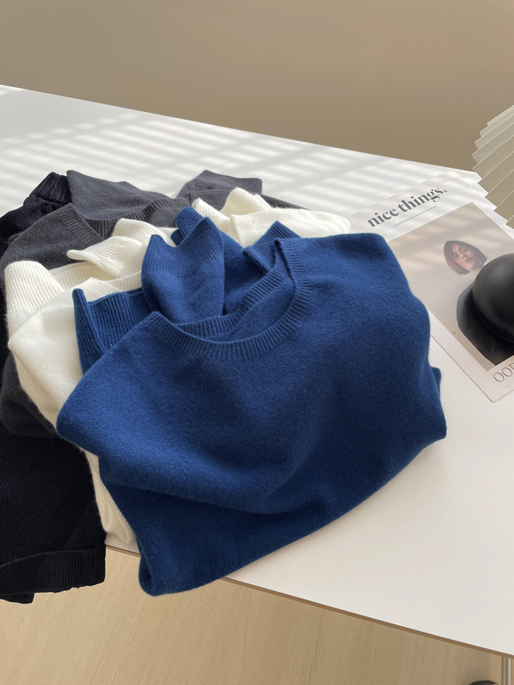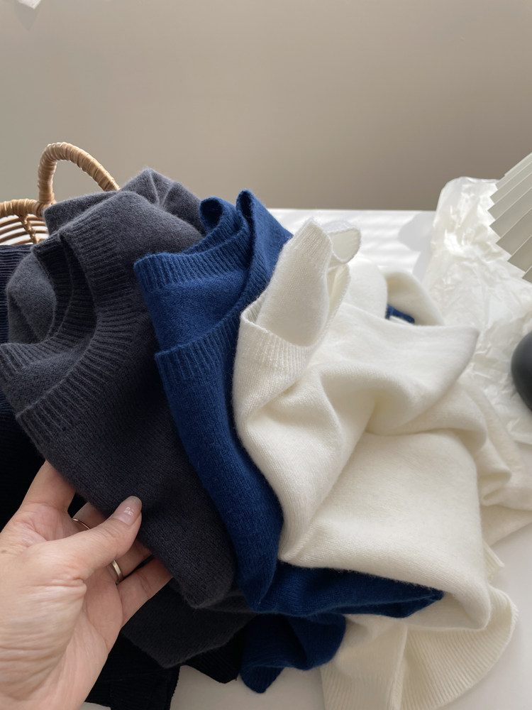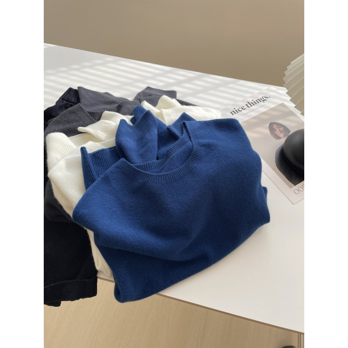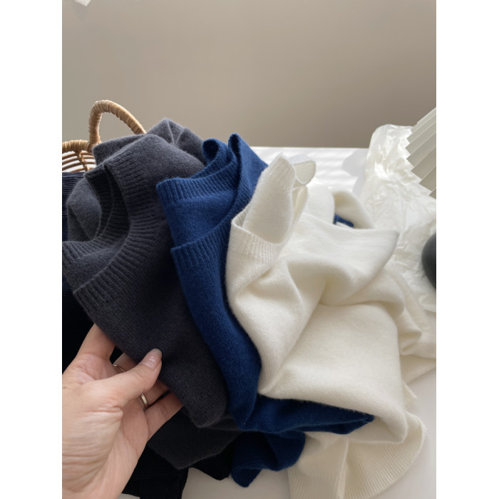 無縫一體~綿羊毛圓領針織衫女!秋冬韓系顯白純色套頭內搭打底毛衣