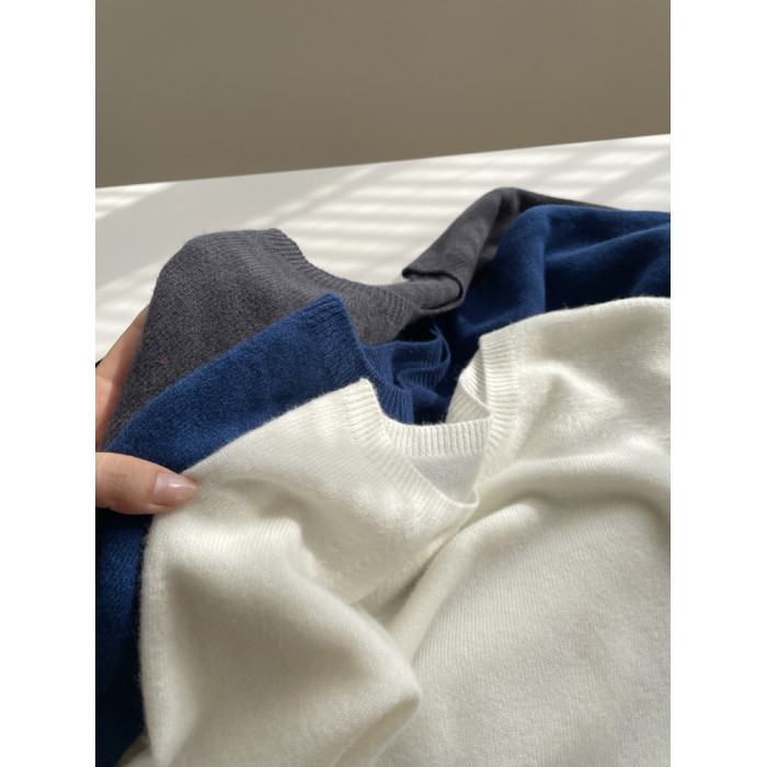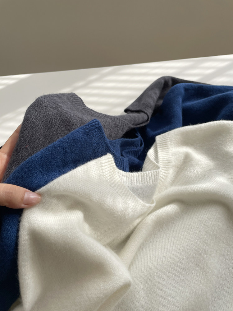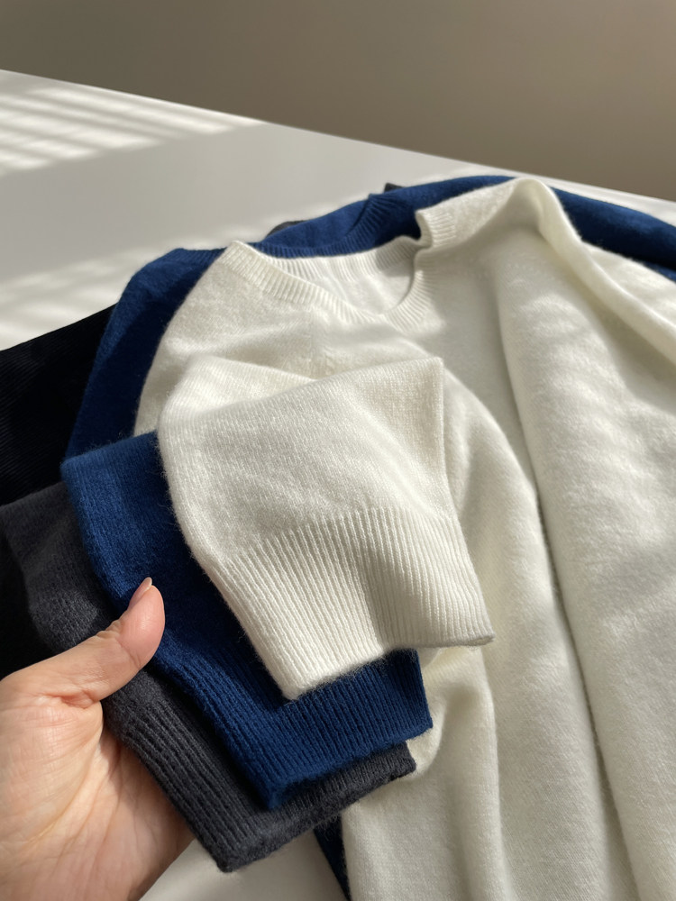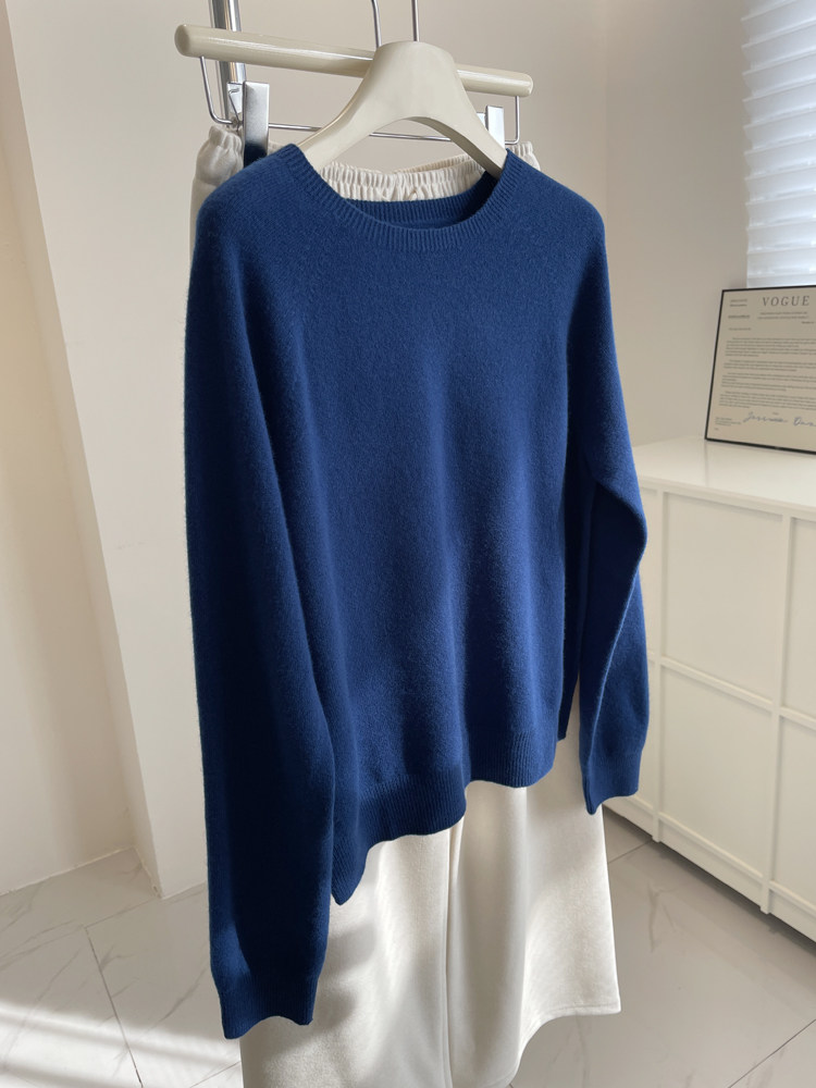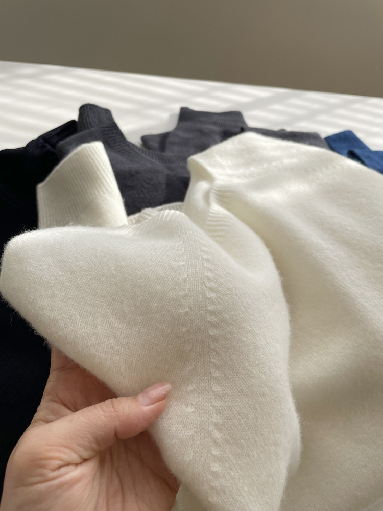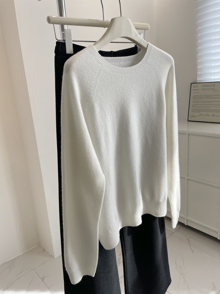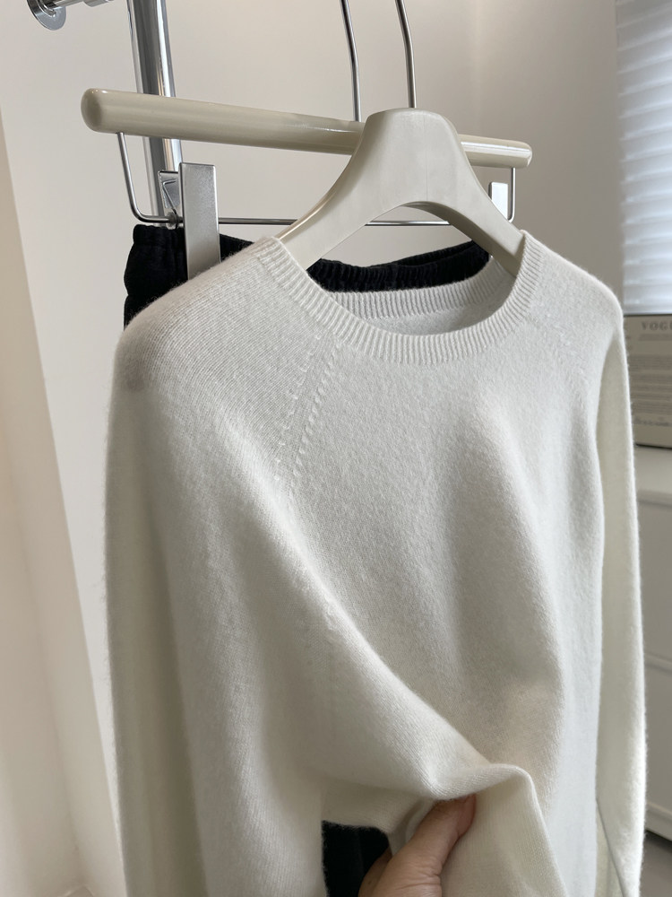無縫一體~綿羊毛圓領針織衫女!秋冬韓系顯白純色套頭內搭打底毛衣