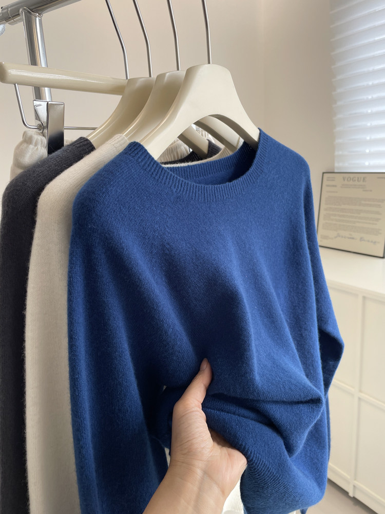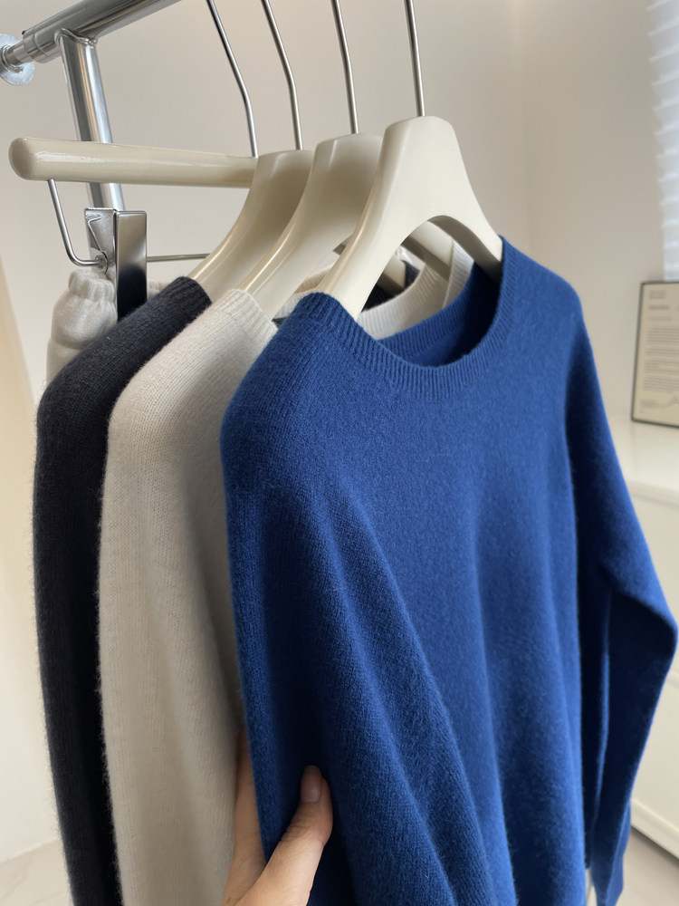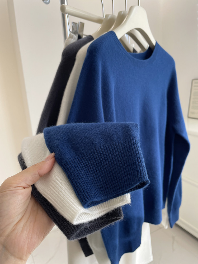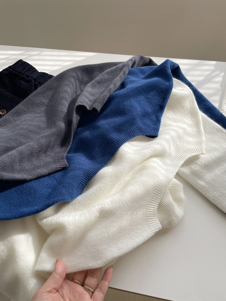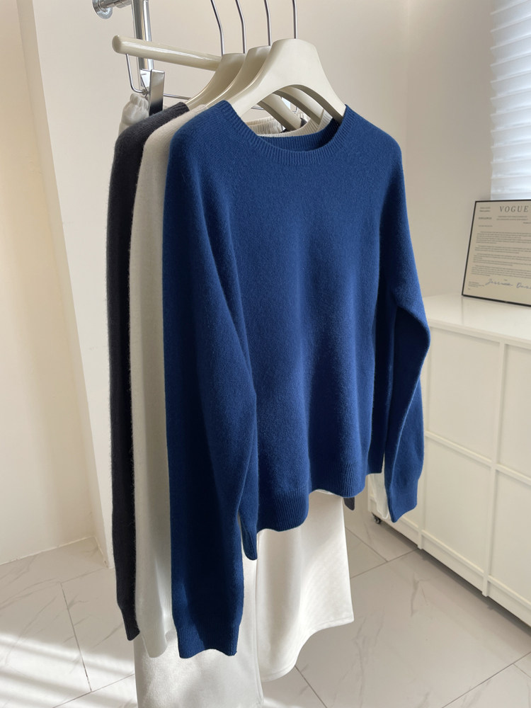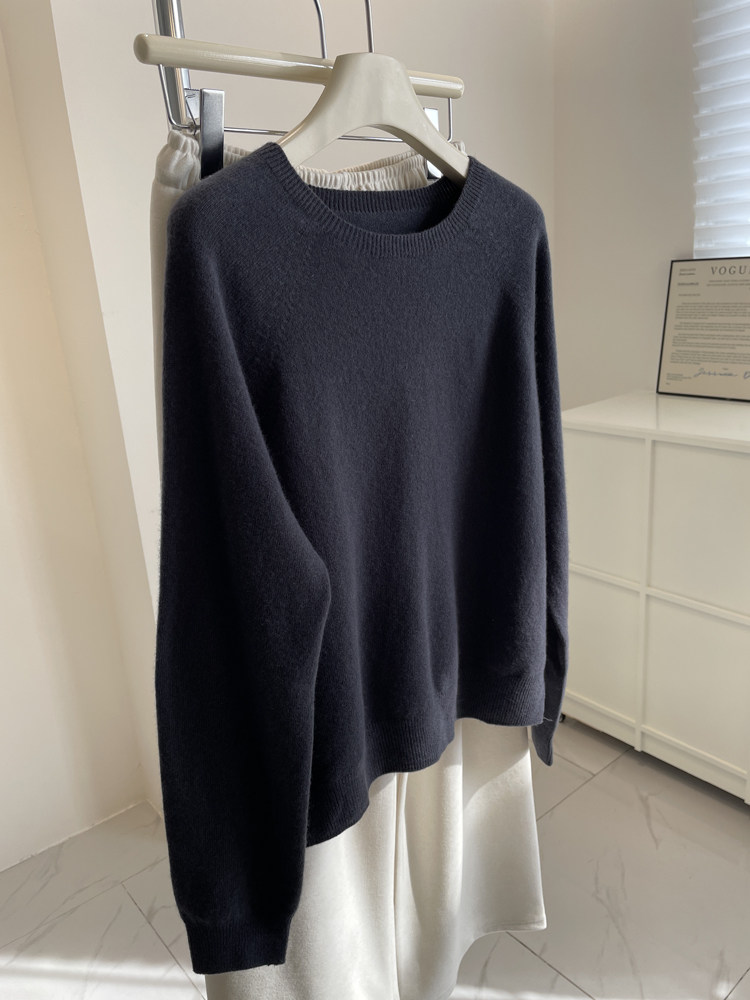 無縫一體~綿羊毛圓領針織衫女!秋冬韓系顯白純色套頭內搭打底毛衣