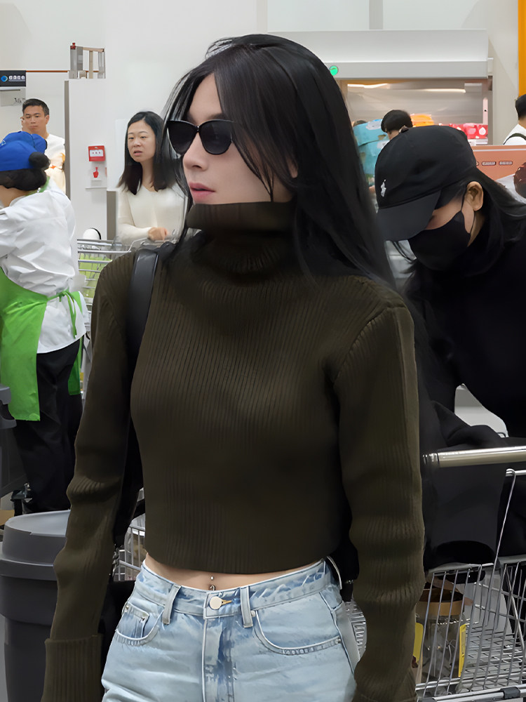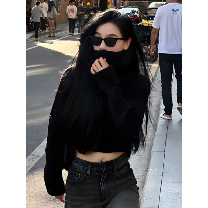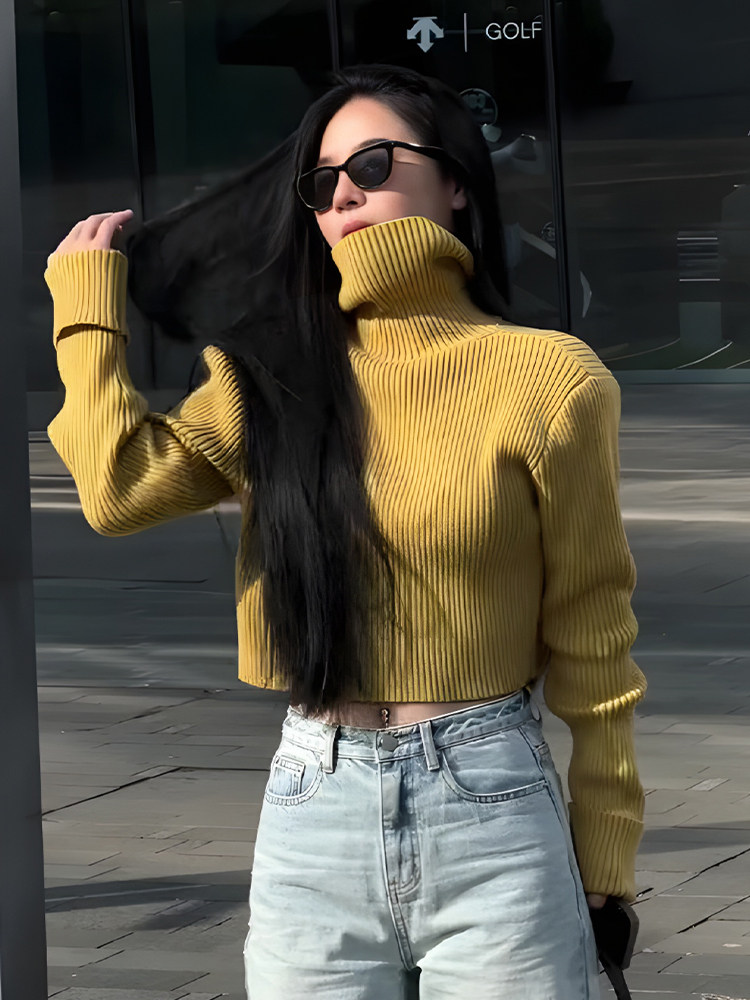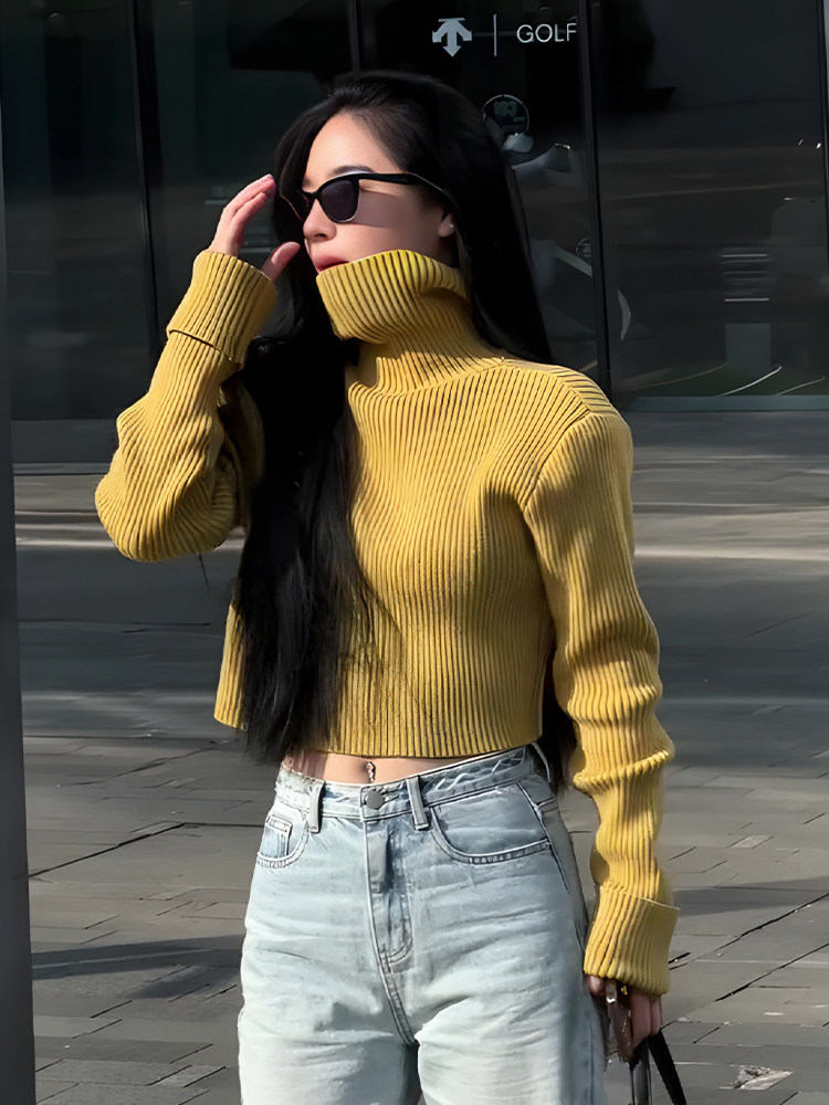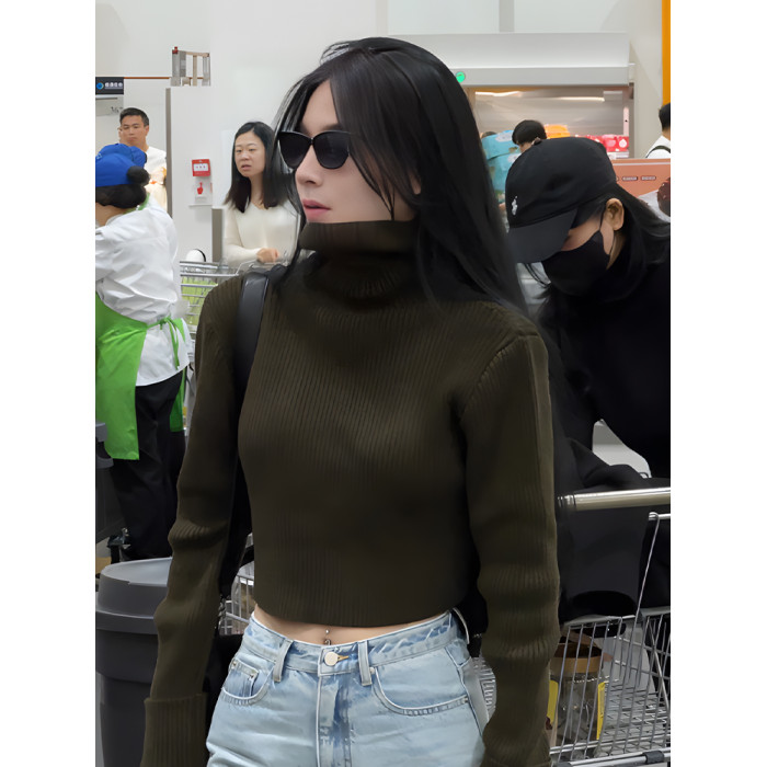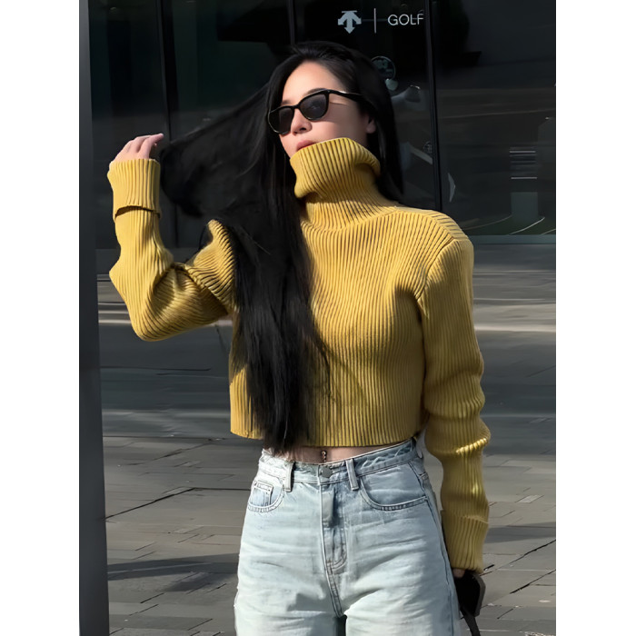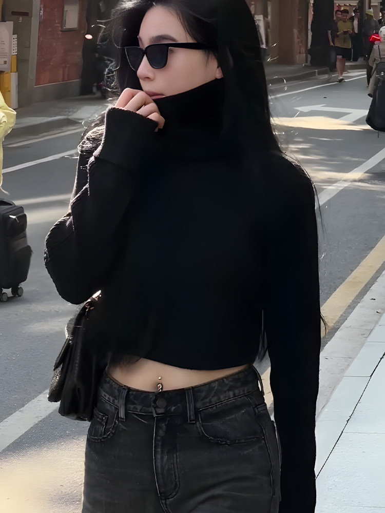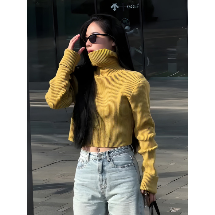 慵懶風秋冬高領毛衣女款2025新款冬季高級感短款針織衫內搭上衣女