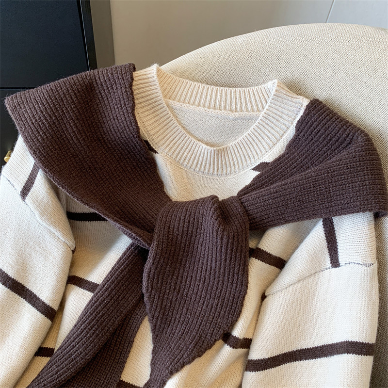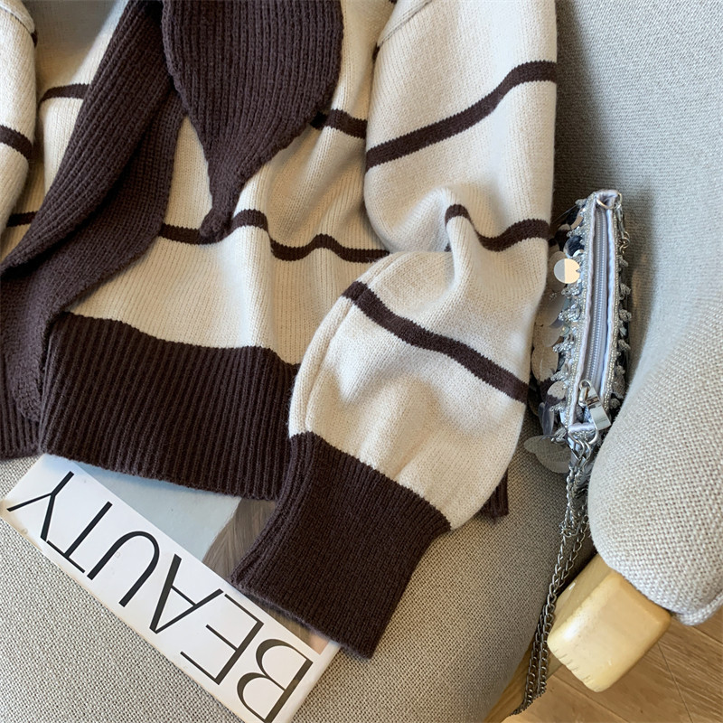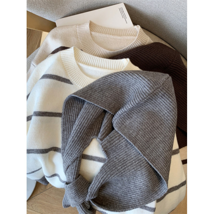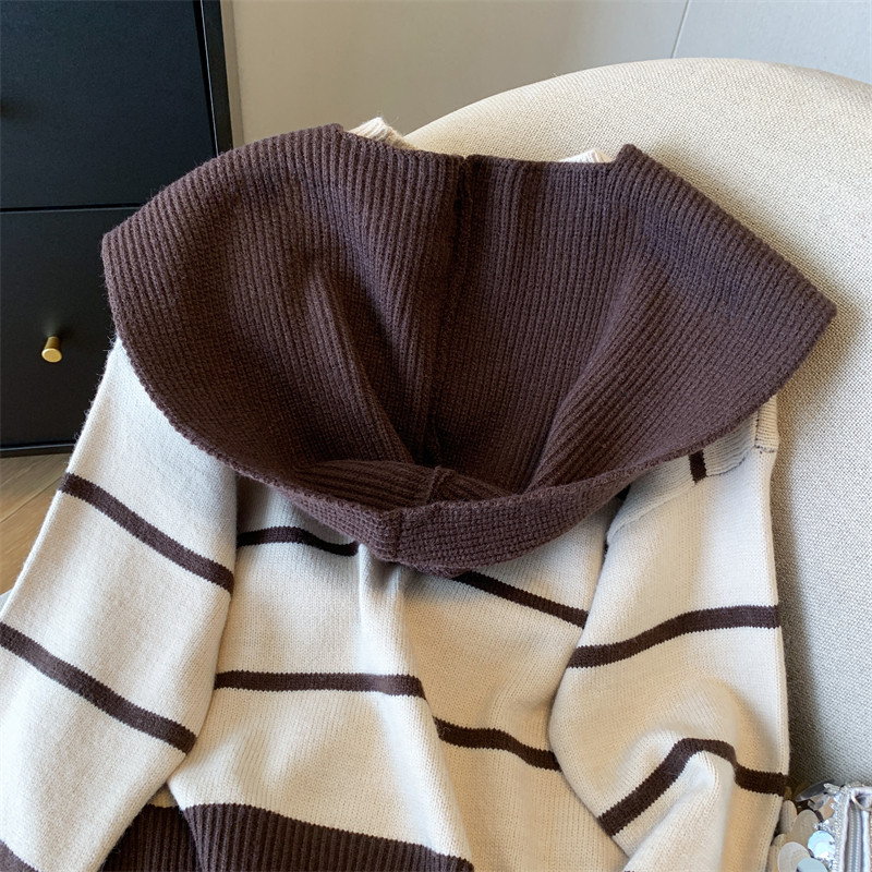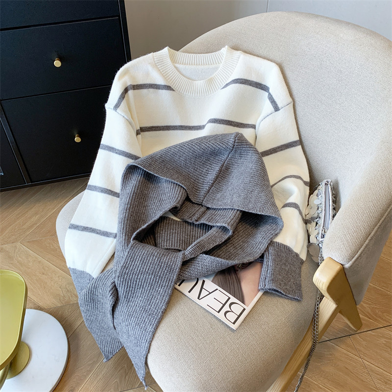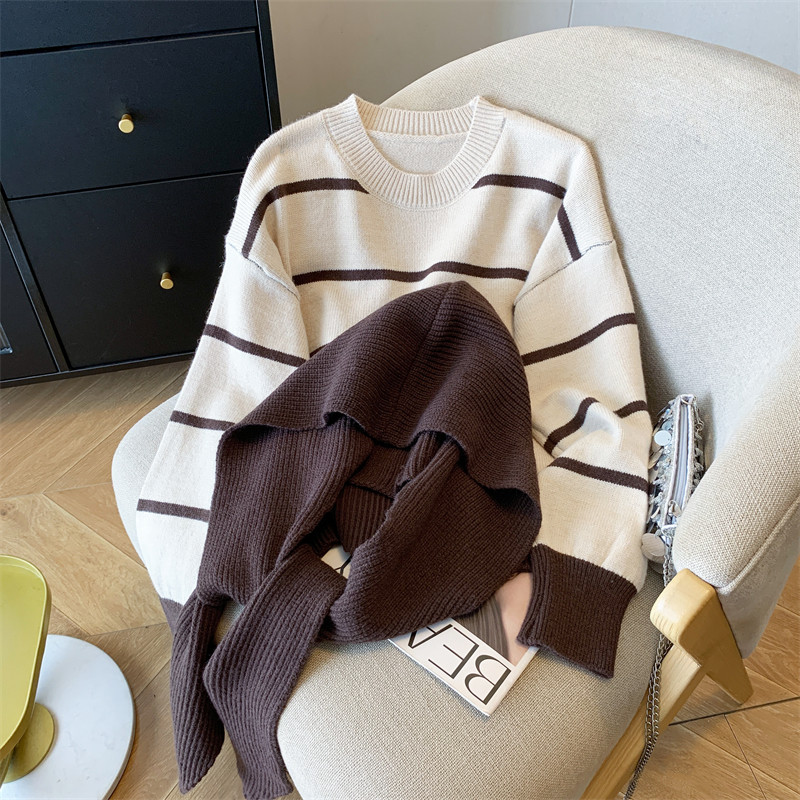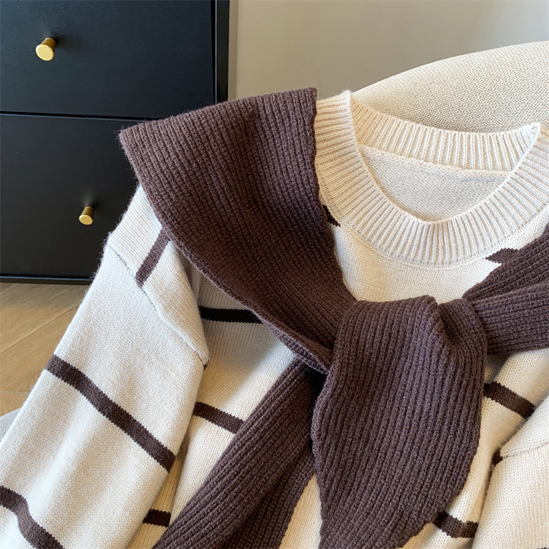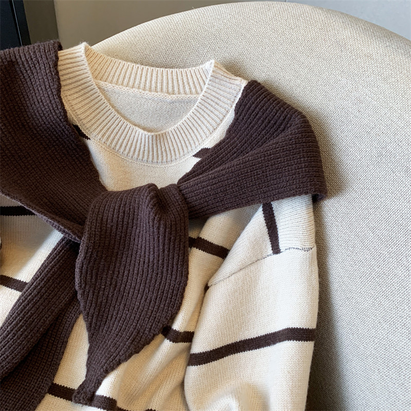 專櫃撤迴大牌剪標女裝條紋毛衣兩件套女秋冬學院風披肩針織衫上衣