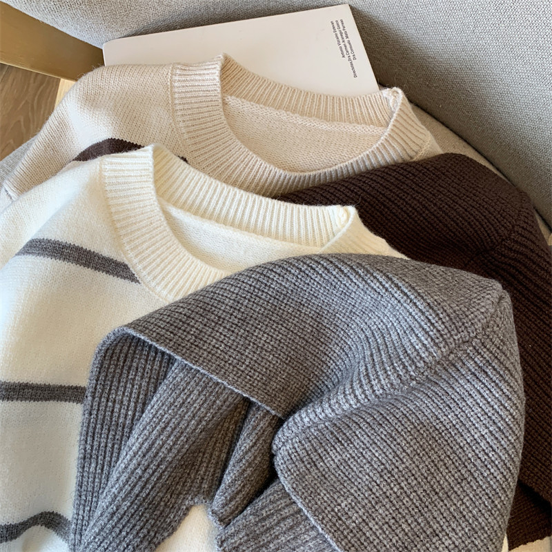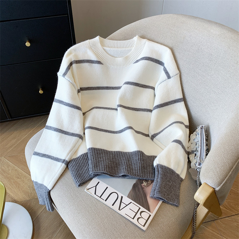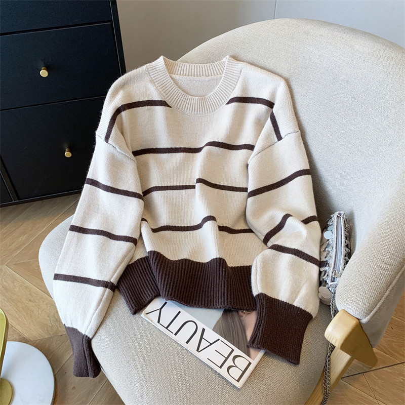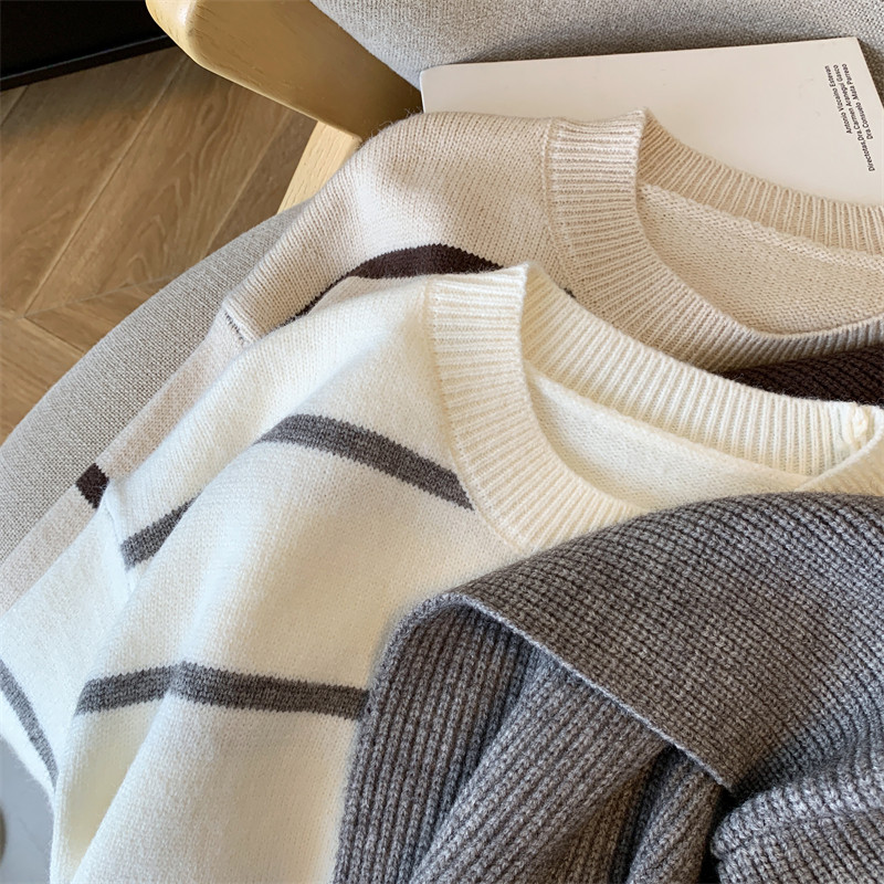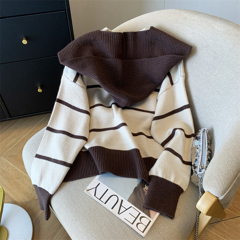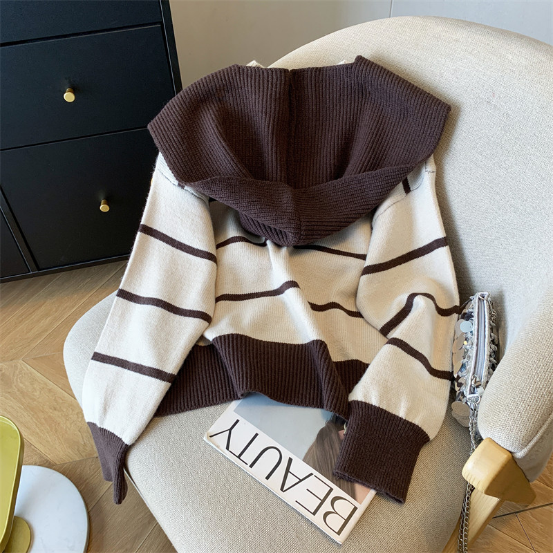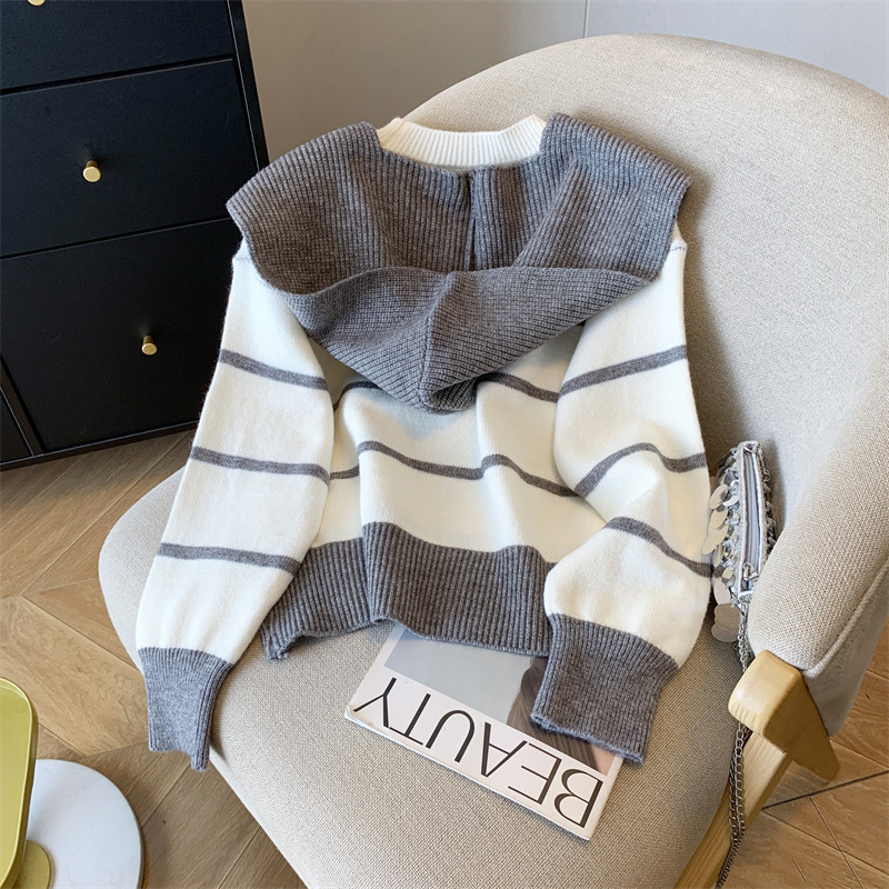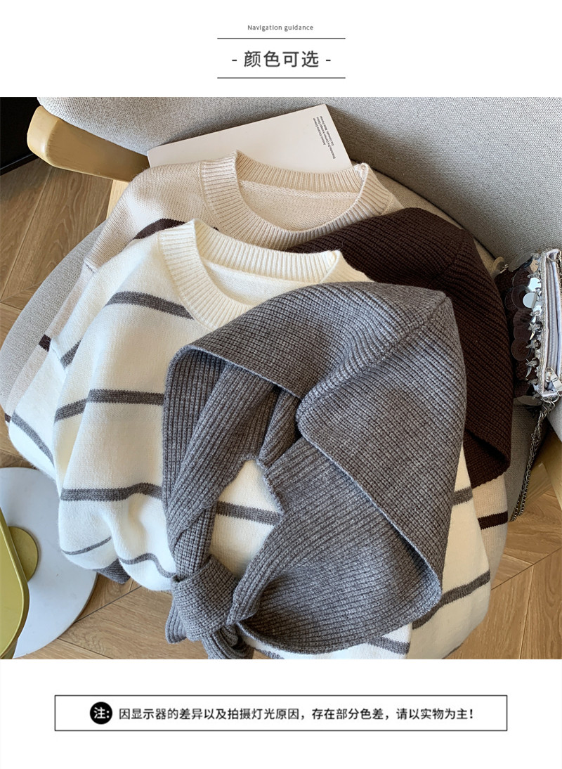 專櫃撤迴大牌剪標女裝條紋毛衣兩件套女秋冬學院風披肩針織衫上衣