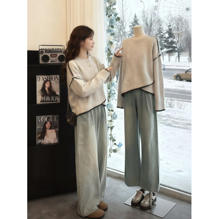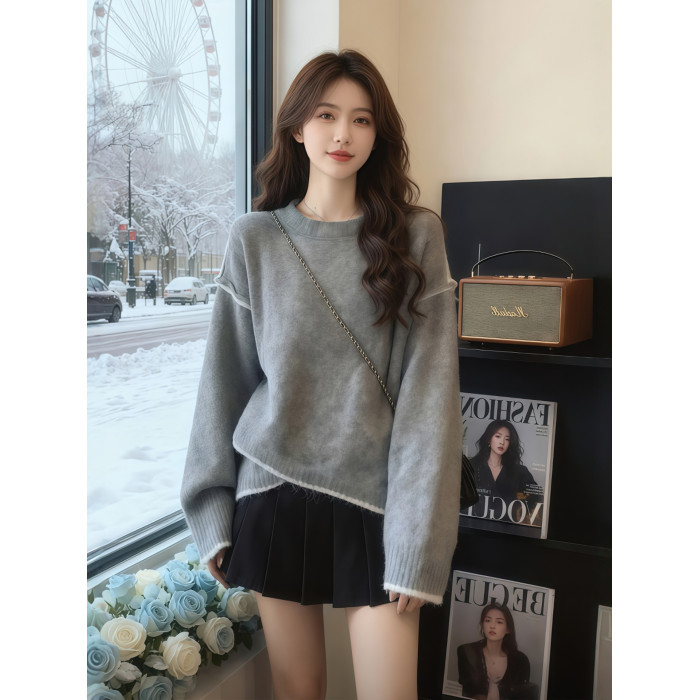 灰色不規則針織毛衣女款2025年秋冬新款可外穿內搭設計感小衆上衣