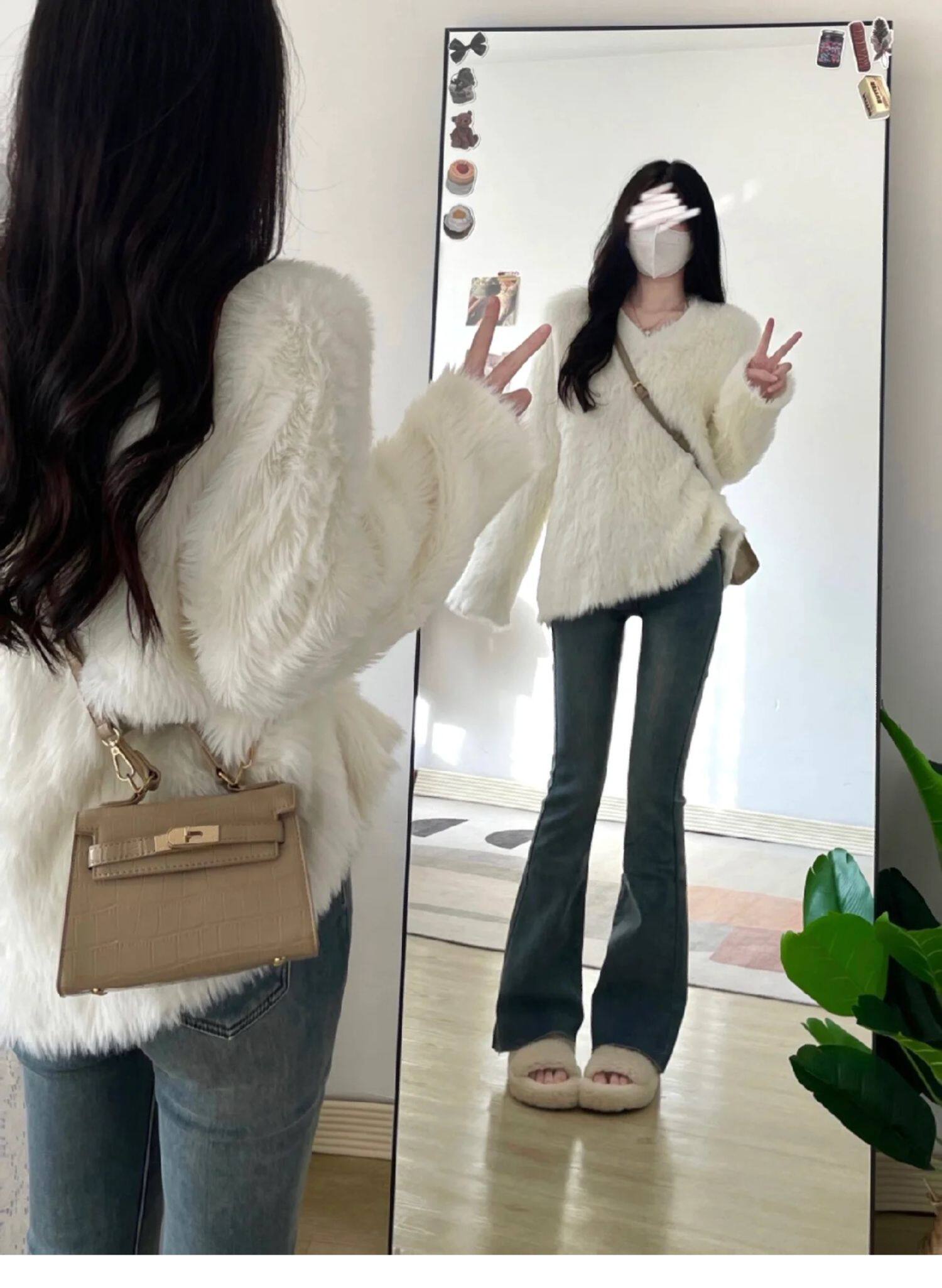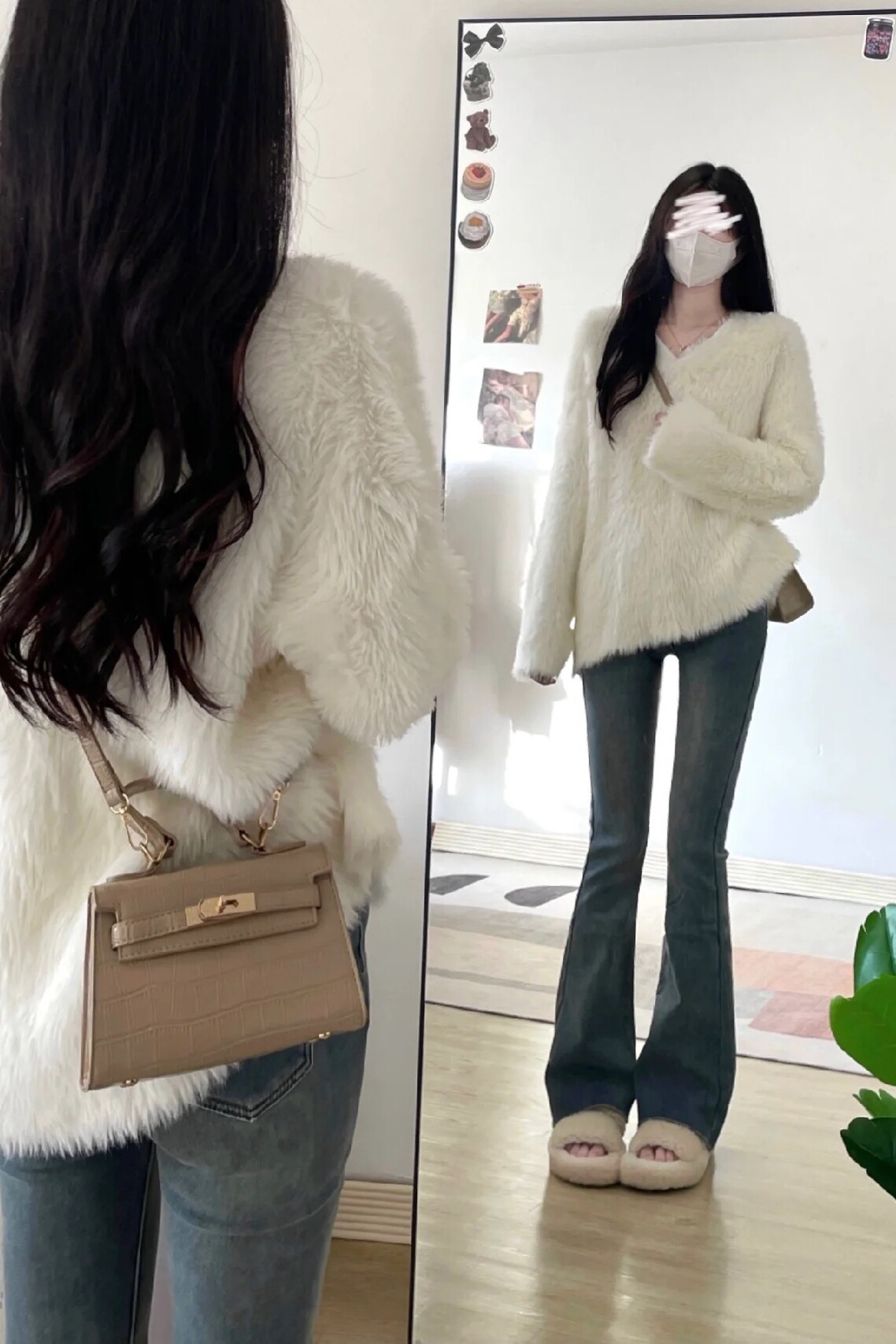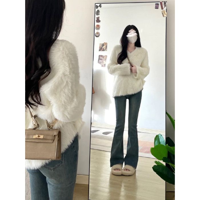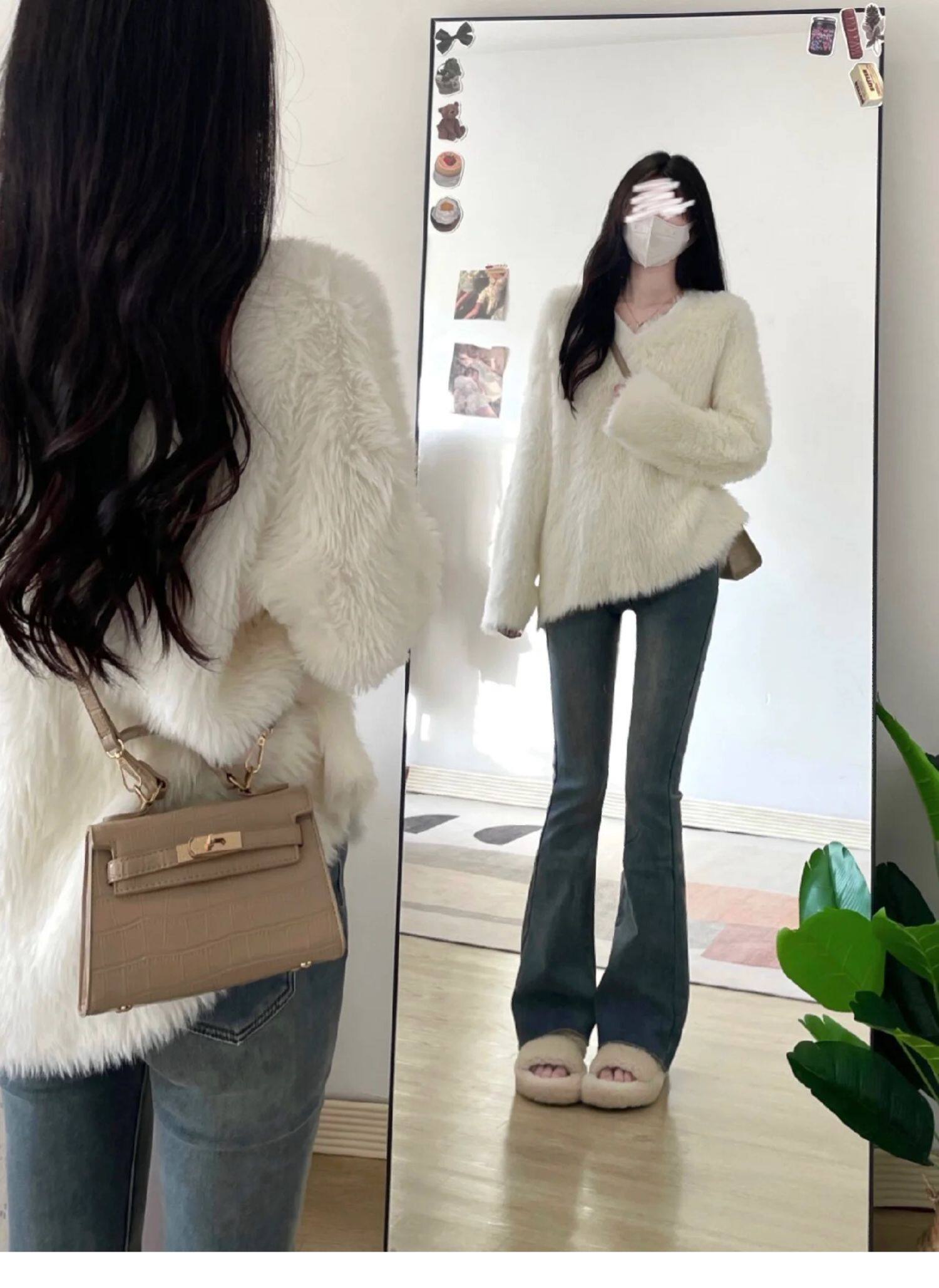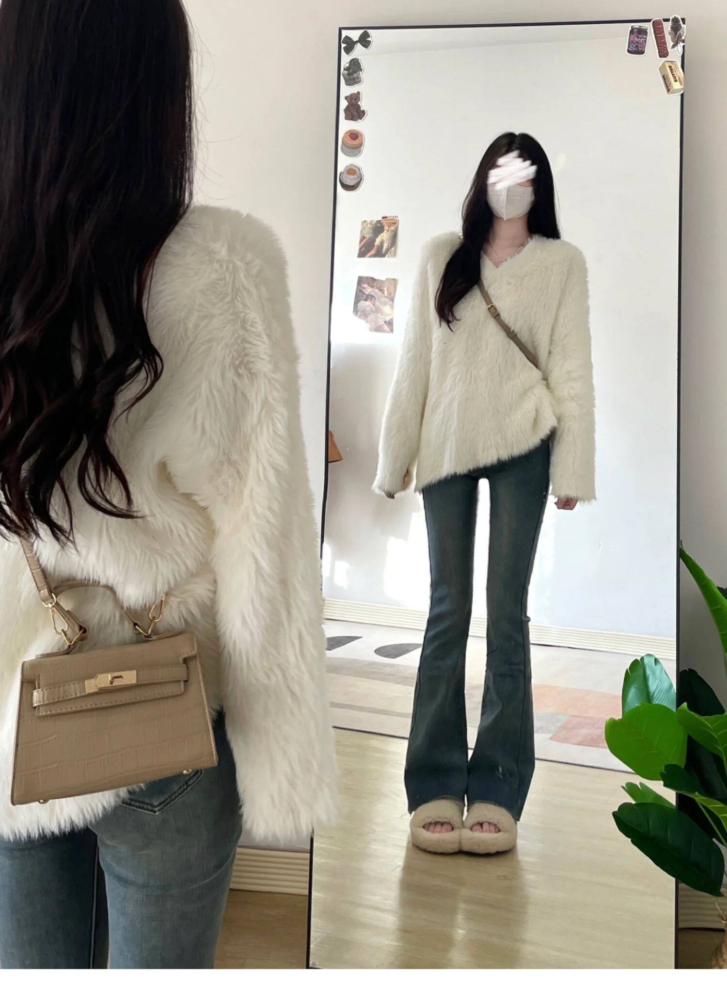 白色水貂絨毛衣女秋冬季外穿設計感小衆慵懶高級感內搭針織衫上衣