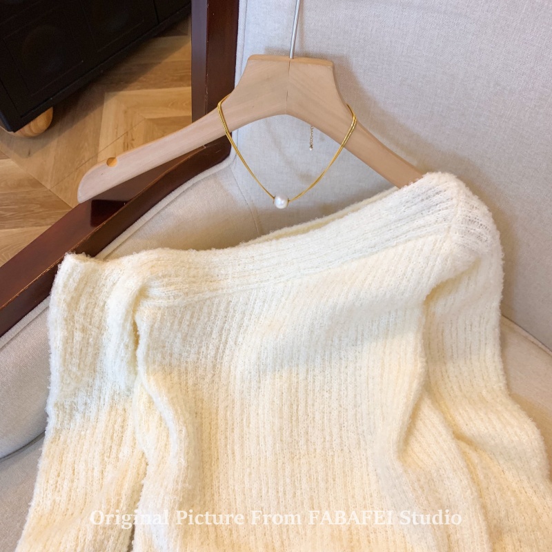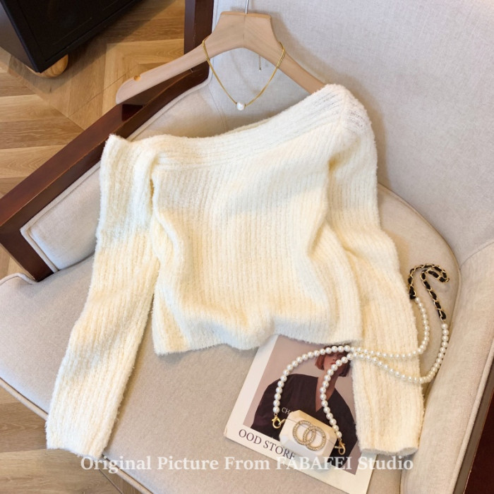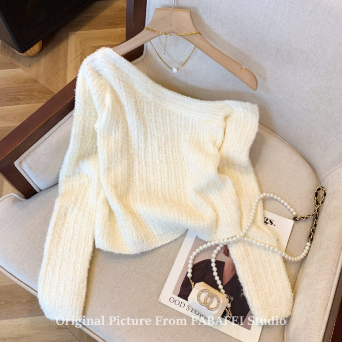 純欲斜領露肩毛衣女2025秋季修身內搭軟糯針織衫純欲一字肩小上衣