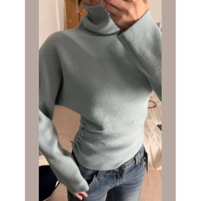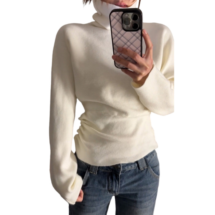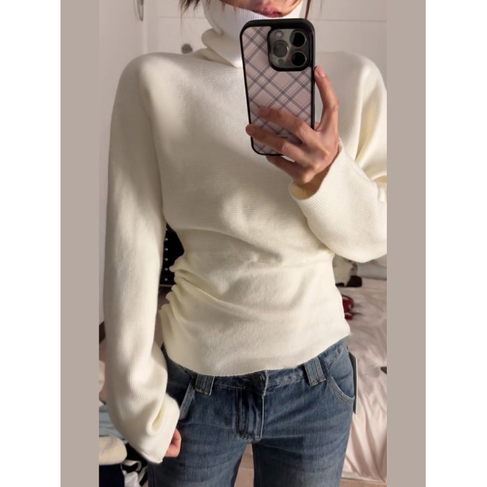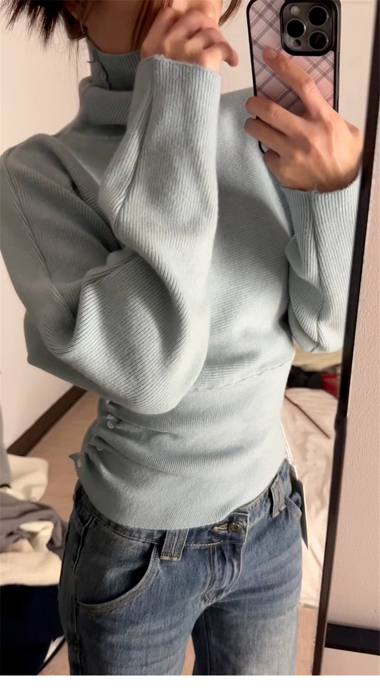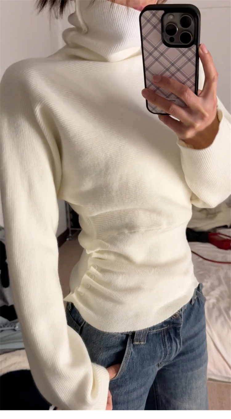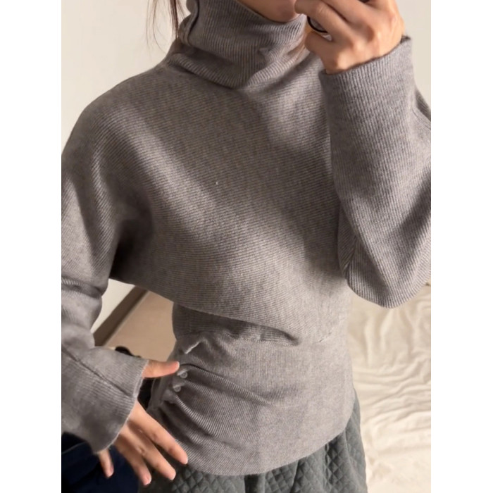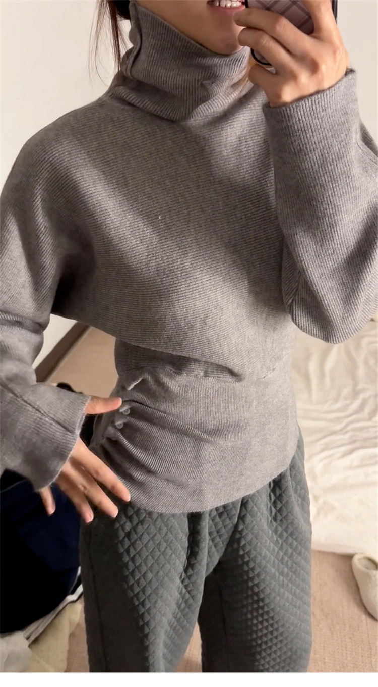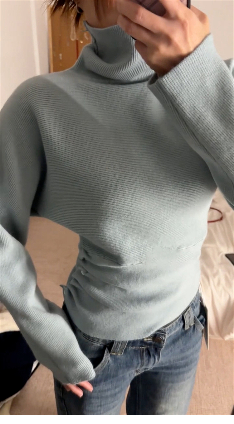 灰色高領修身收腰針織毛衣上衣2025新款內搭打底衫女春秋季可外穿
