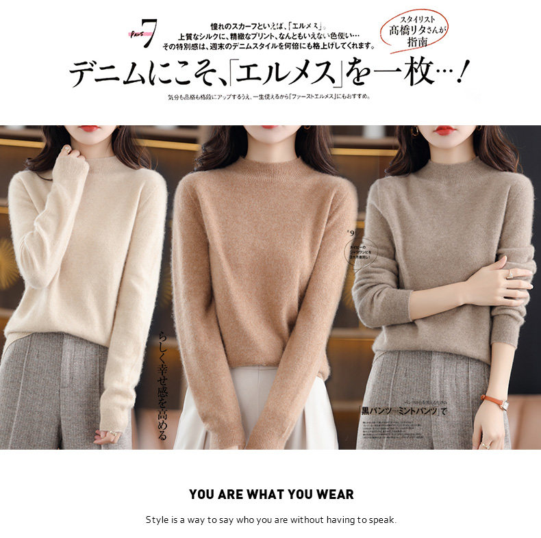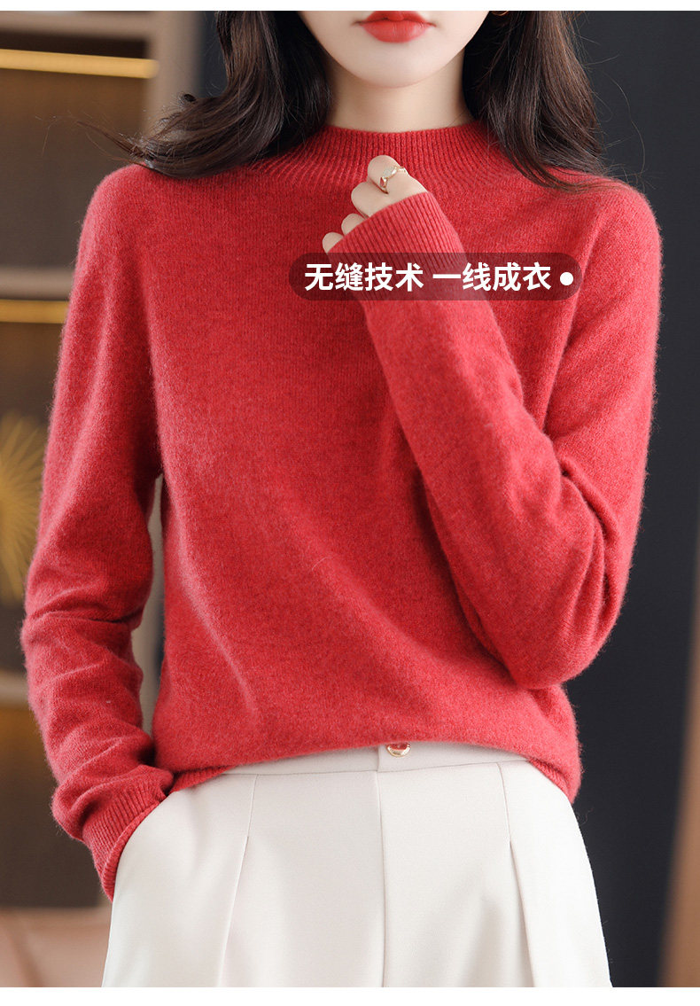恒源祥無縫半高領100純羊毛衫女2025冬內搭打底衫純色百搭羊絨衫