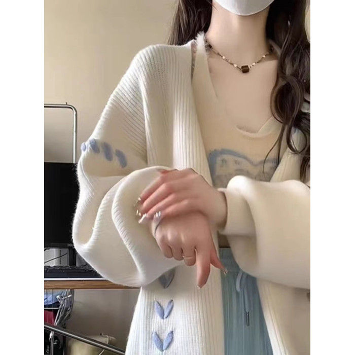 大碼胖妹妹奶fufu慵懶風針織開衫毛衣外套女春秋冬美式長袖上衣潮