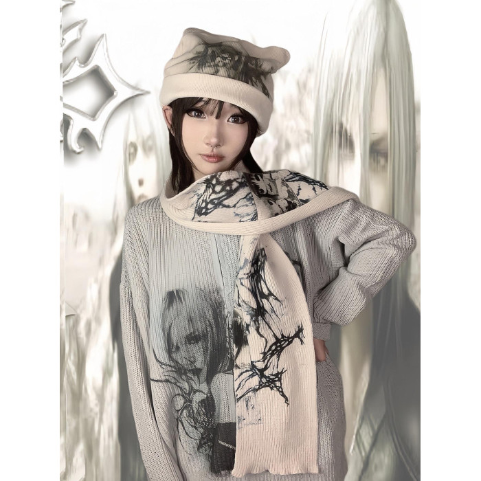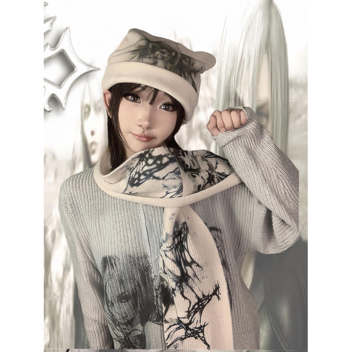 WEBBAR 視覺系亞文化二次元奶茶色保暖秋冬圍巾NO.160-x