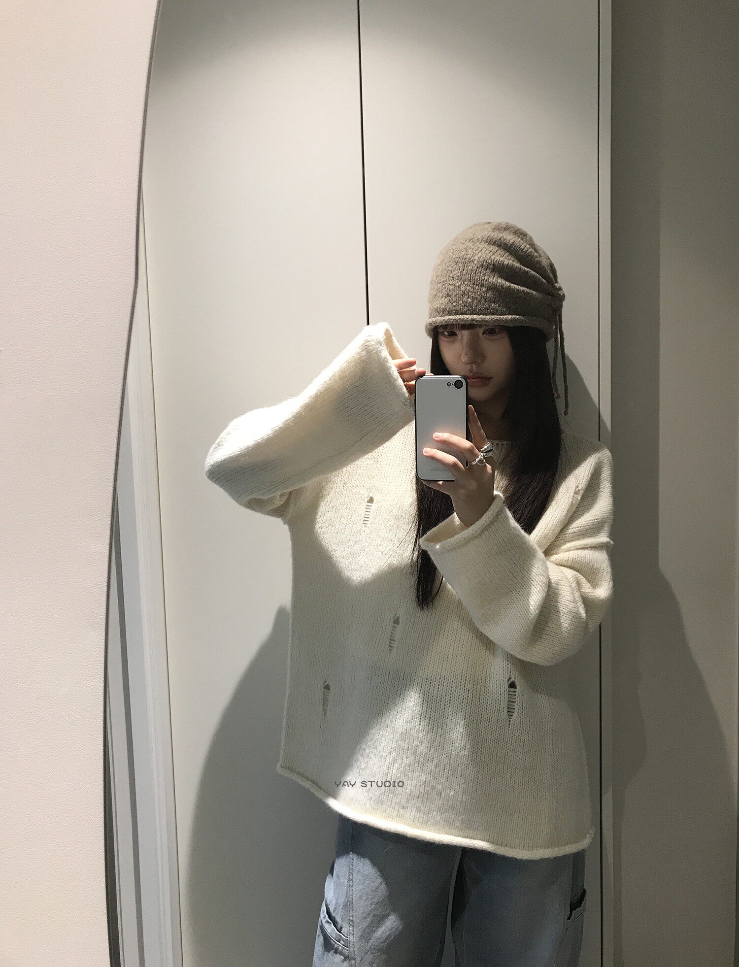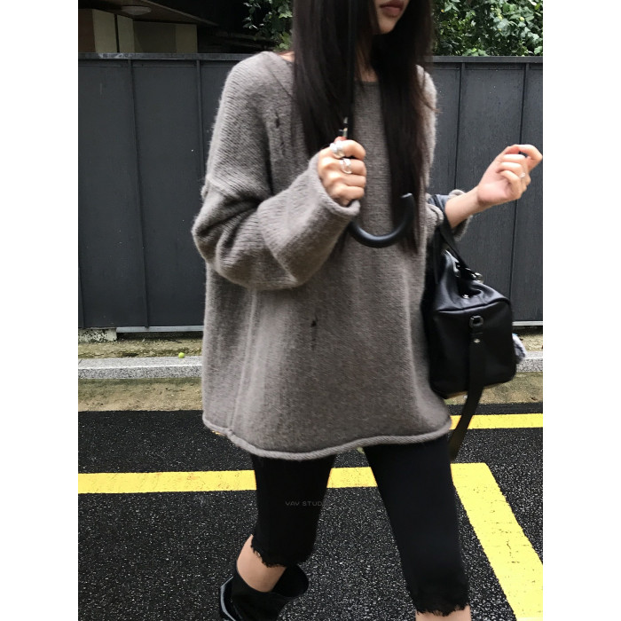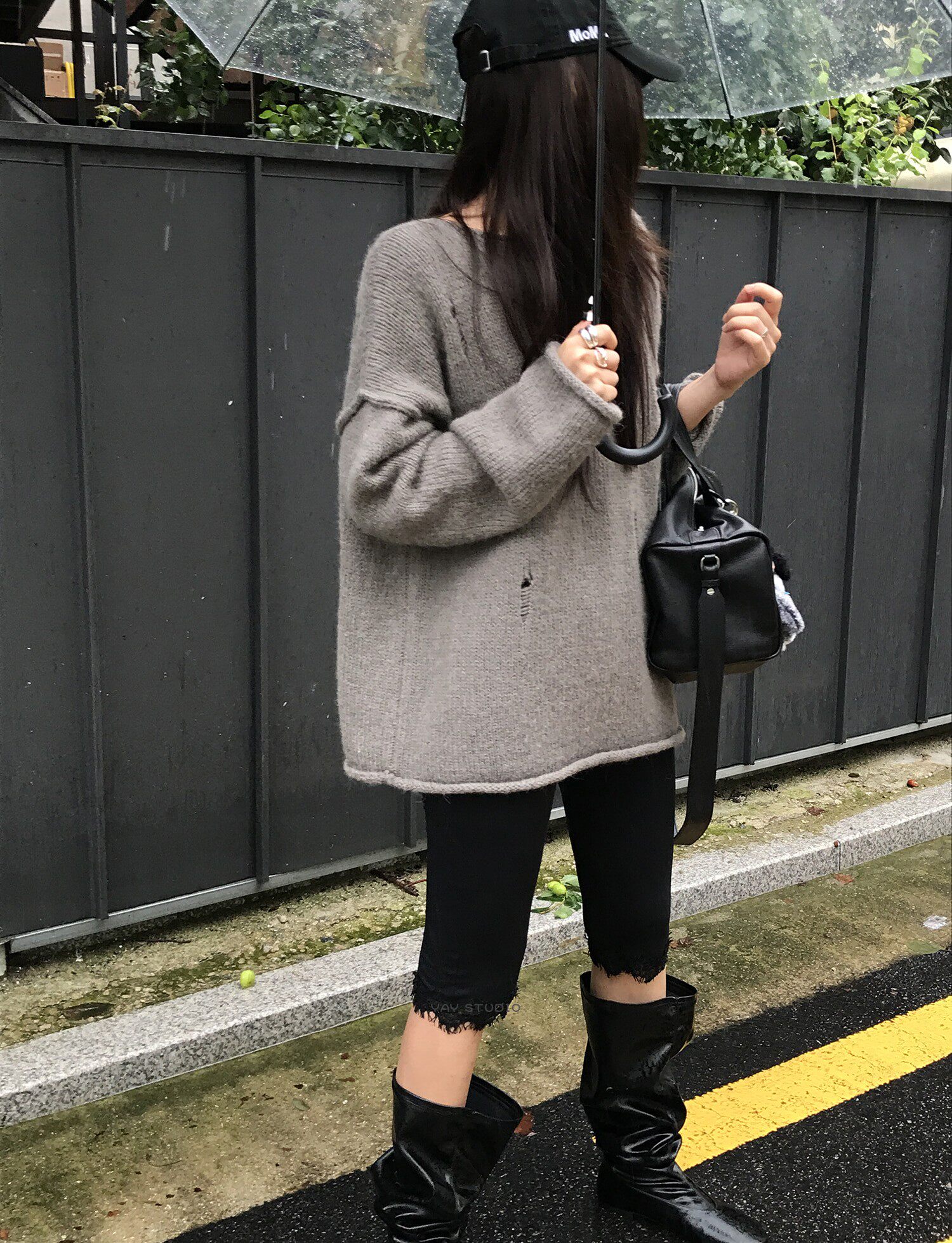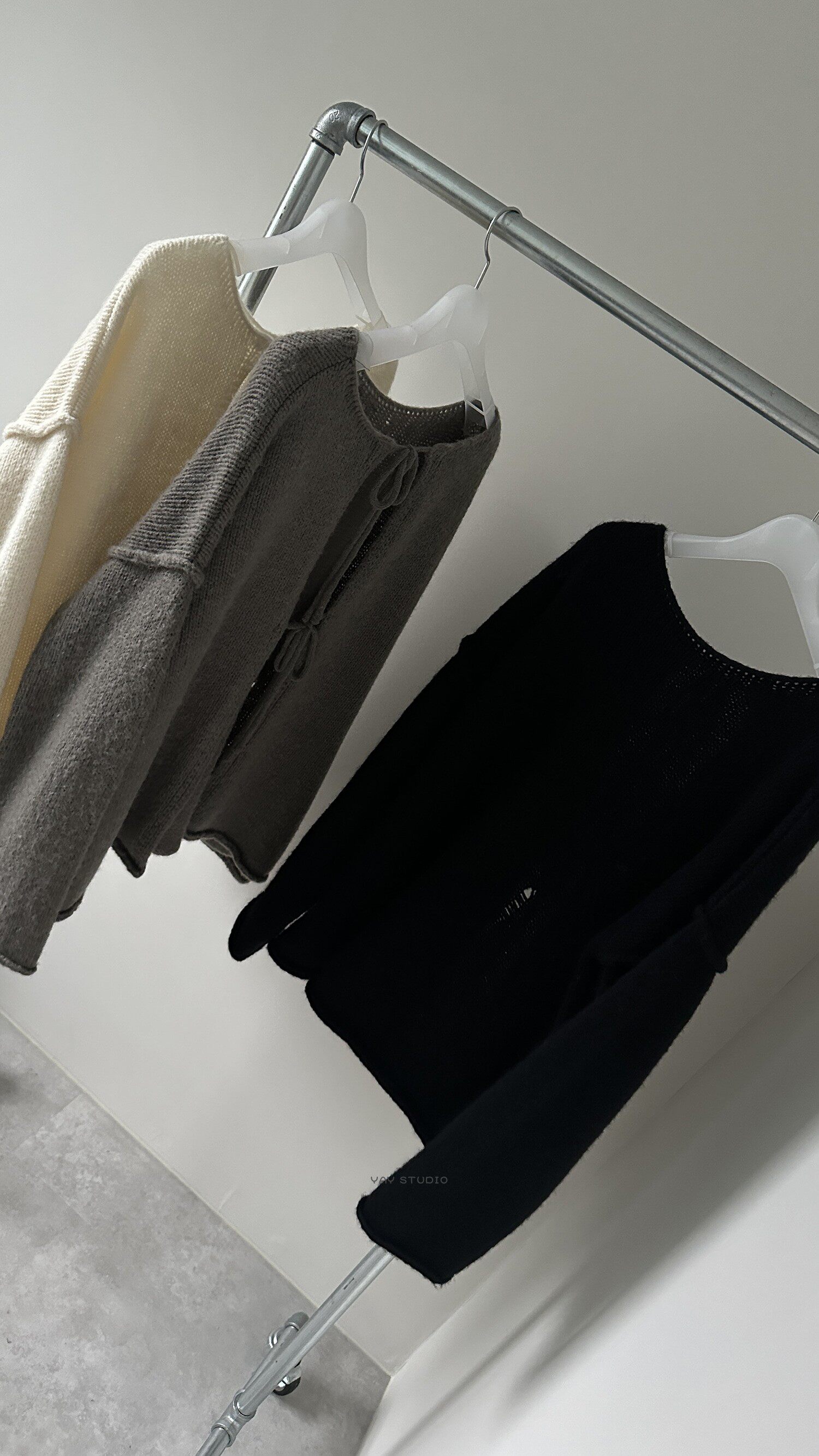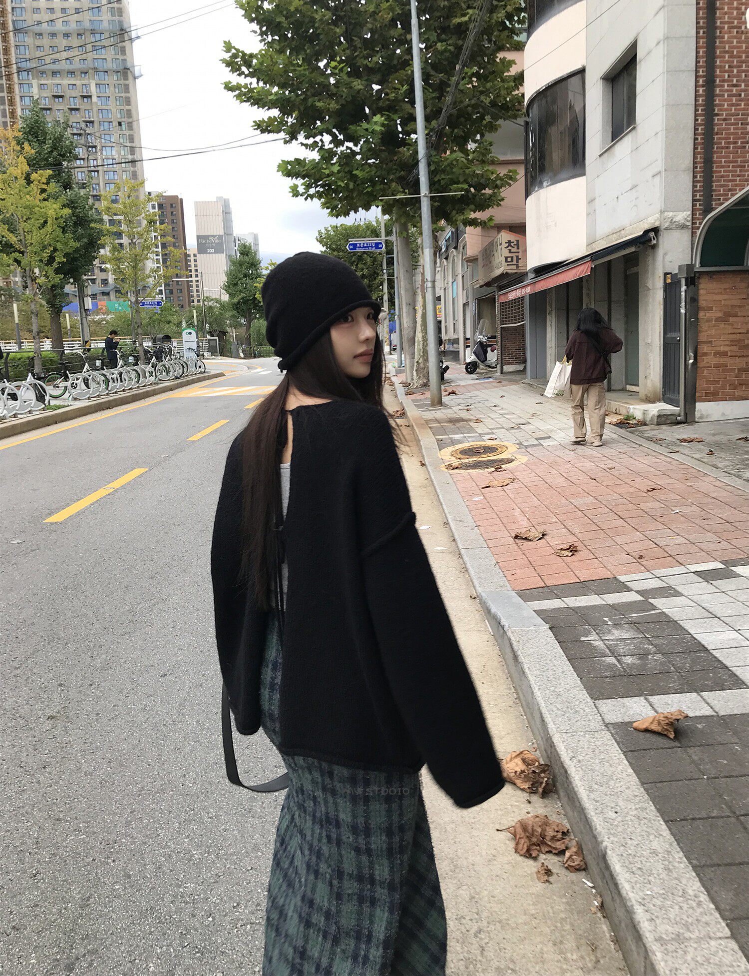 Exclusive type 韓國小衆設計前後兩穿系帶個性破洞針織毛衣開衫