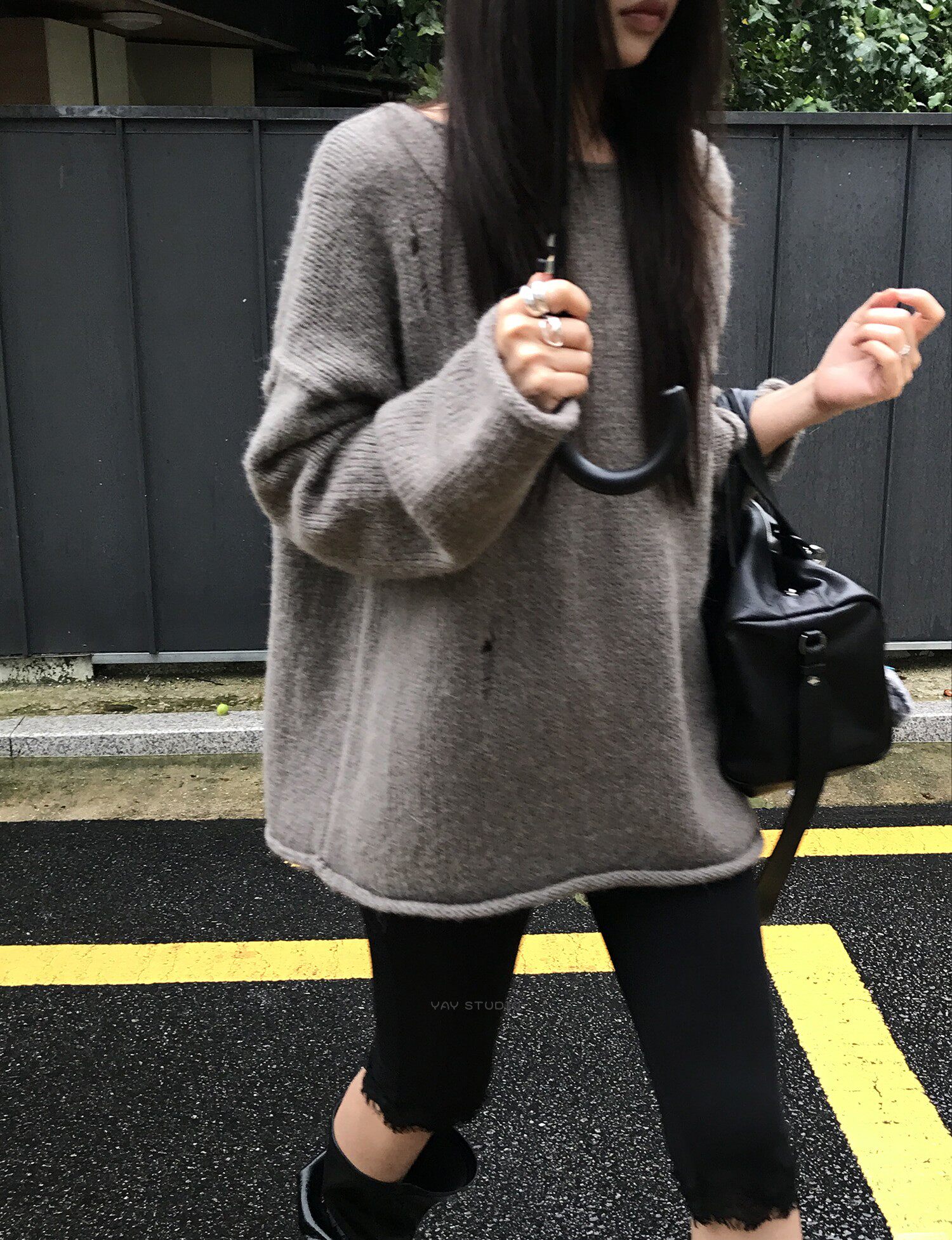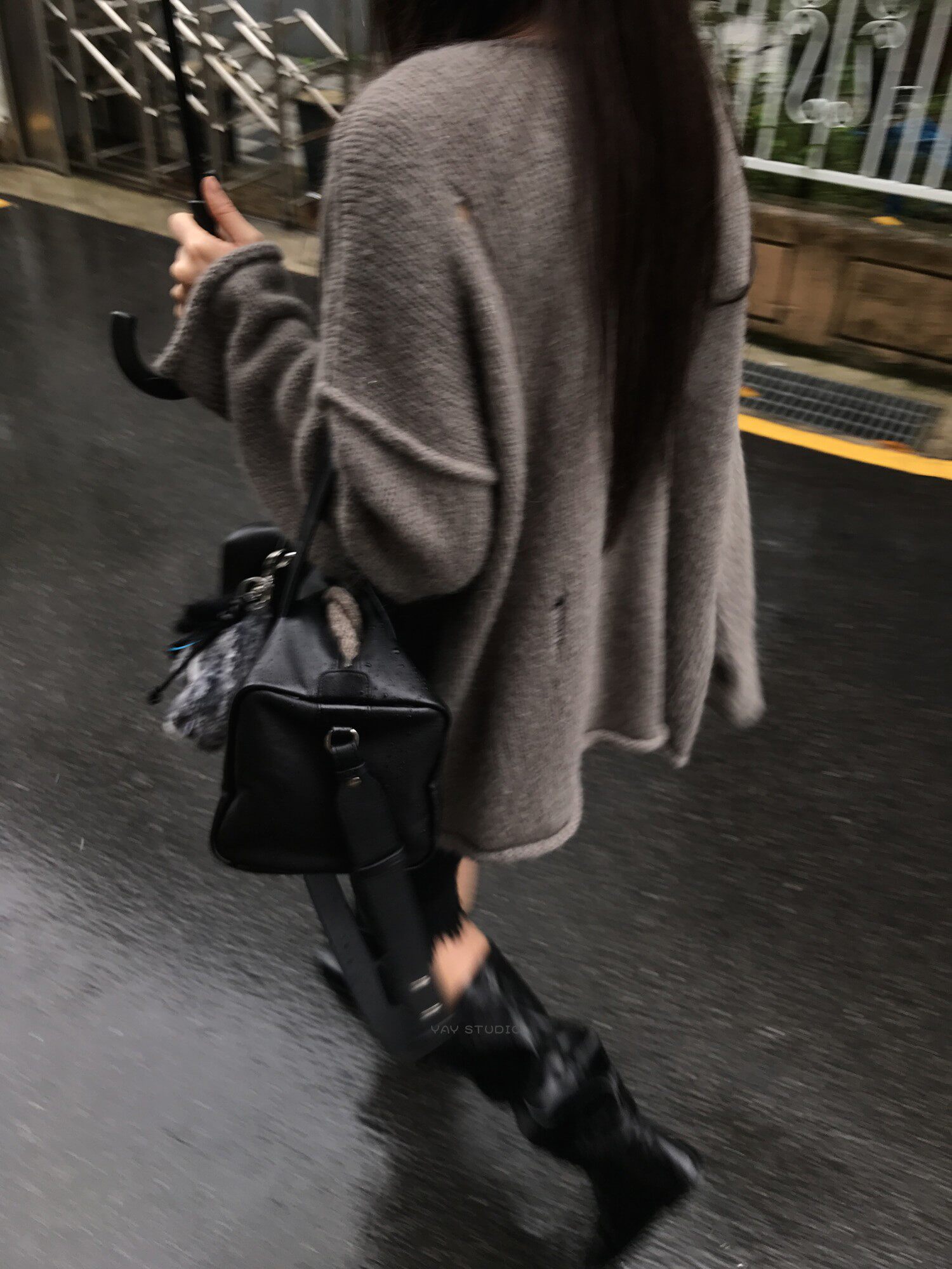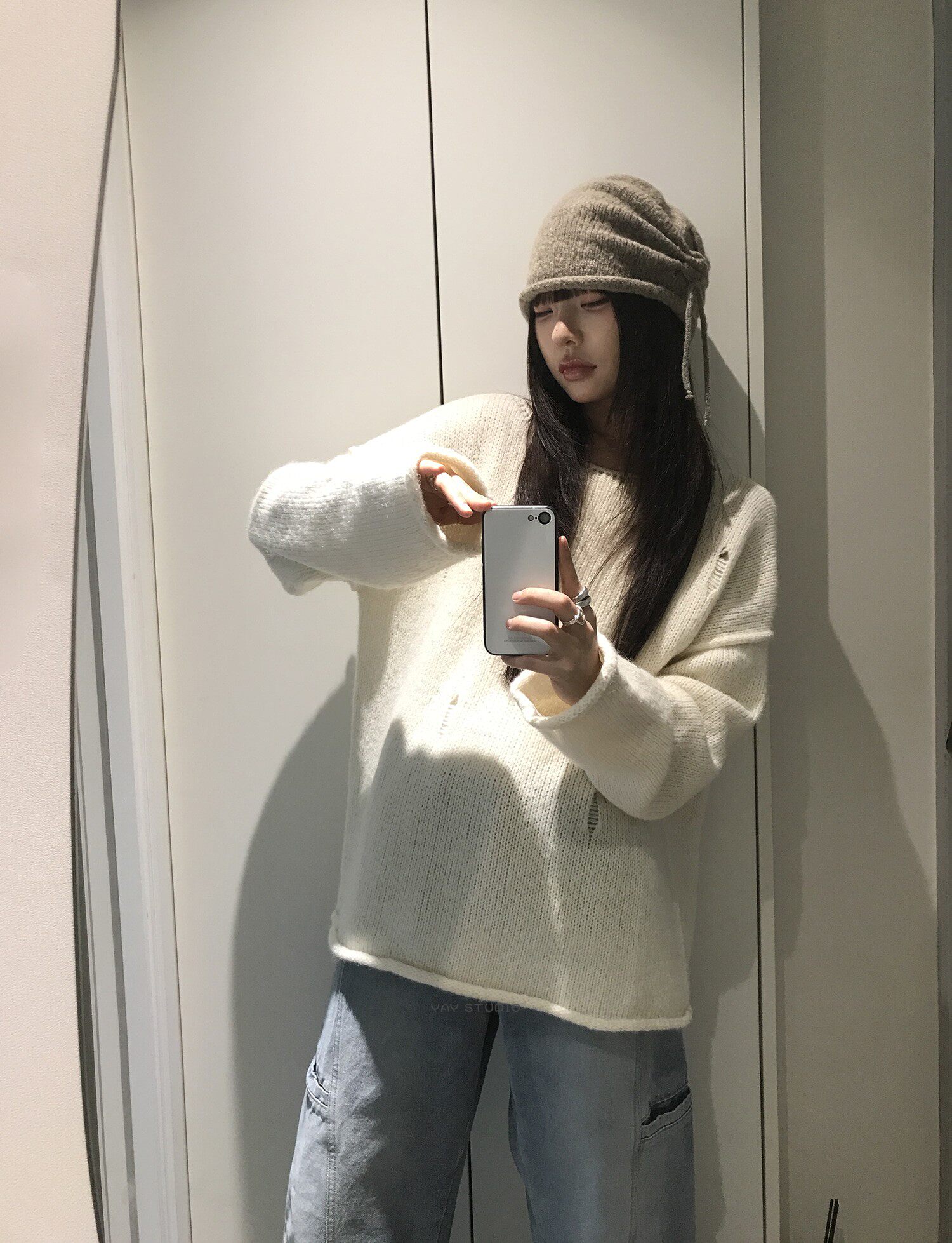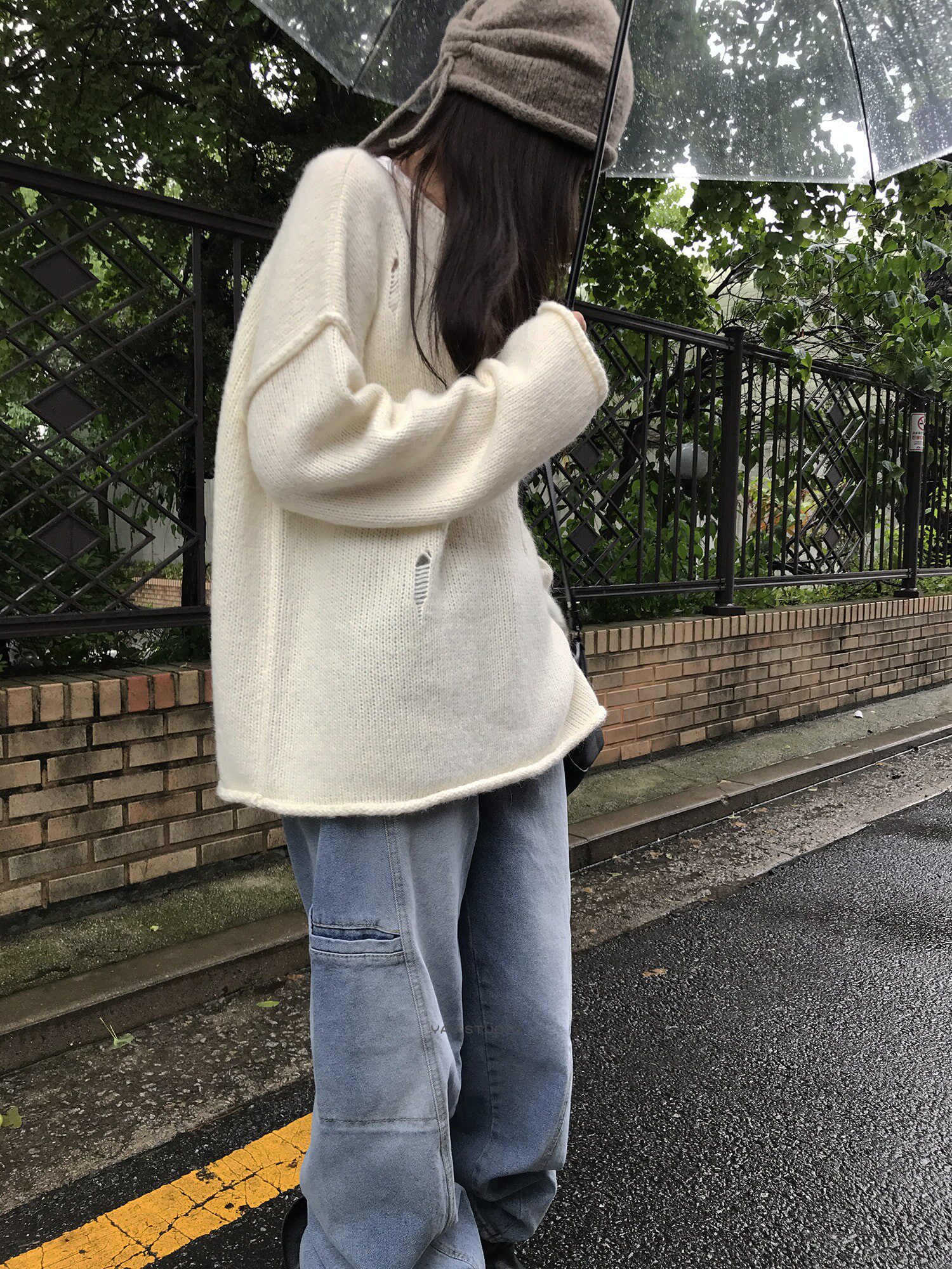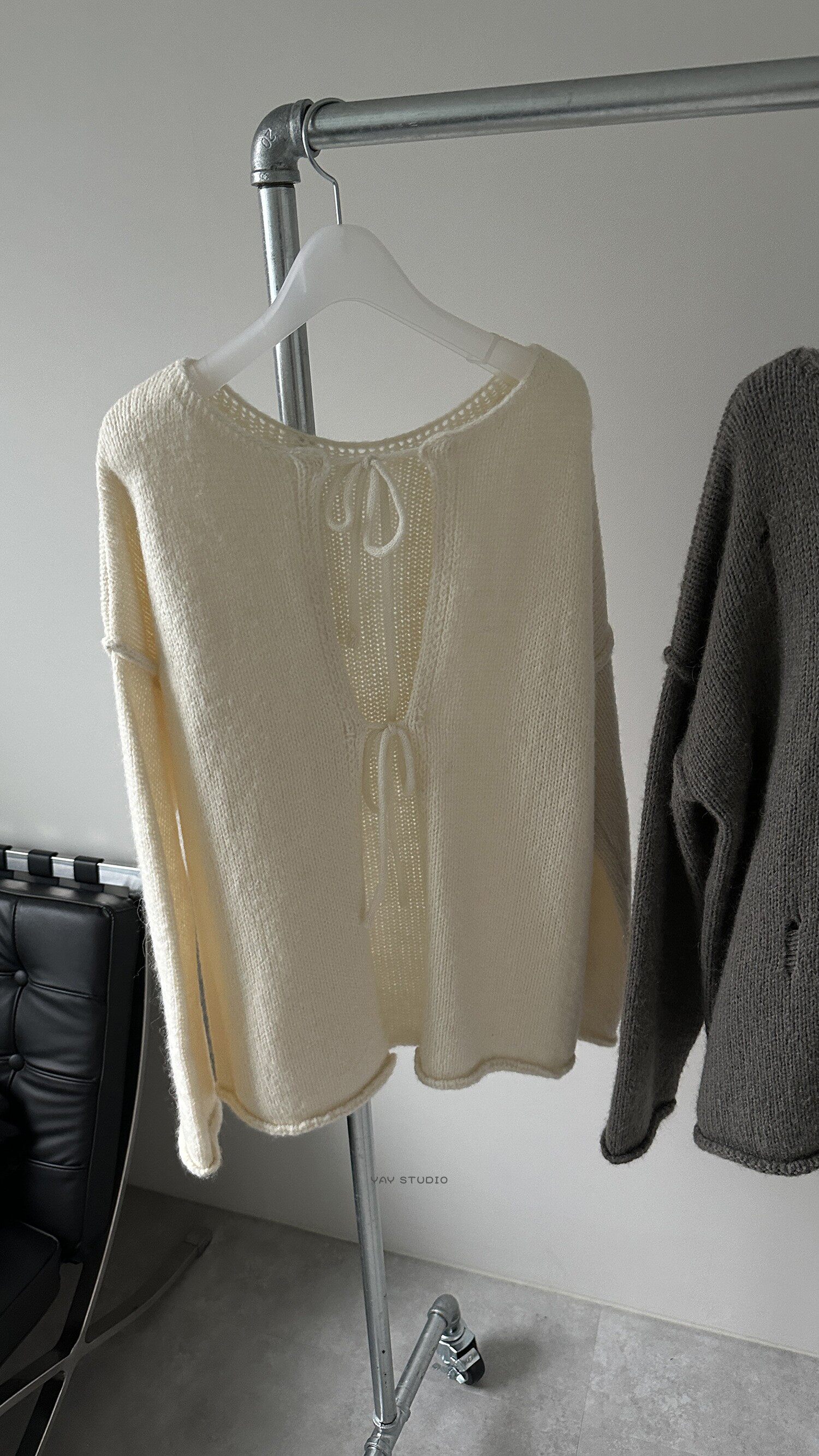 Exclusive type 韓國小衆設計前後兩穿系帶個性破洞針織毛衣開衫
