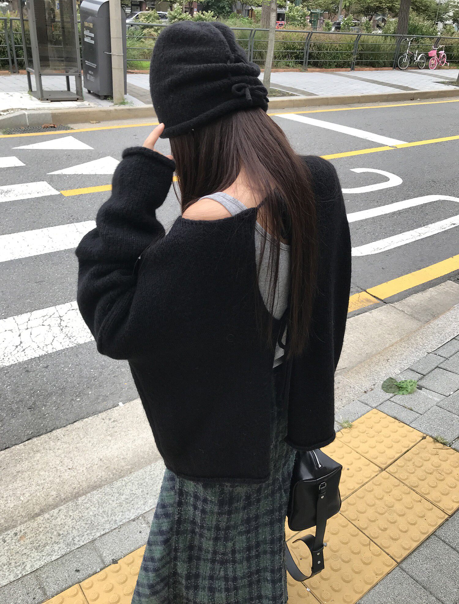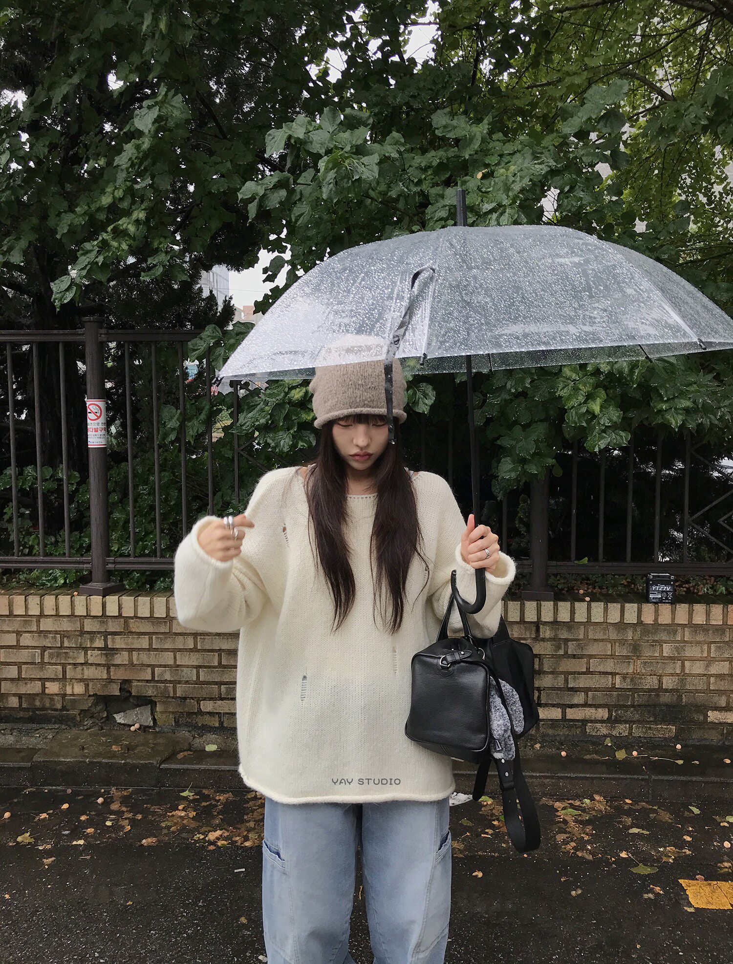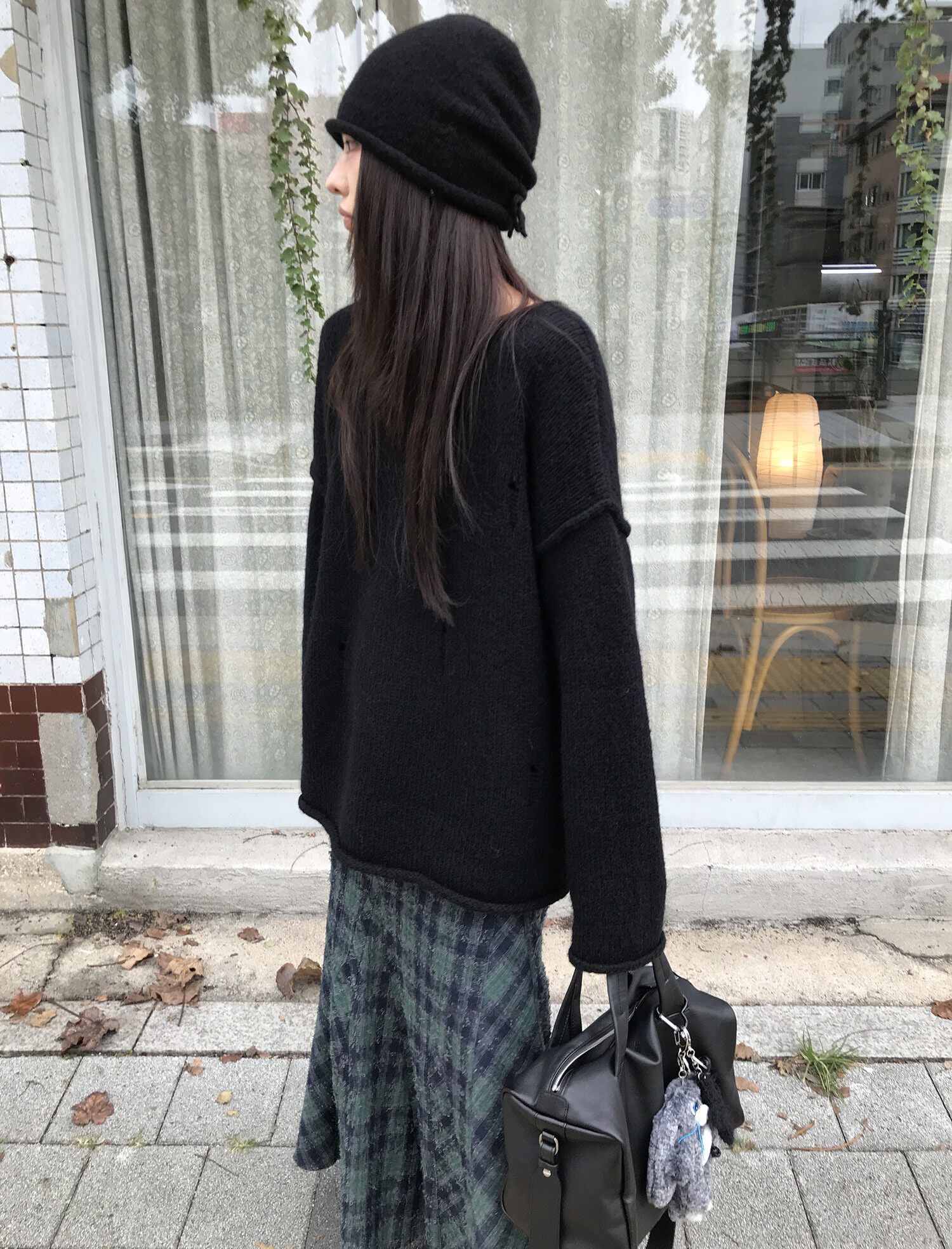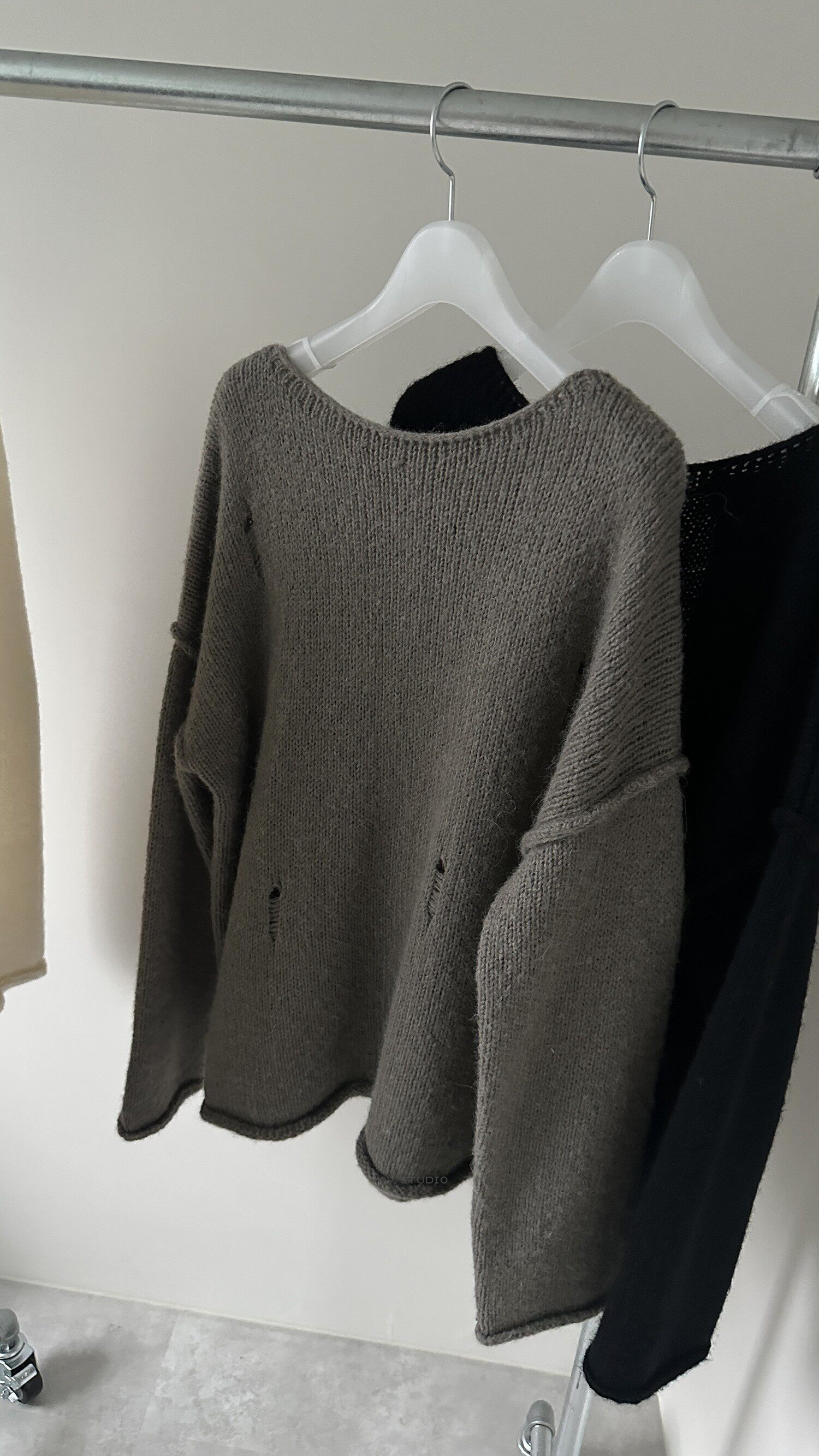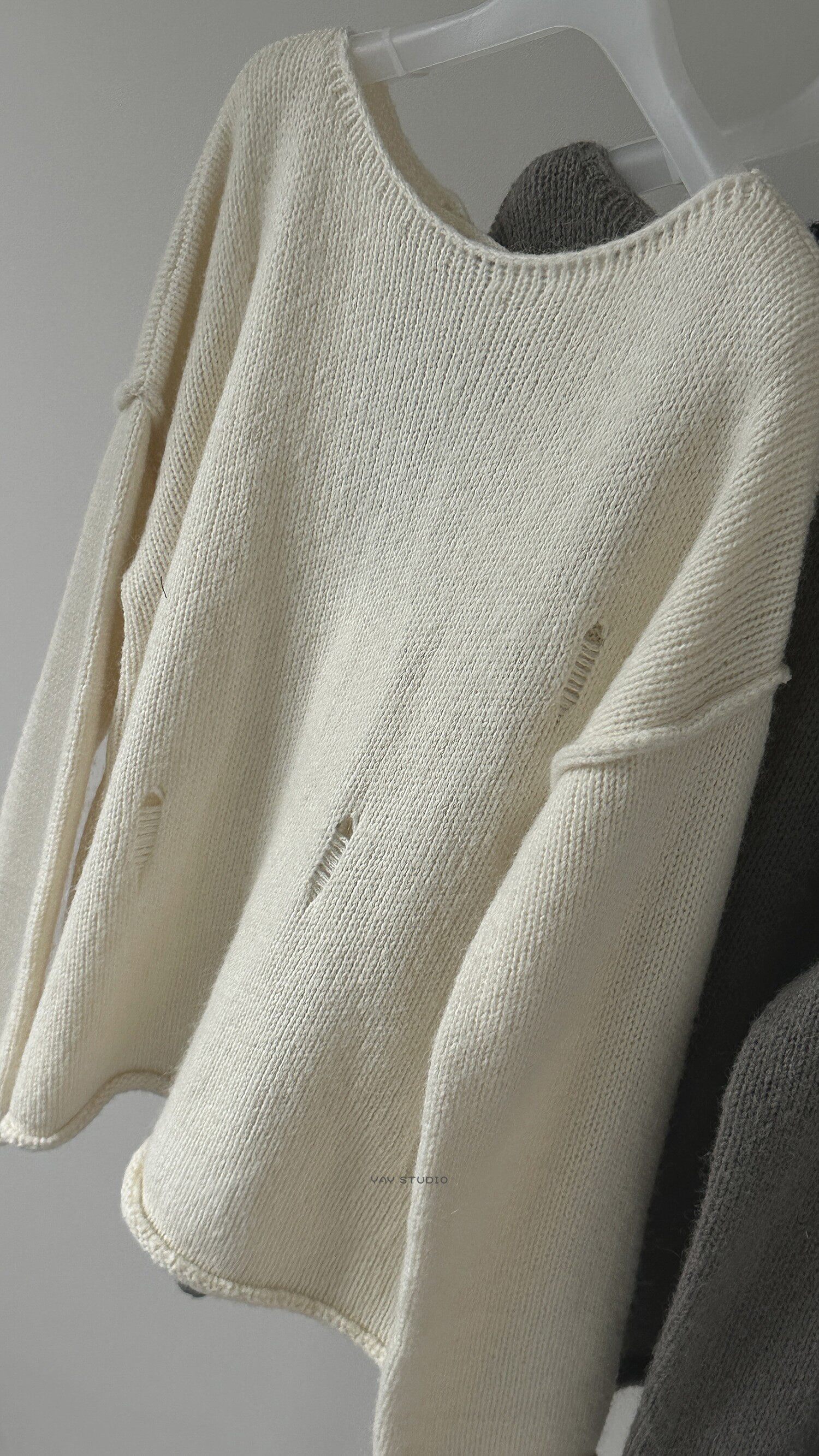Exclusive type 韓國小衆設計前後兩穿系帶個性破洞針織毛衣開衫