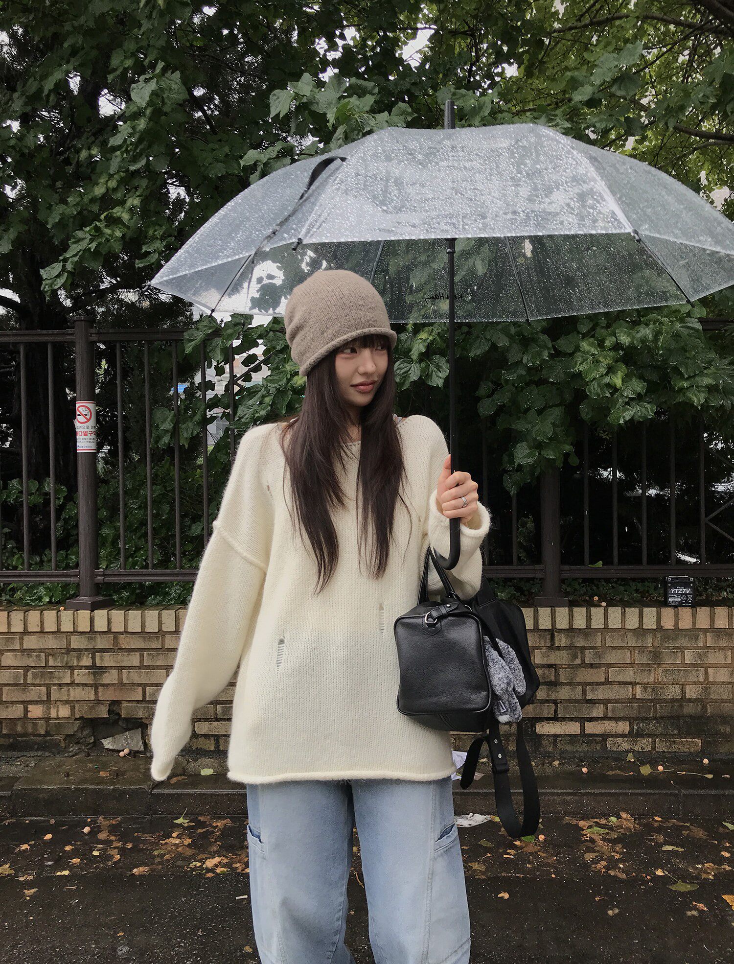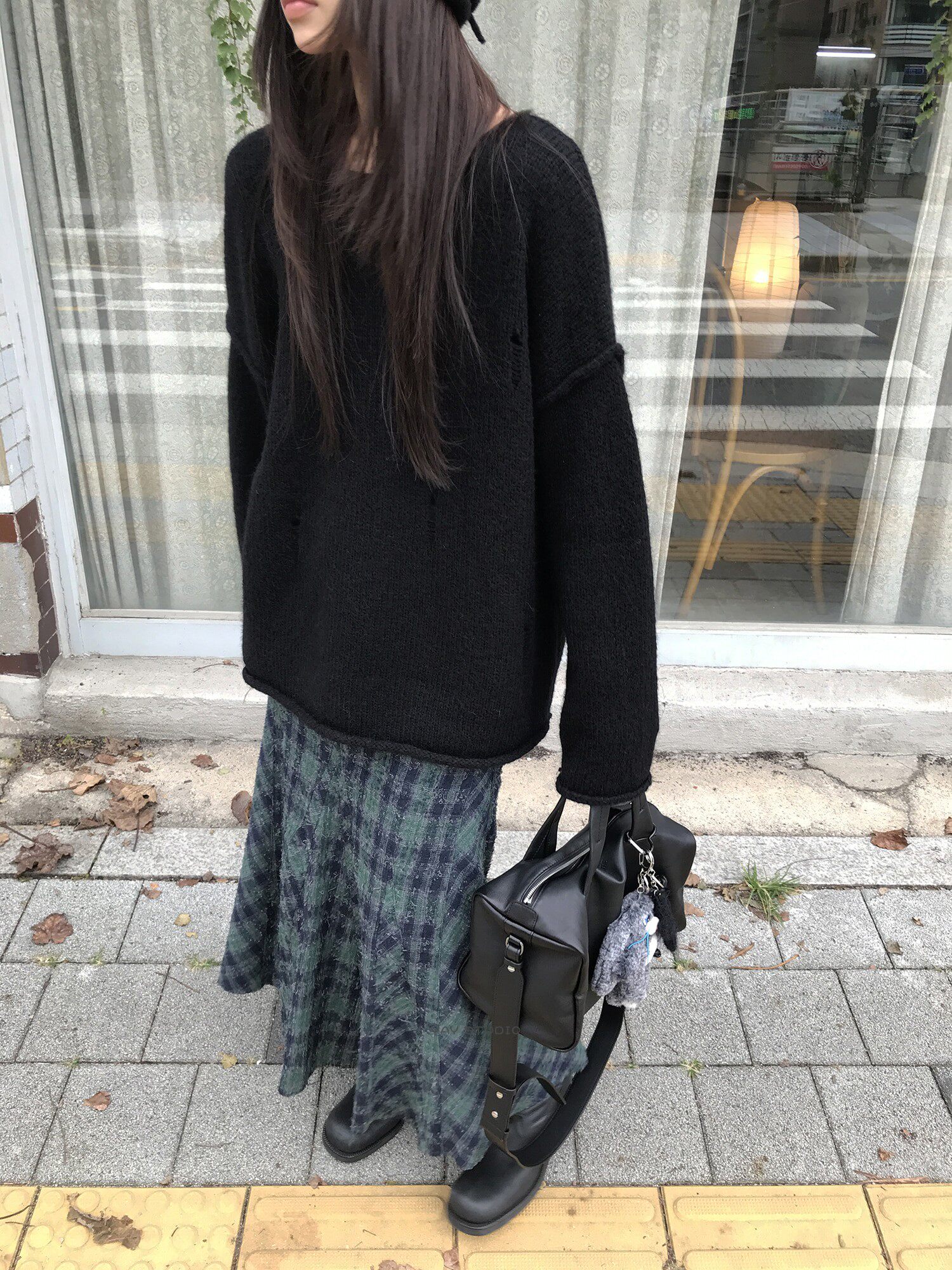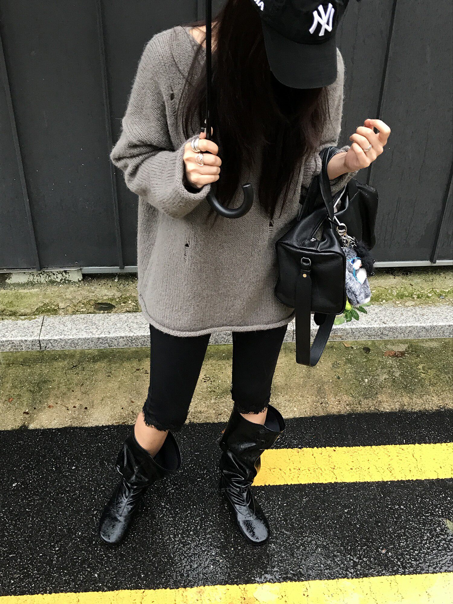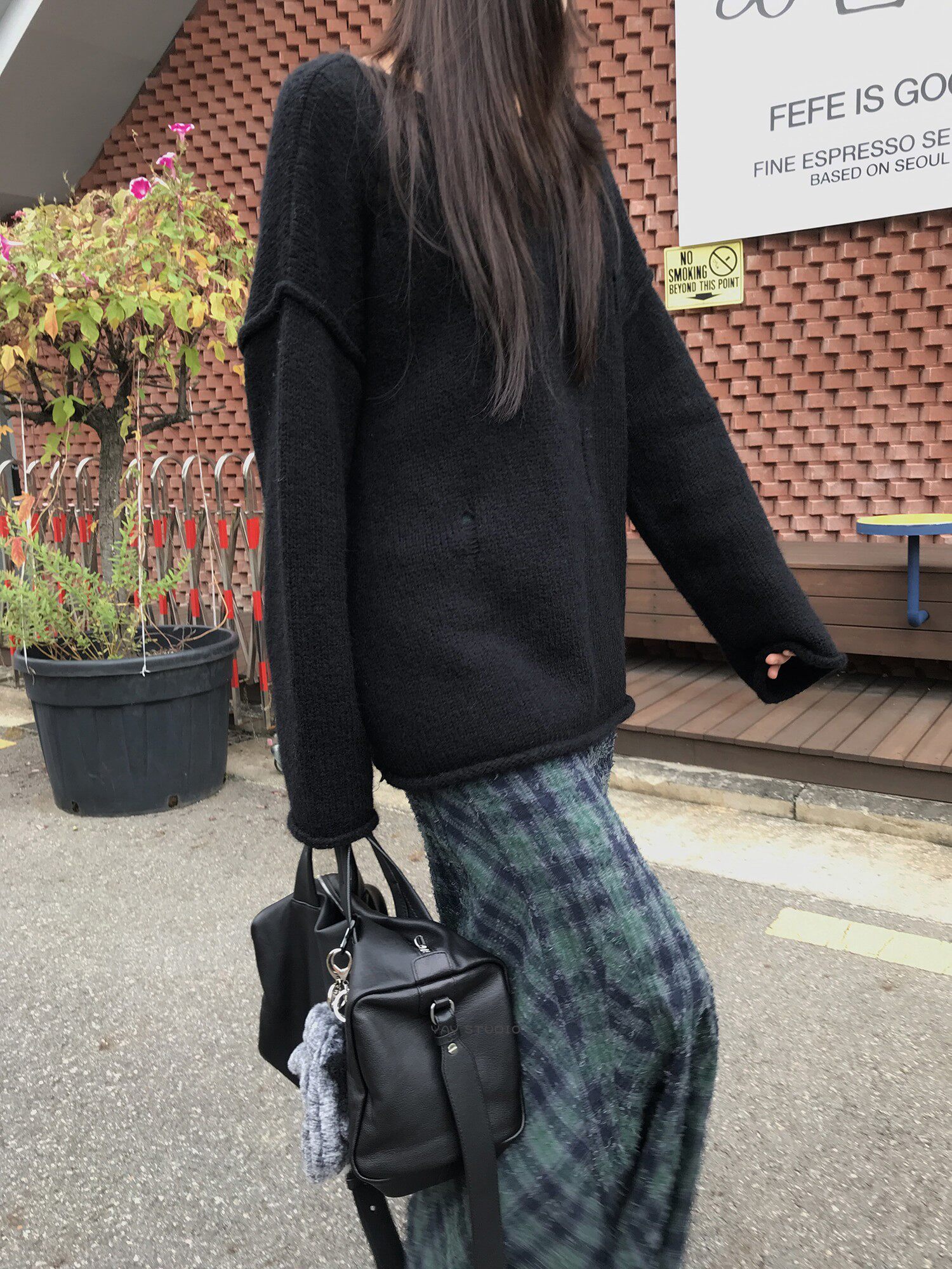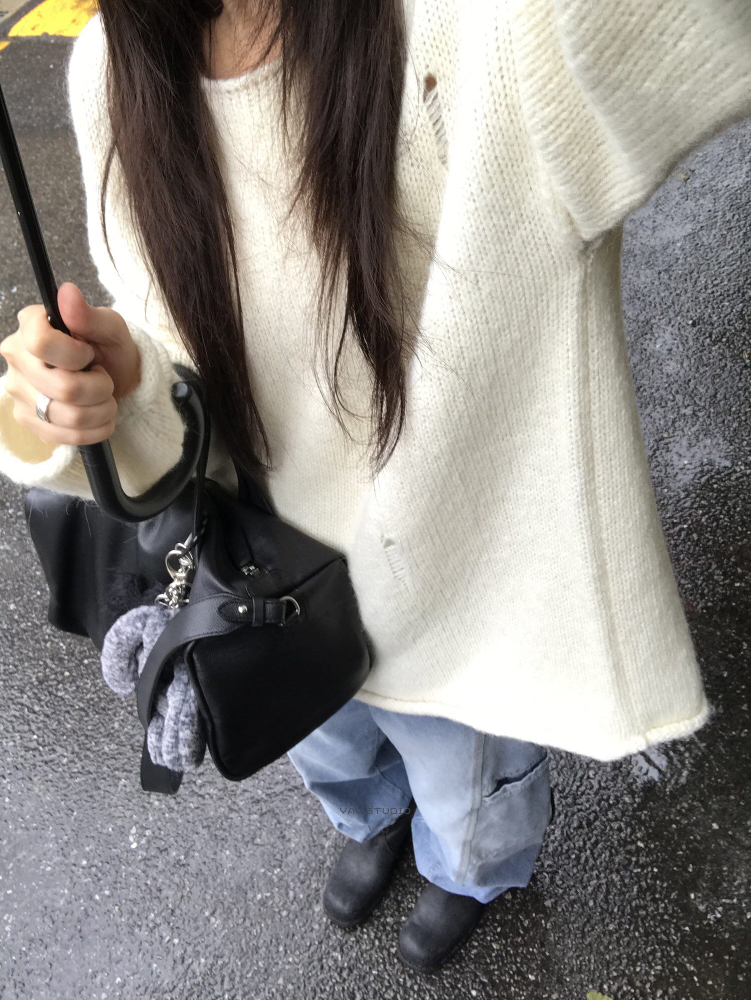 Exclusive type 韓國小衆設計前後兩穿系帶個性破洞針織毛衣開衫