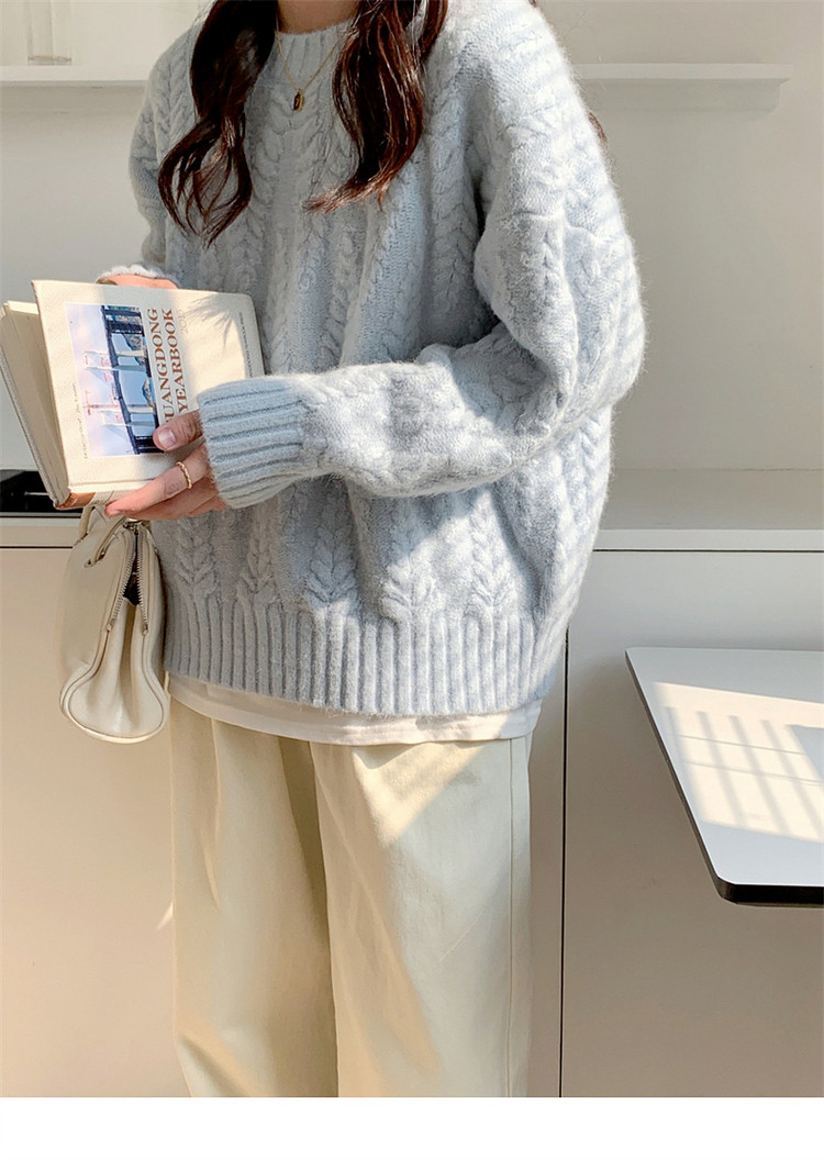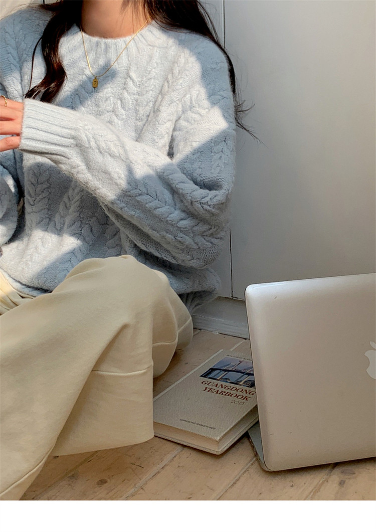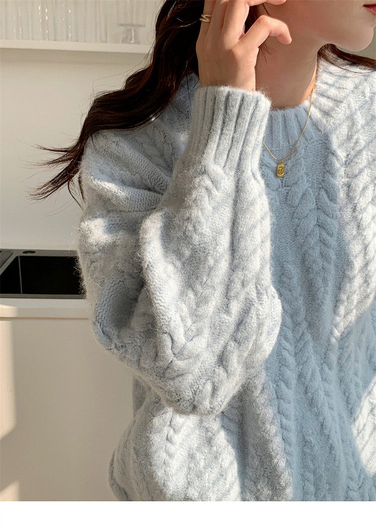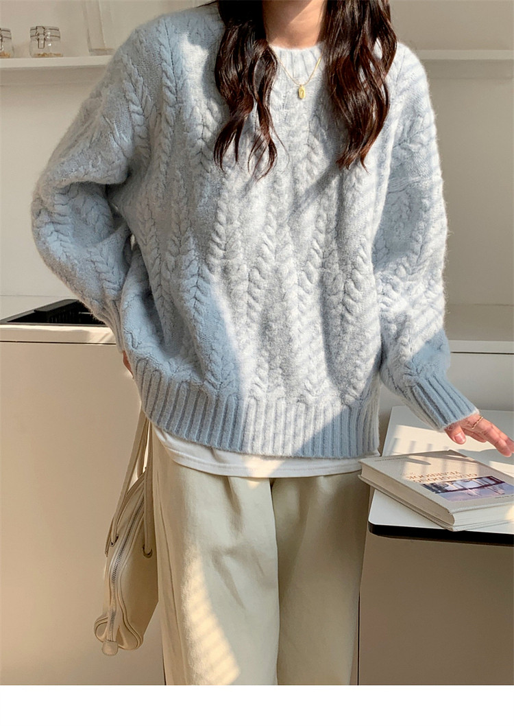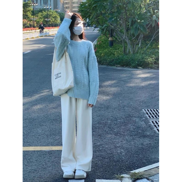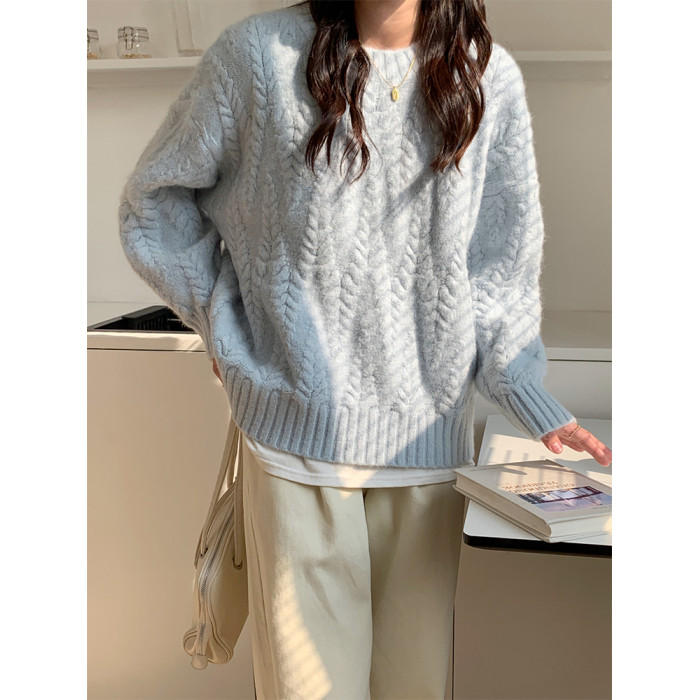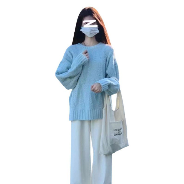 藍色套頭毛衣女秋冬季2026新款慵嬾高級感加厚內搭打底針織衫上衣
