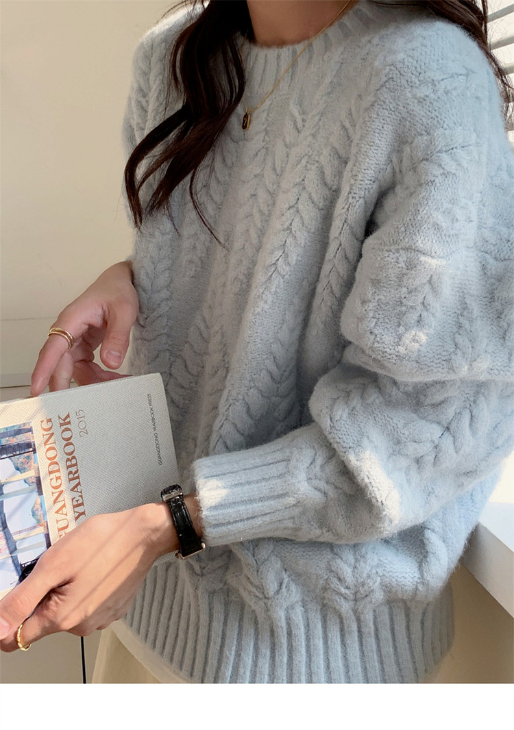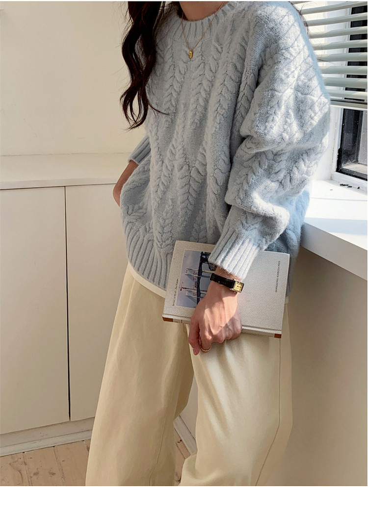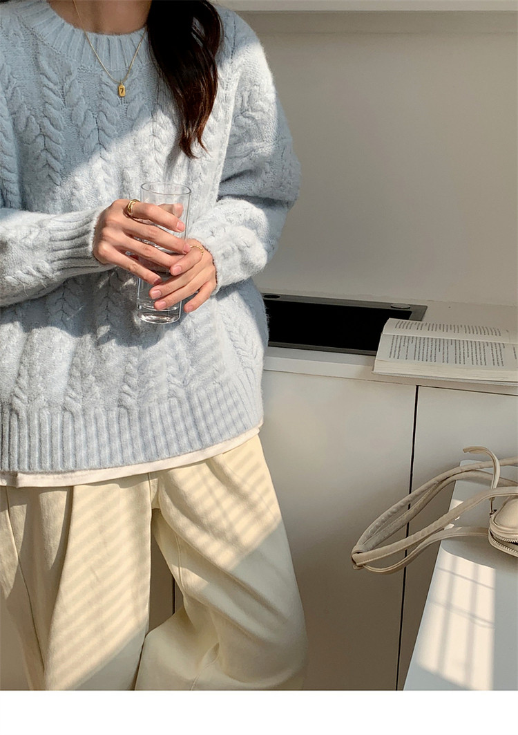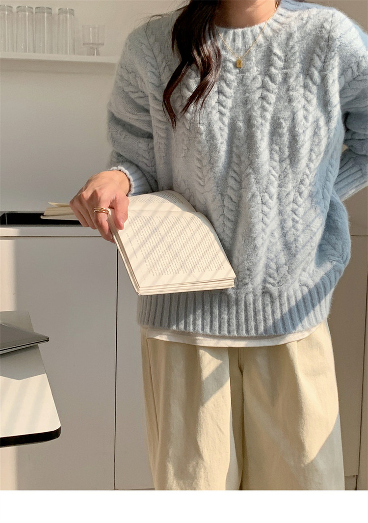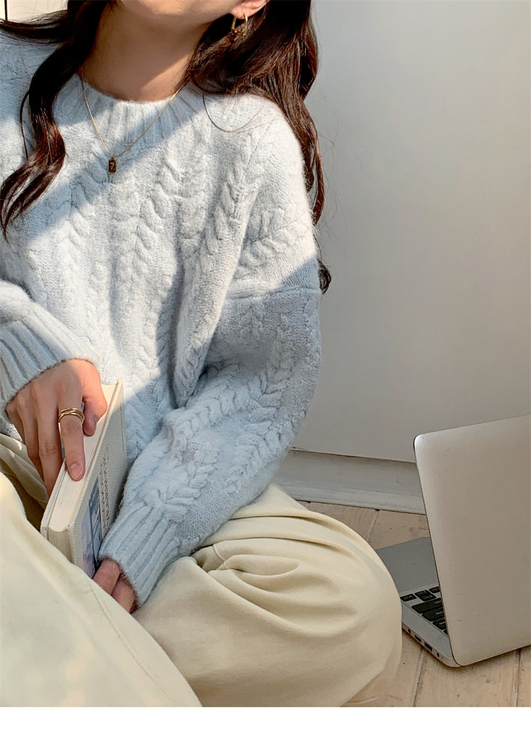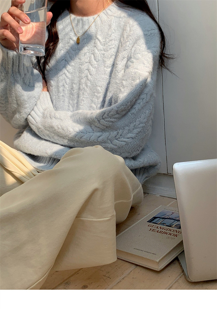藍色套頭毛衣女秋冬季2026新款慵嬾高級感加厚內搭打底針織衫上衣