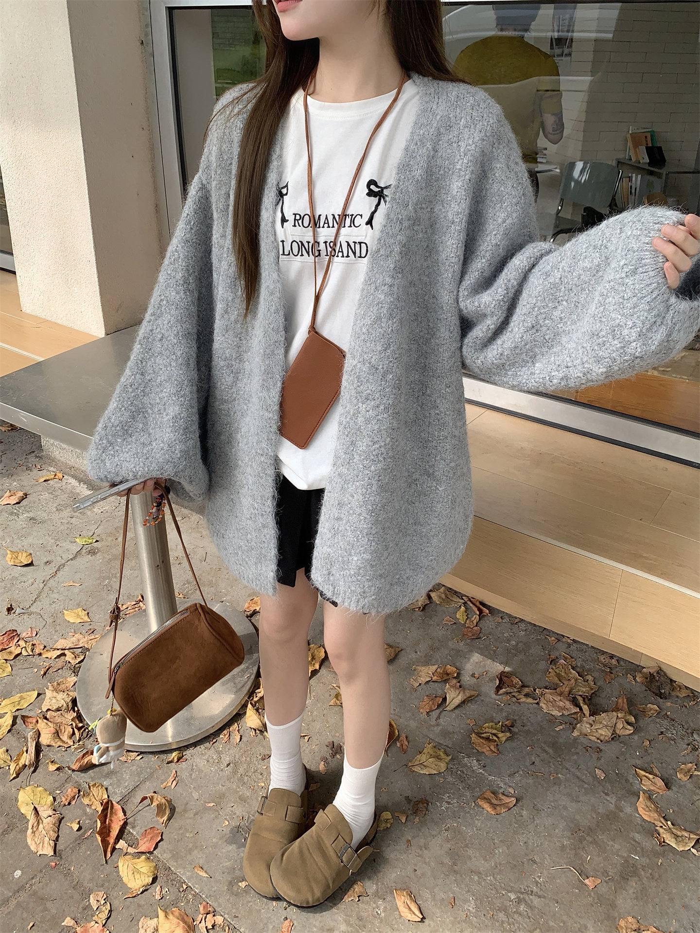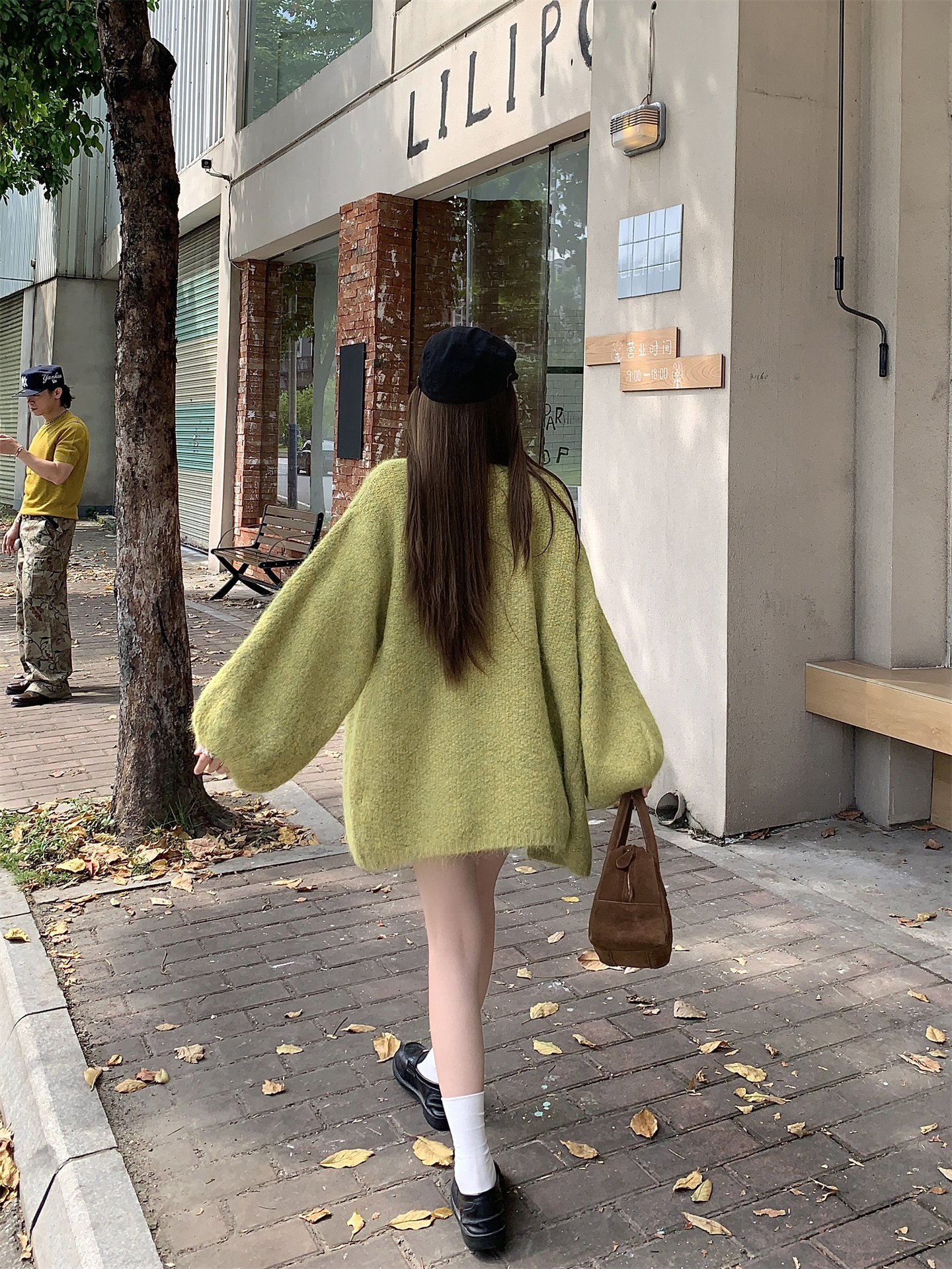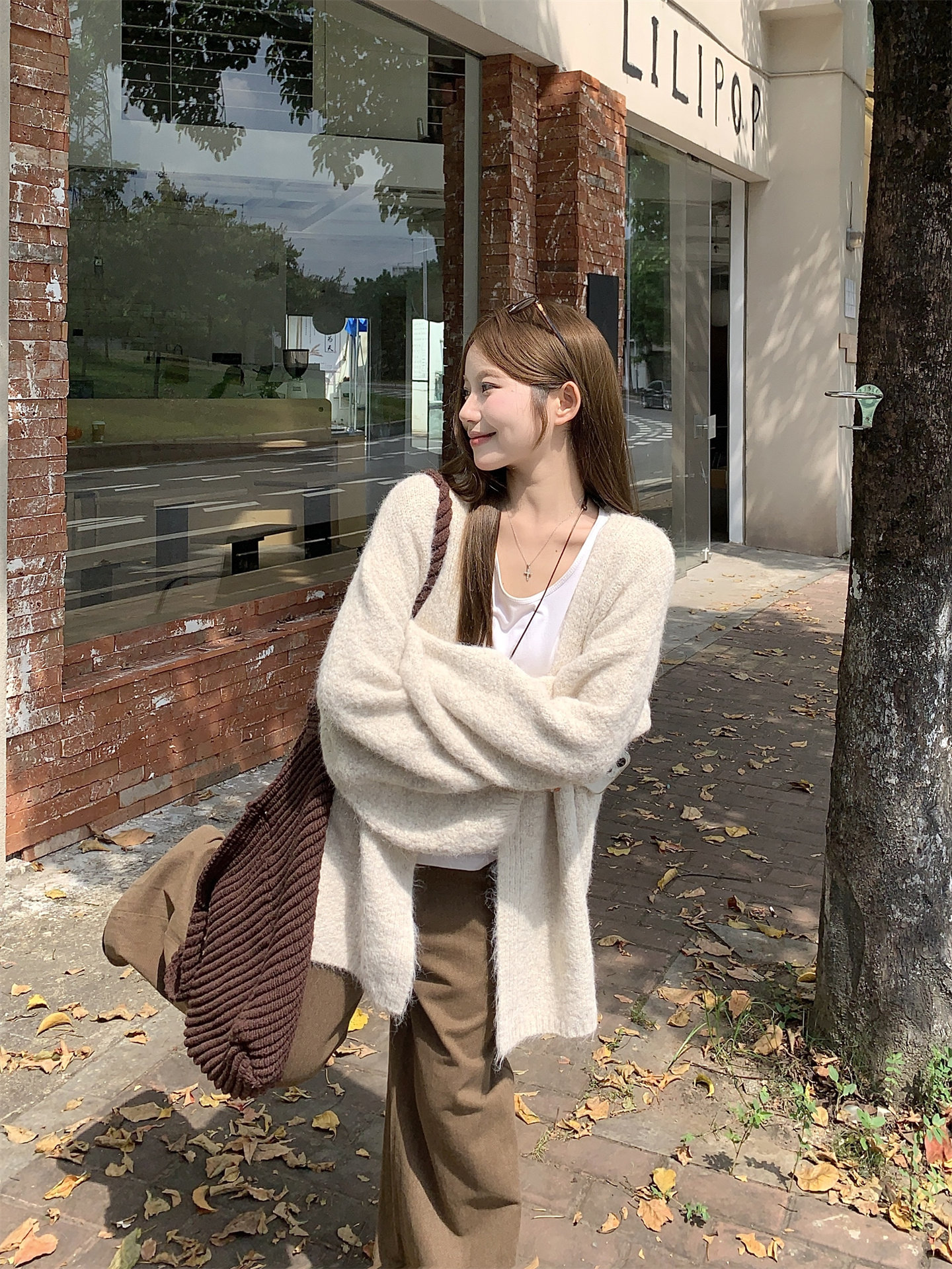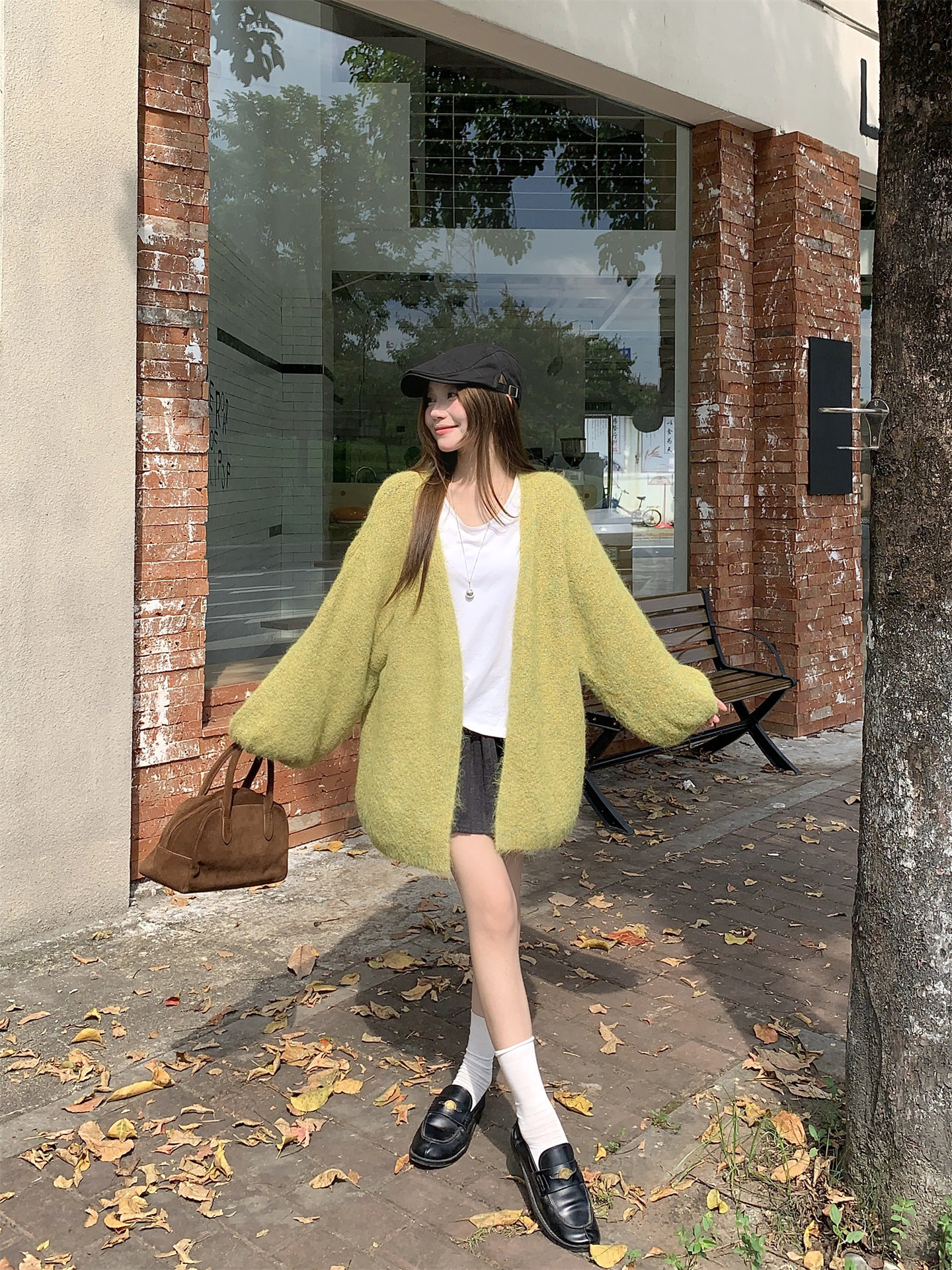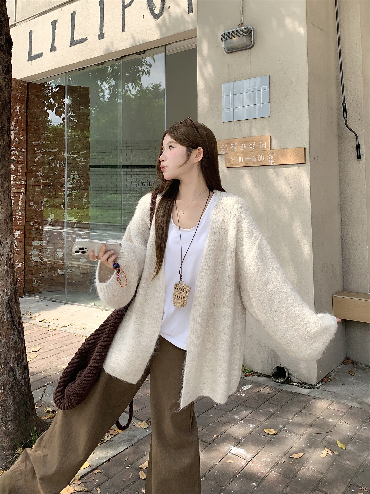PPHOME慵嬾風軟糯毛衣短外套女秋季加厚杏色休閒寬鬆針織開衫上衣