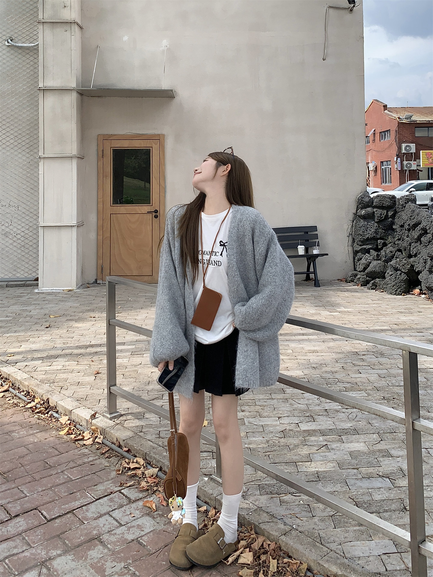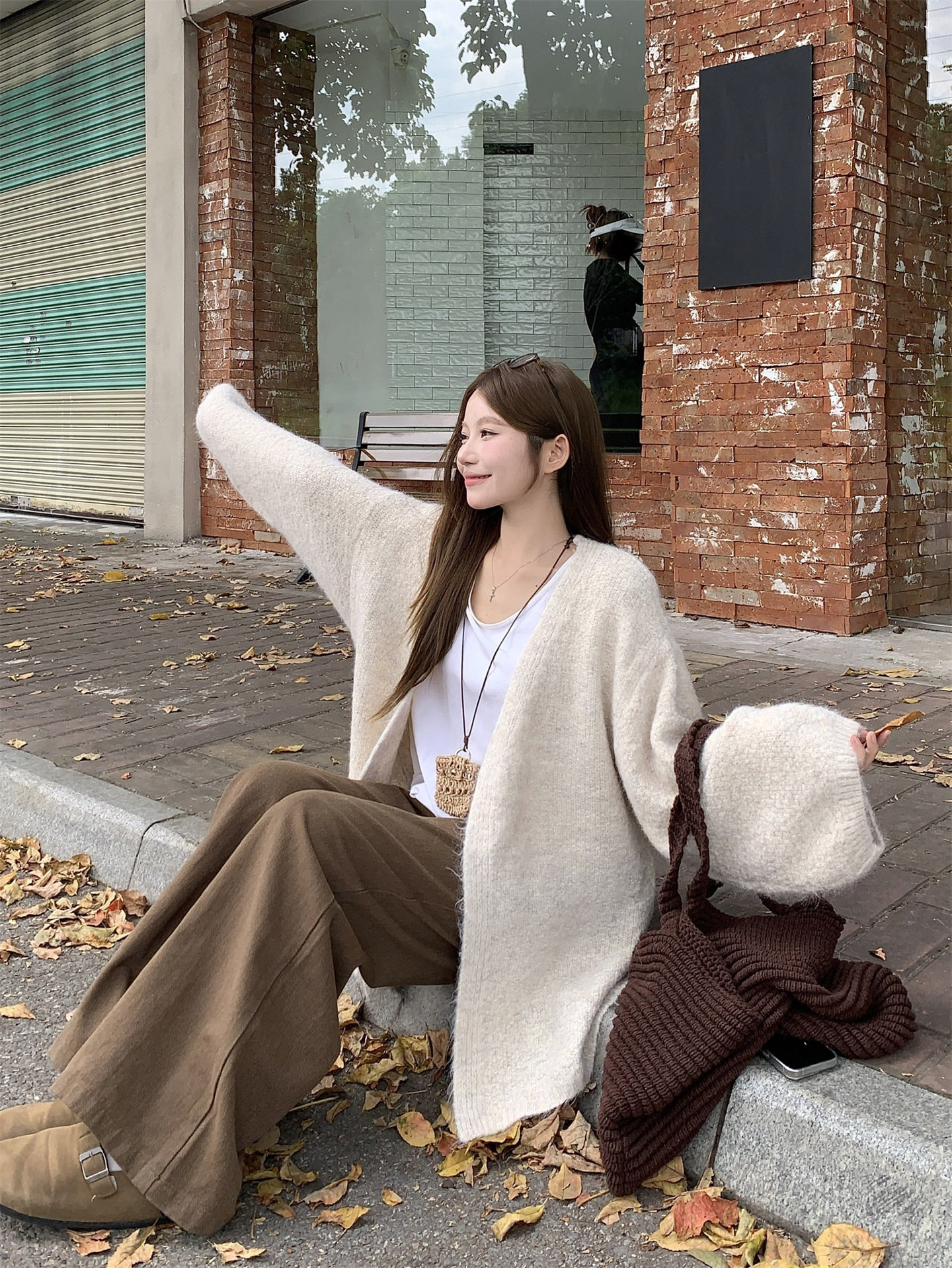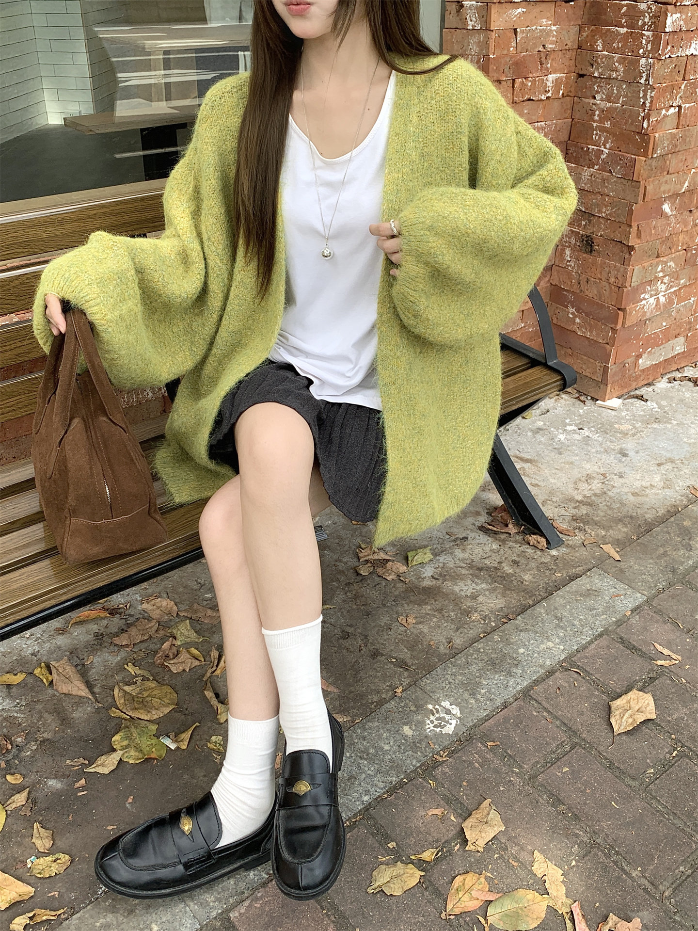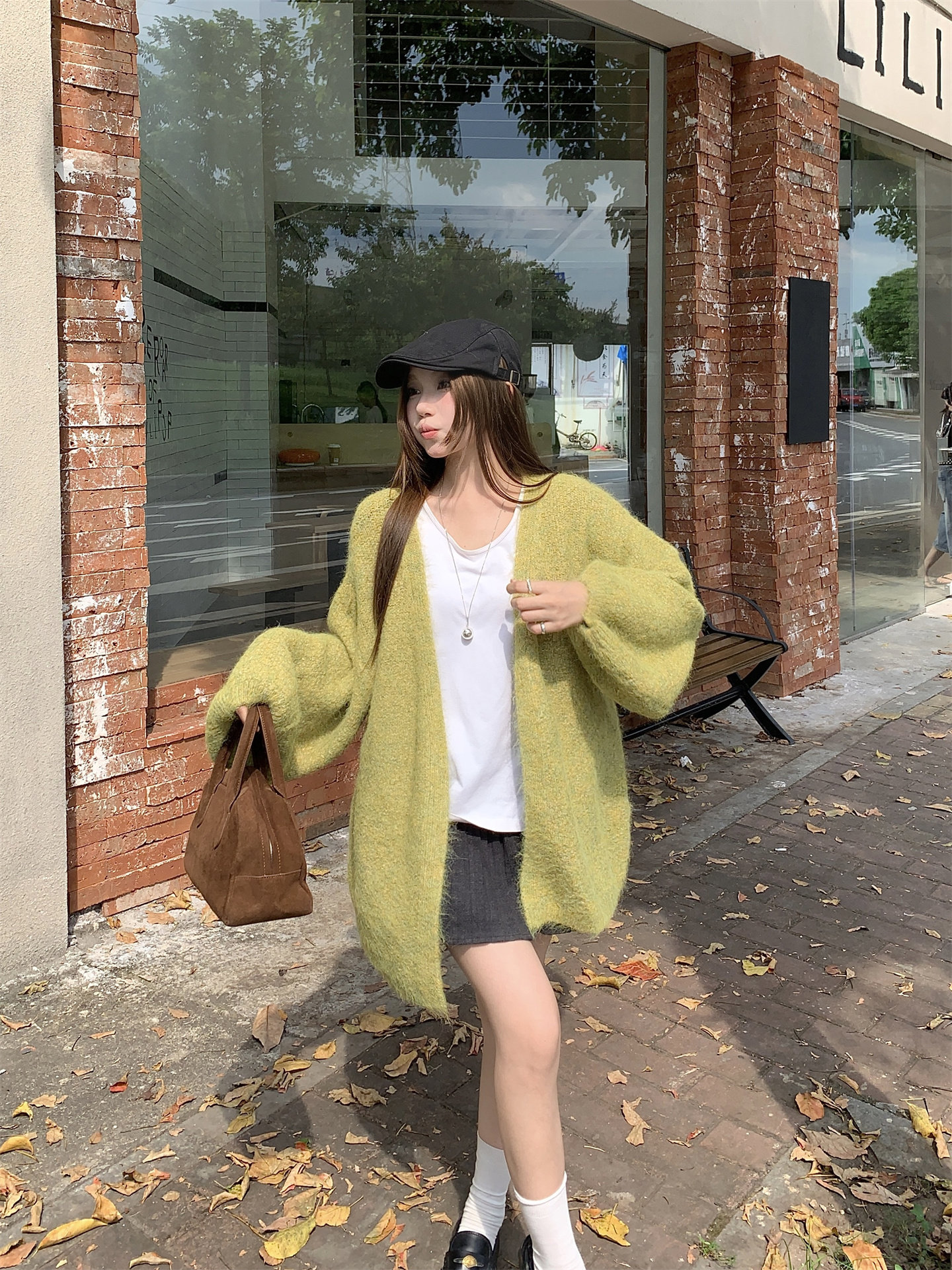 PPHOME慵嬾風軟糯毛衣短外套女秋季加厚杏色休閒寬鬆針織開衫上衣