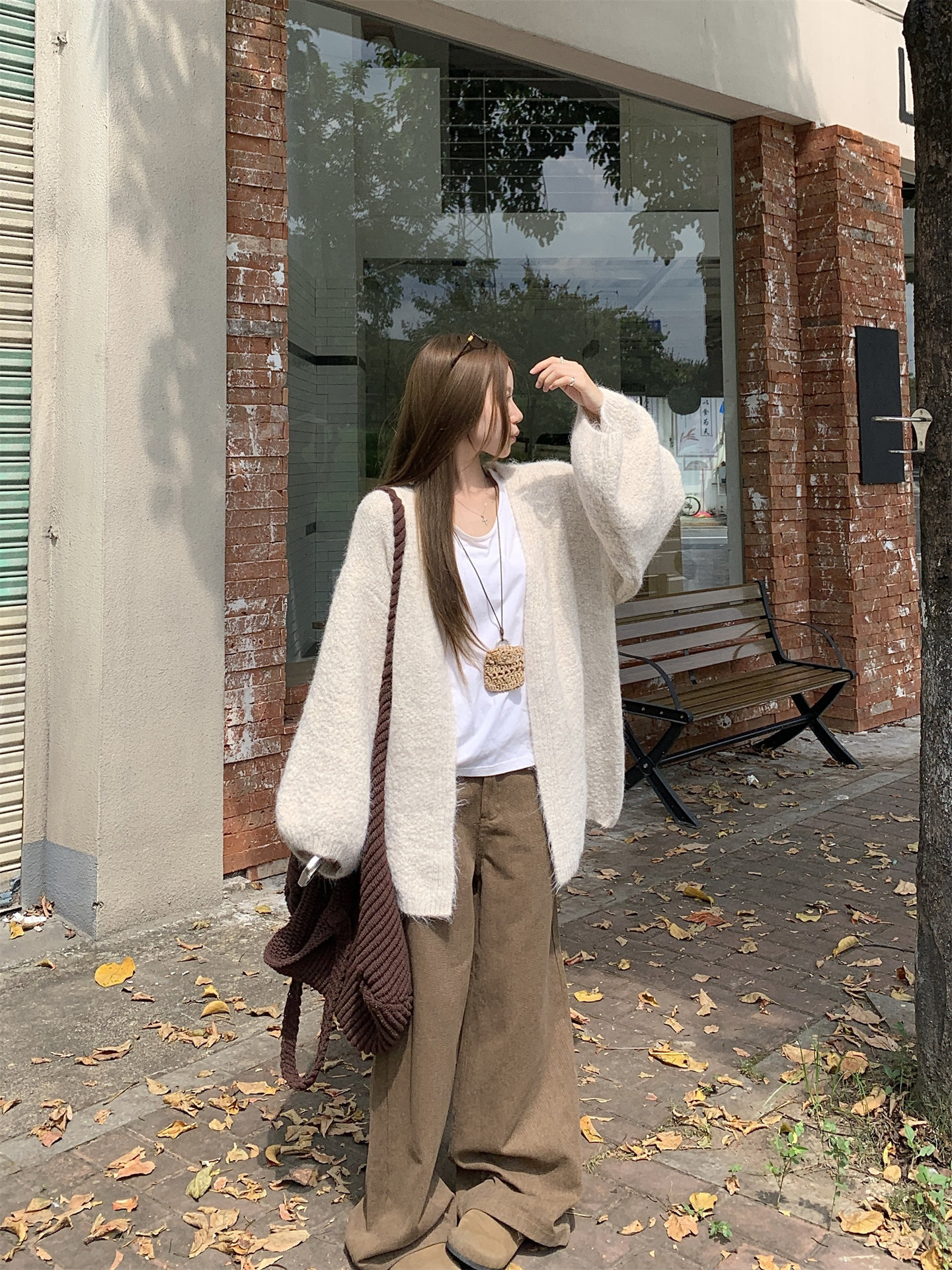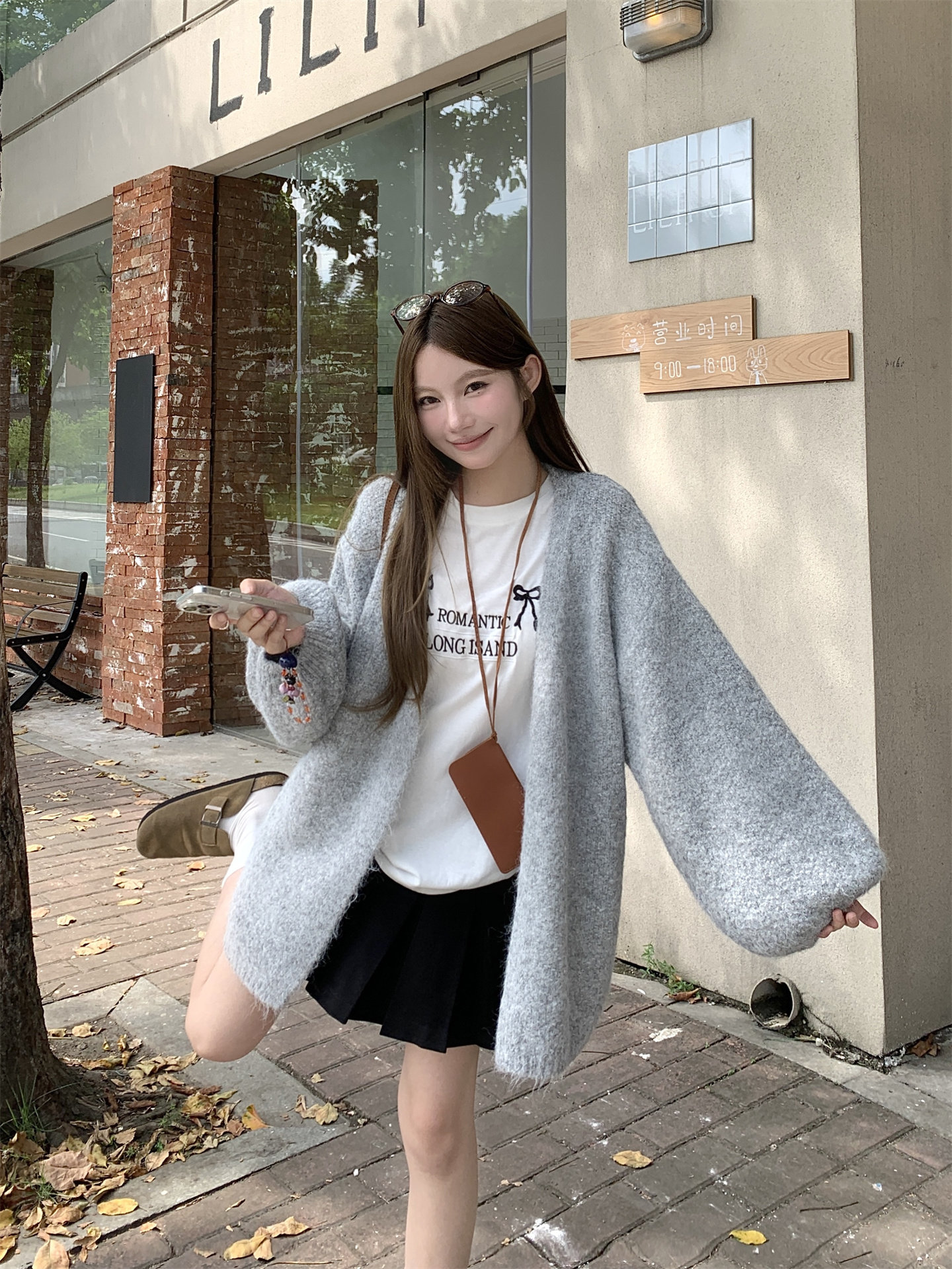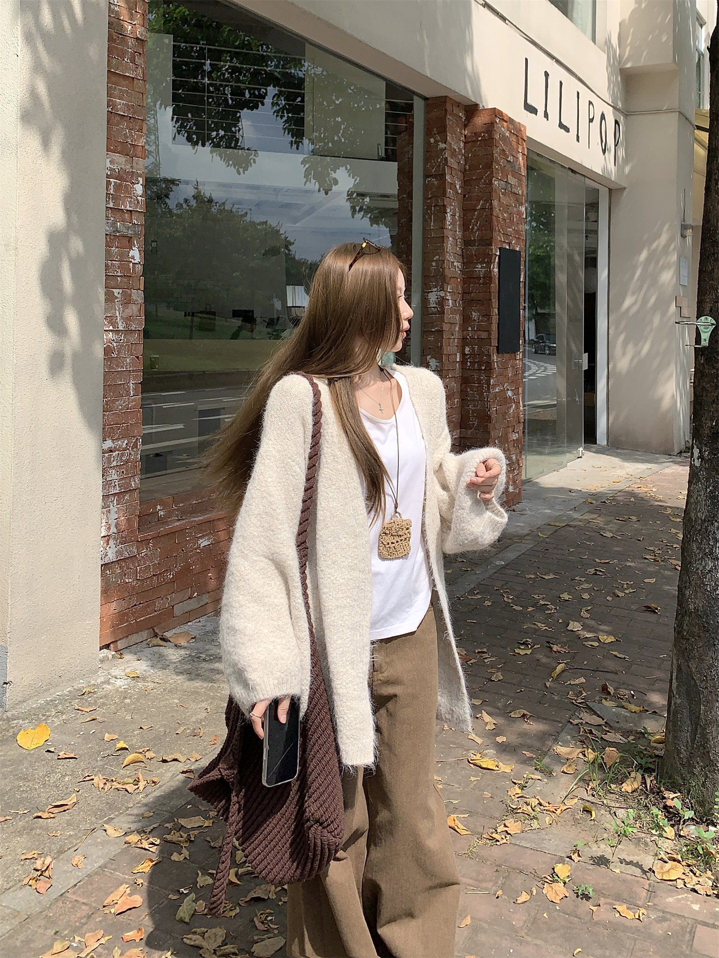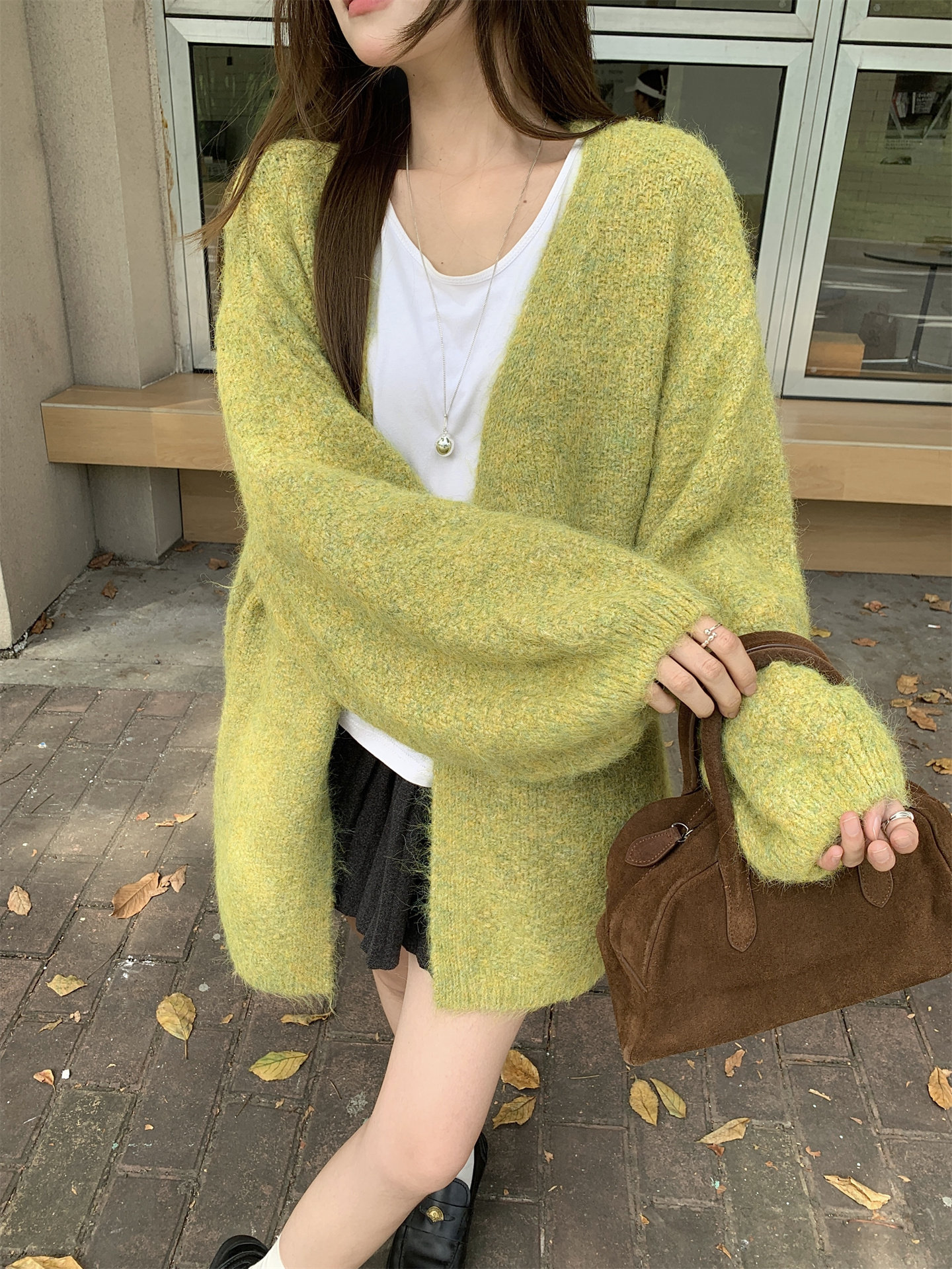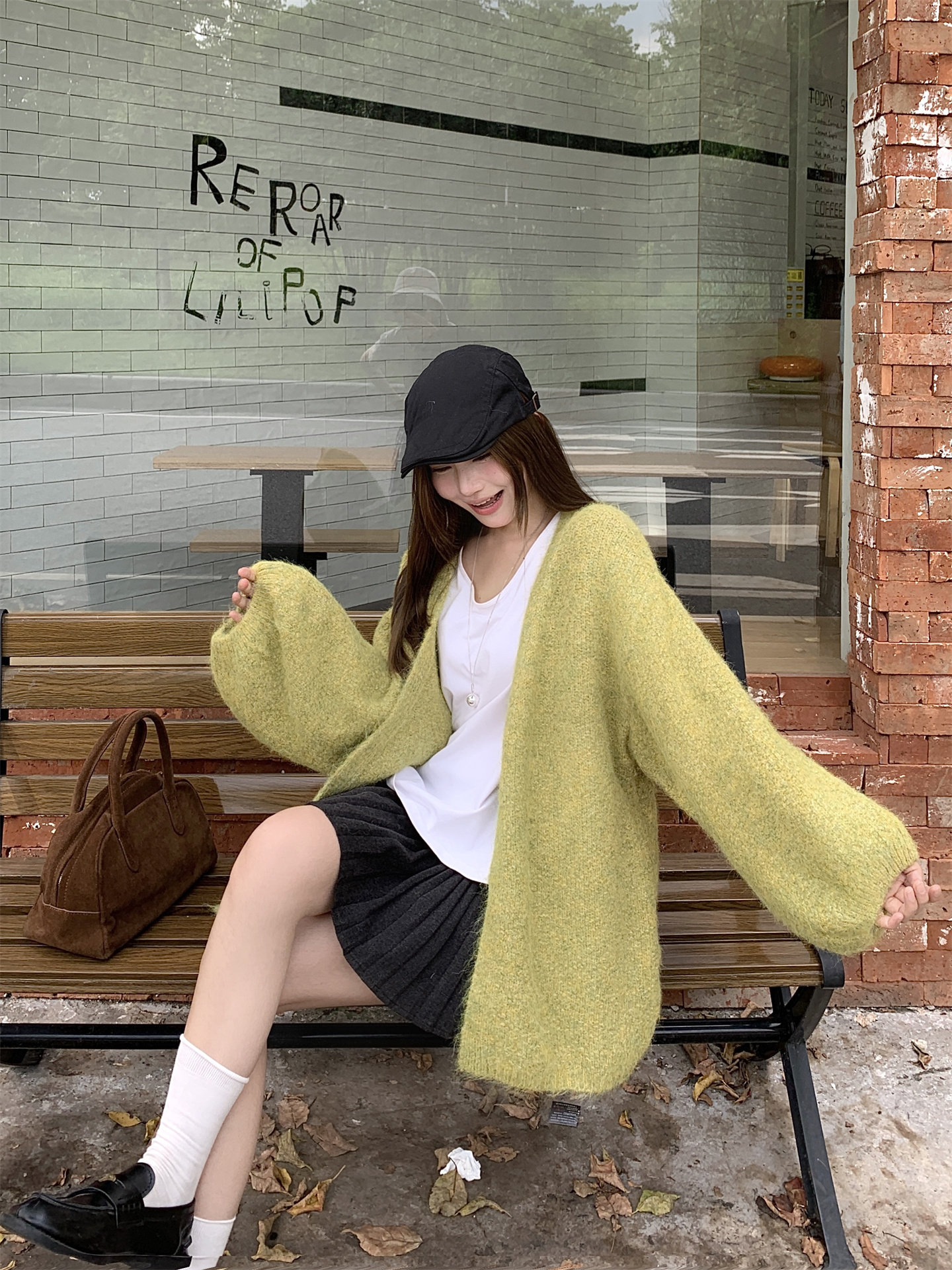 PPHOME慵嬾風軟糯毛衣短外套女秋季加厚杏色休閒寬鬆針織開衫上衣