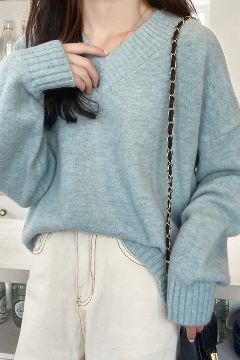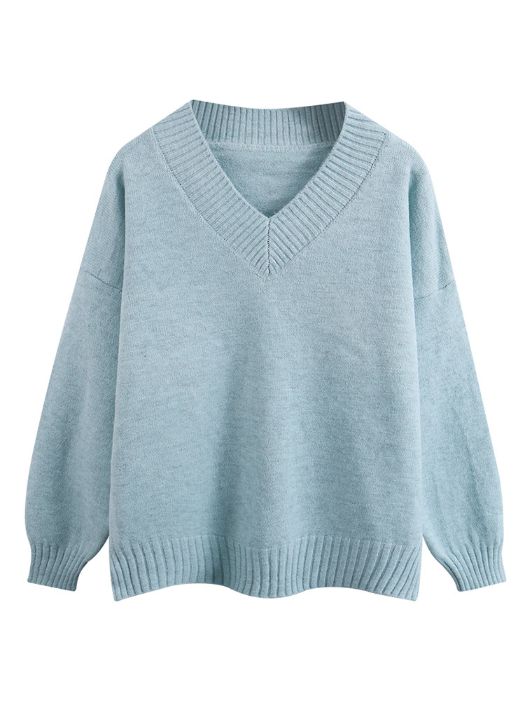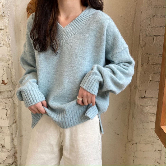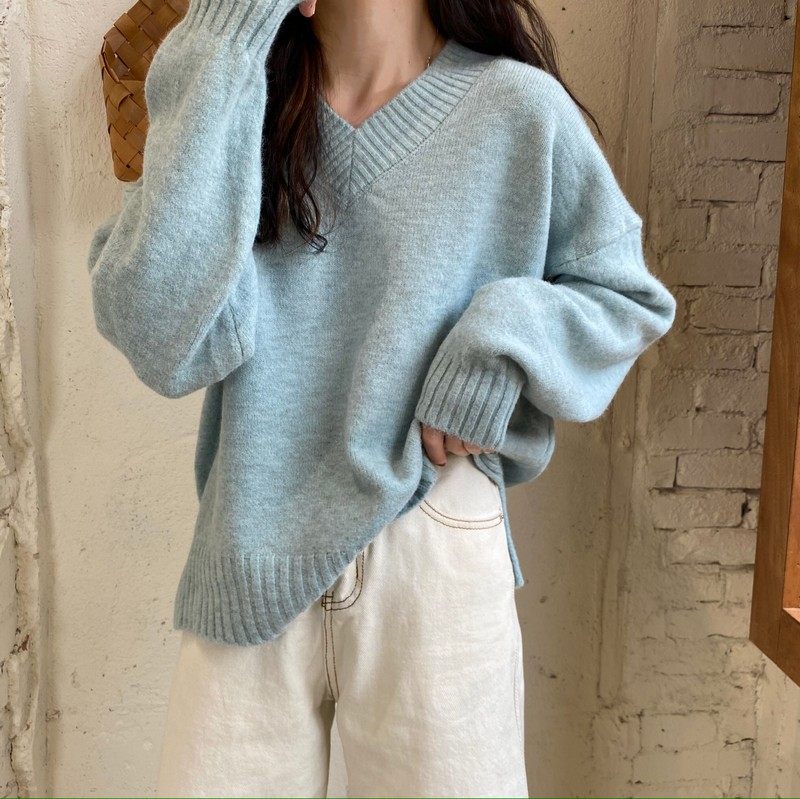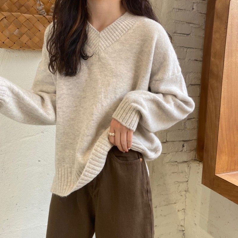 溫柔風軟糯v領毛衣女秋冬新款大碼胖妹妹復古寬鬆顯瘦針織衫上衣