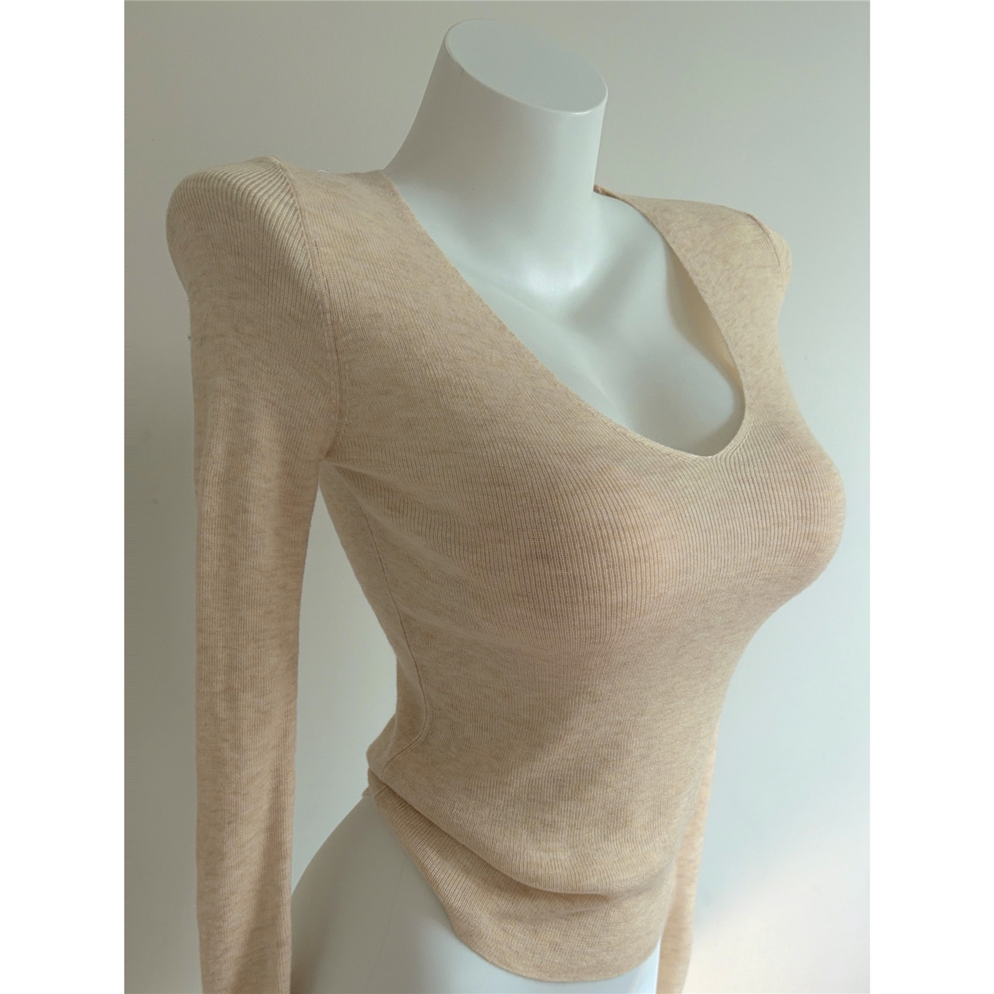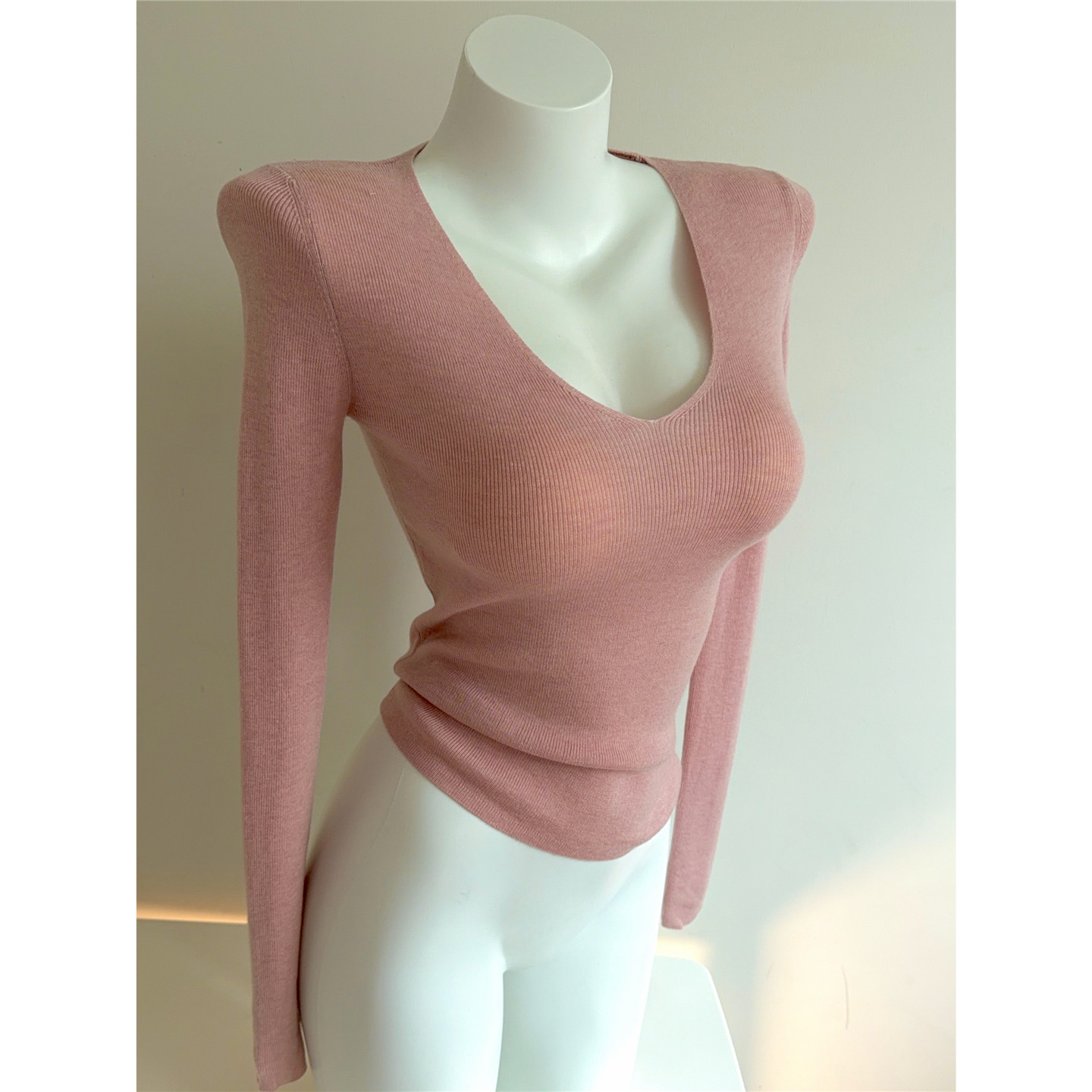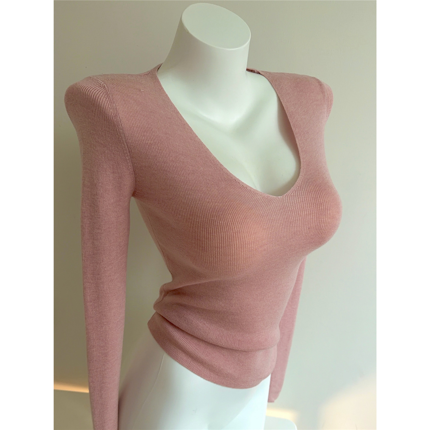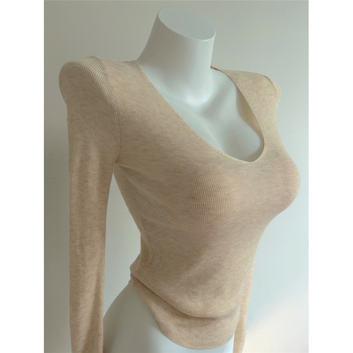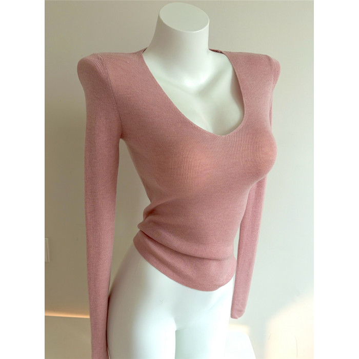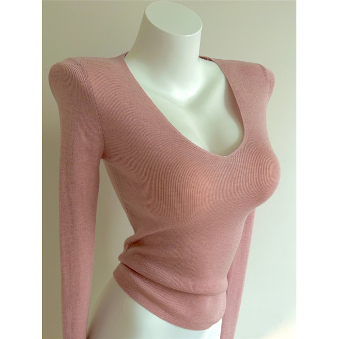 Bi入剛需款!含羊毛V領針織打底衫 女 修身顯瘦純色秋冬長袖上衣