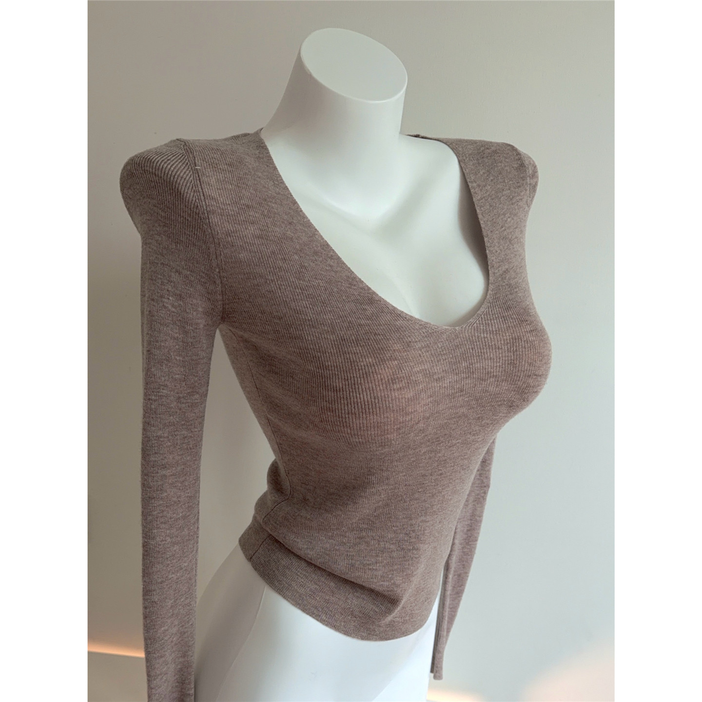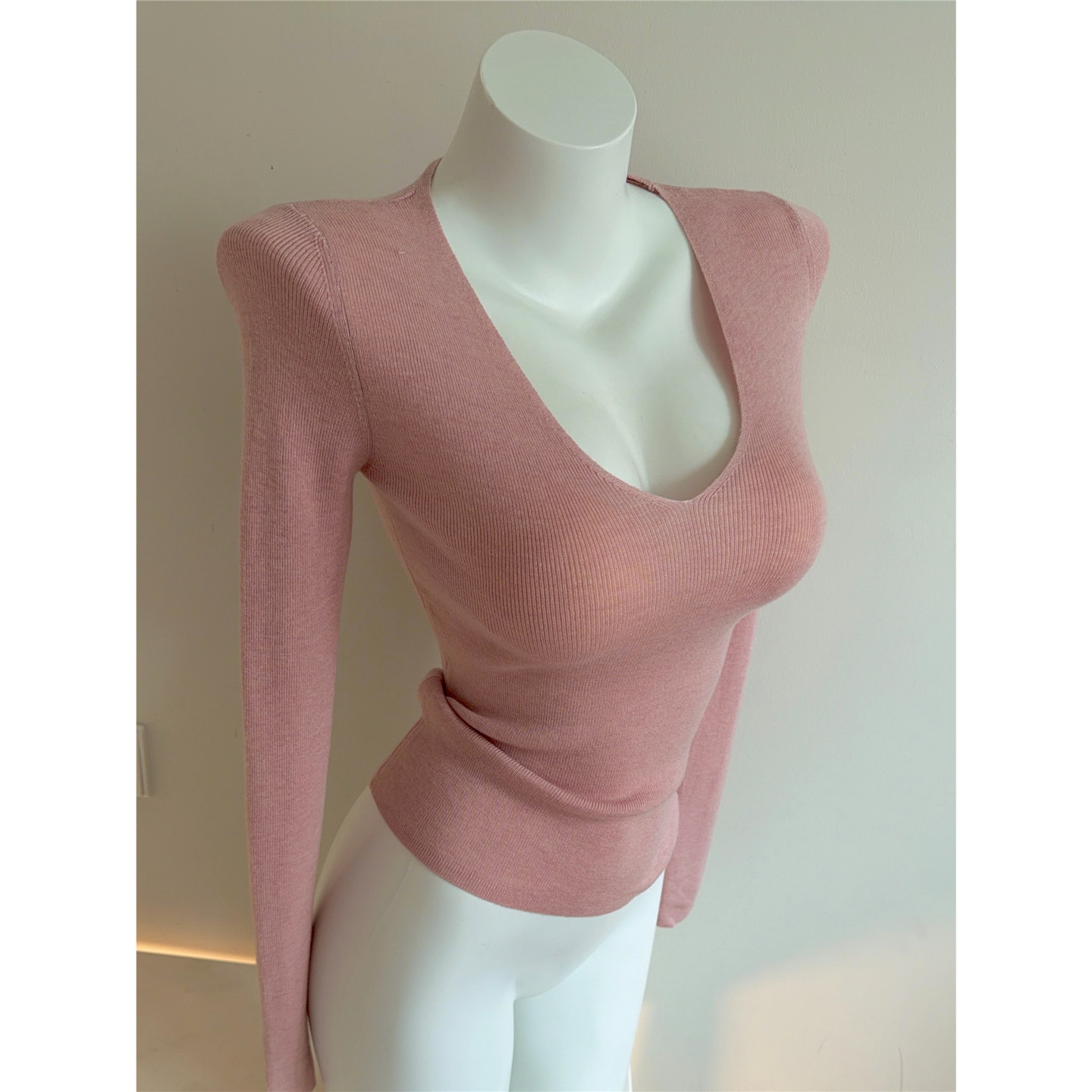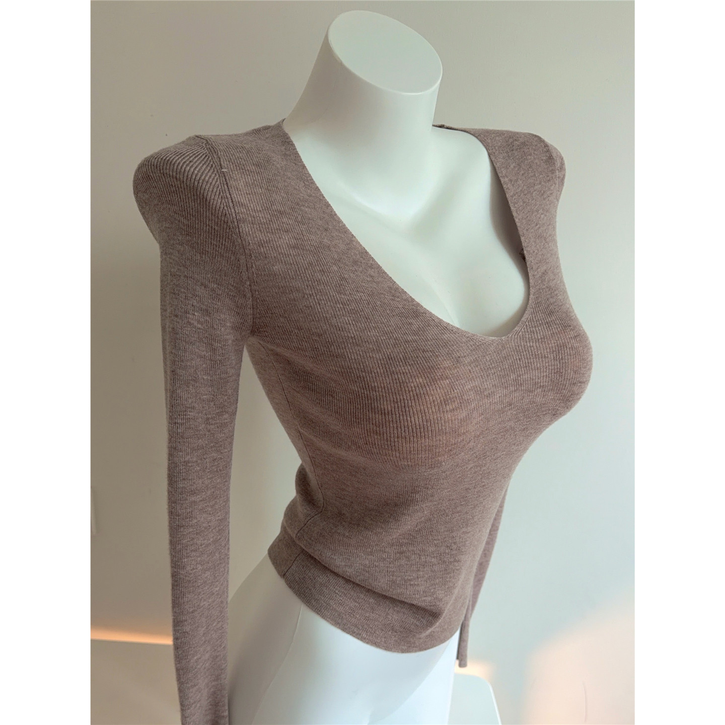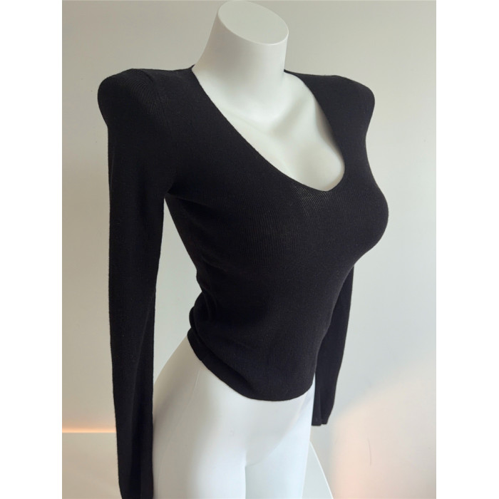 Bi入剛需款!含羊毛V領針織打底衫 女 修身顯瘦純色秋冬長袖上衣