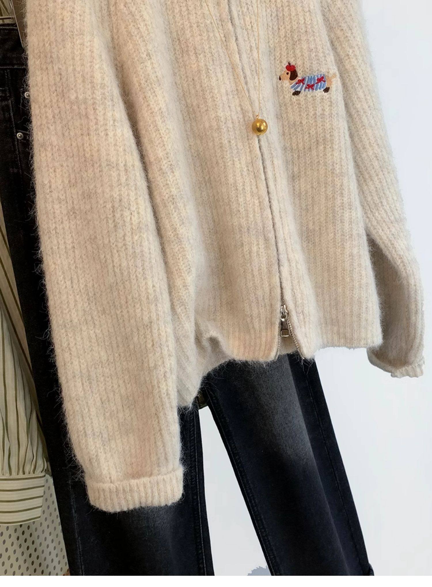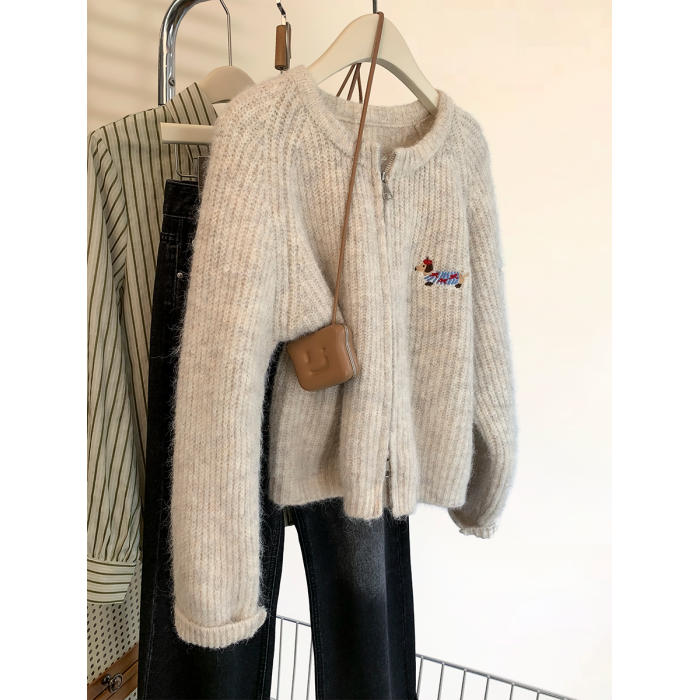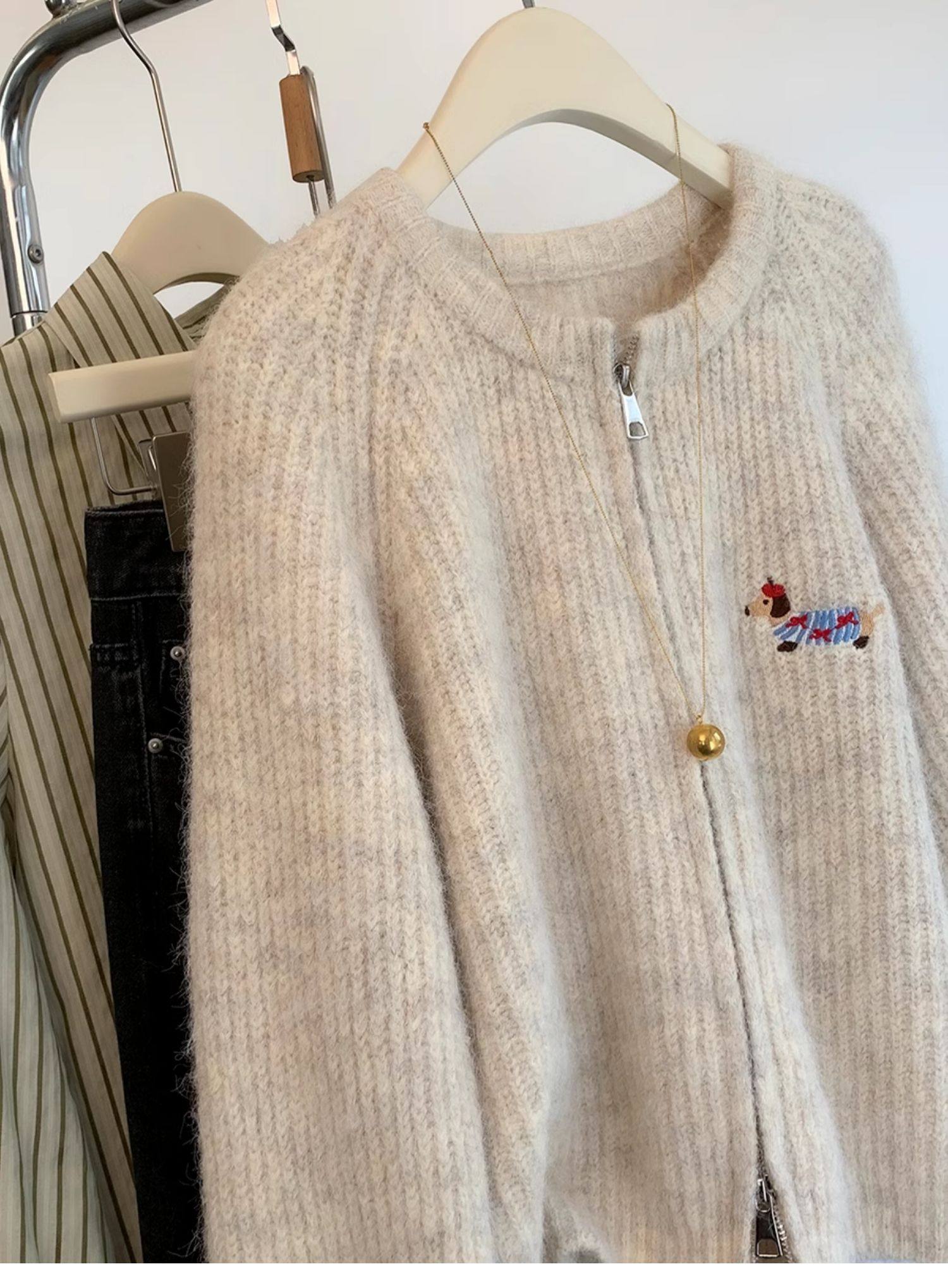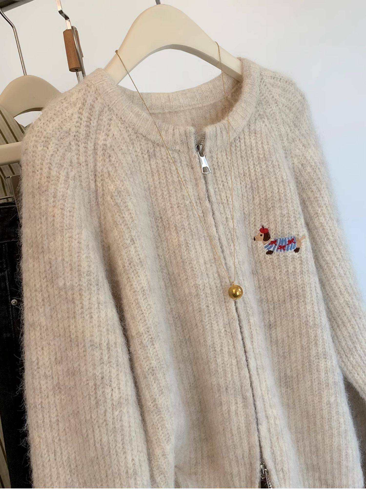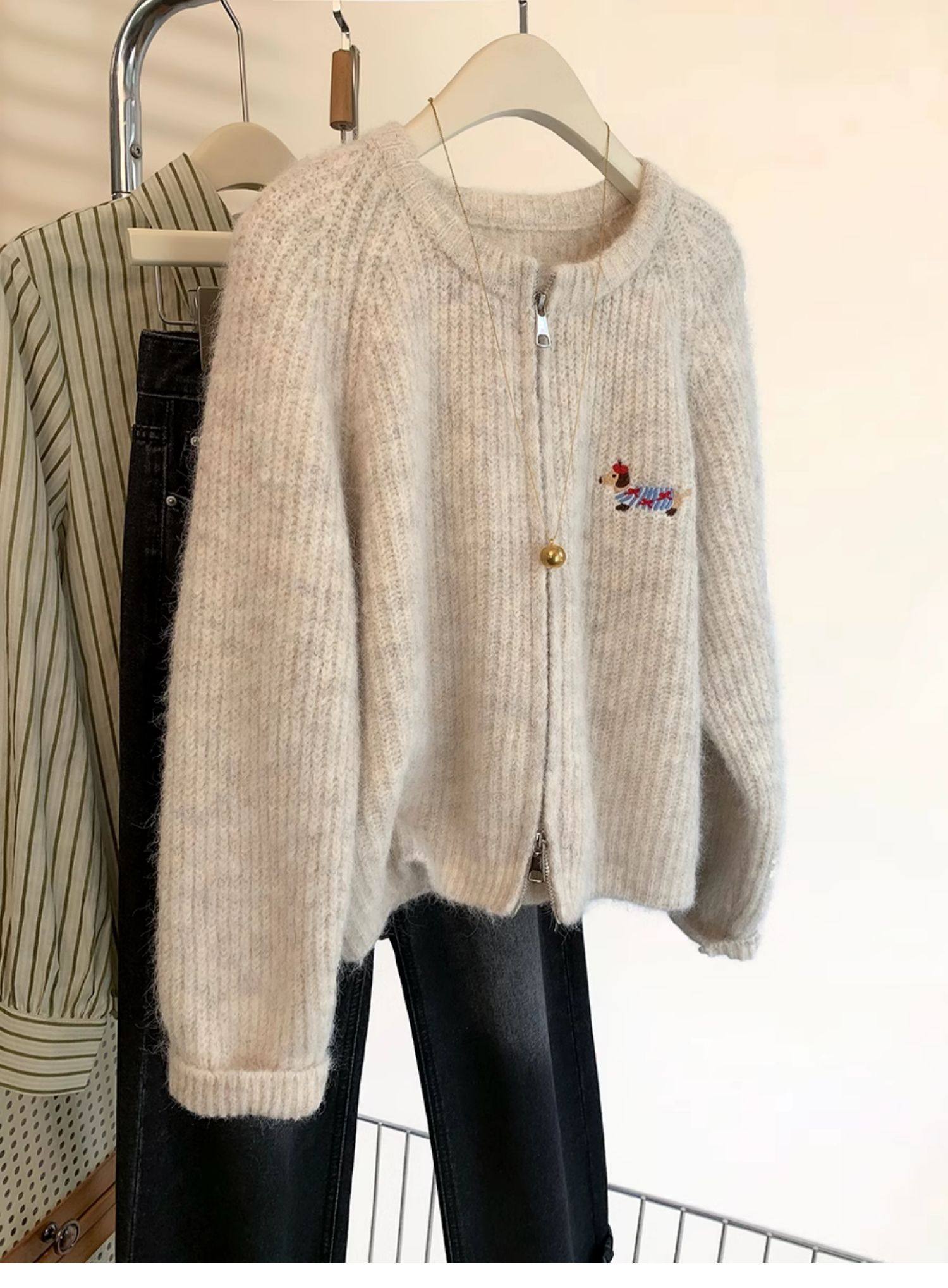 小狗拉鍊圓領毛衣外套女秋冬2025新款慵懶風軟糯短款羊毛針織開衫