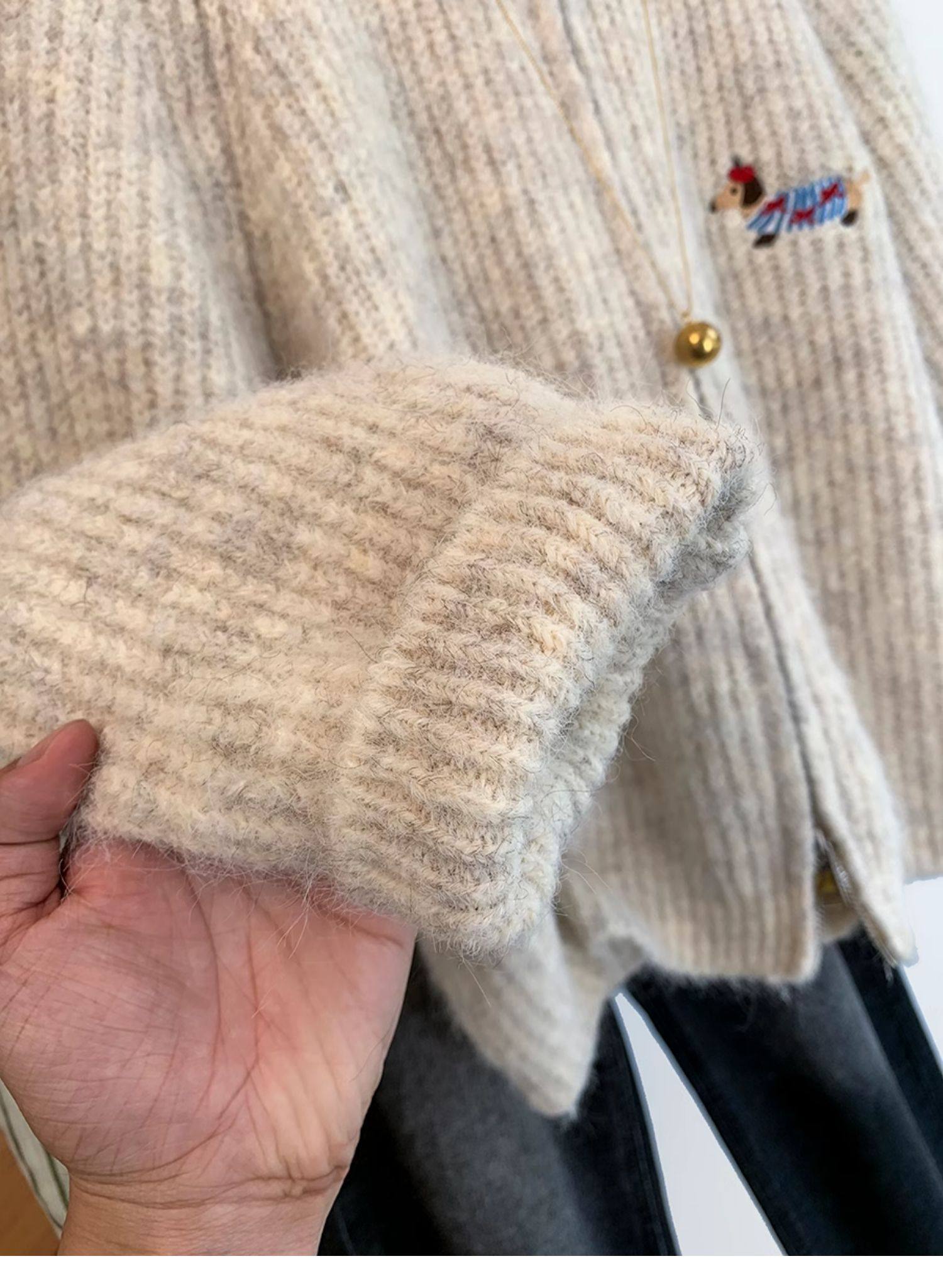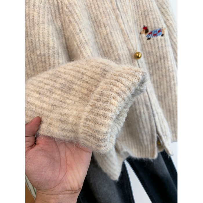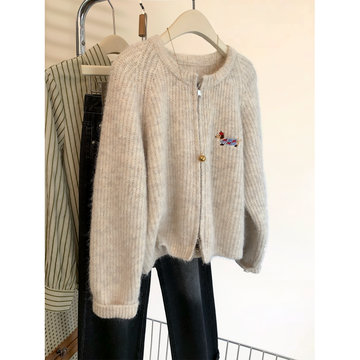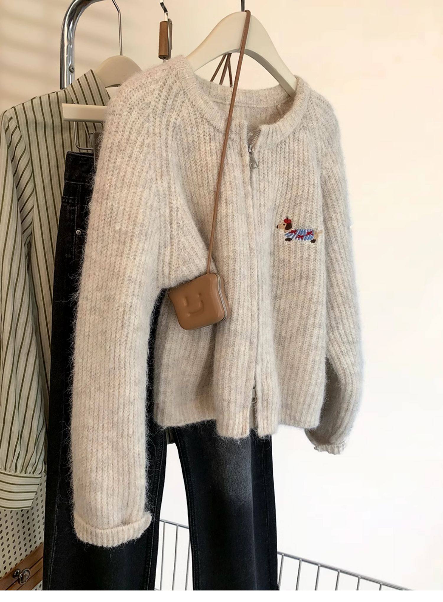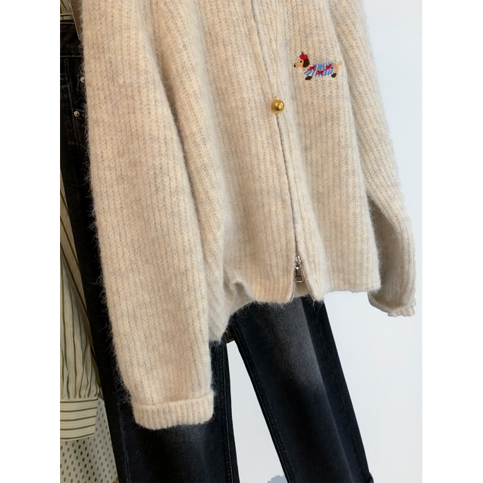 小狗拉鍊圓領毛衣外套女秋冬2025新款慵懶風軟糯短款羊毛針織開衫