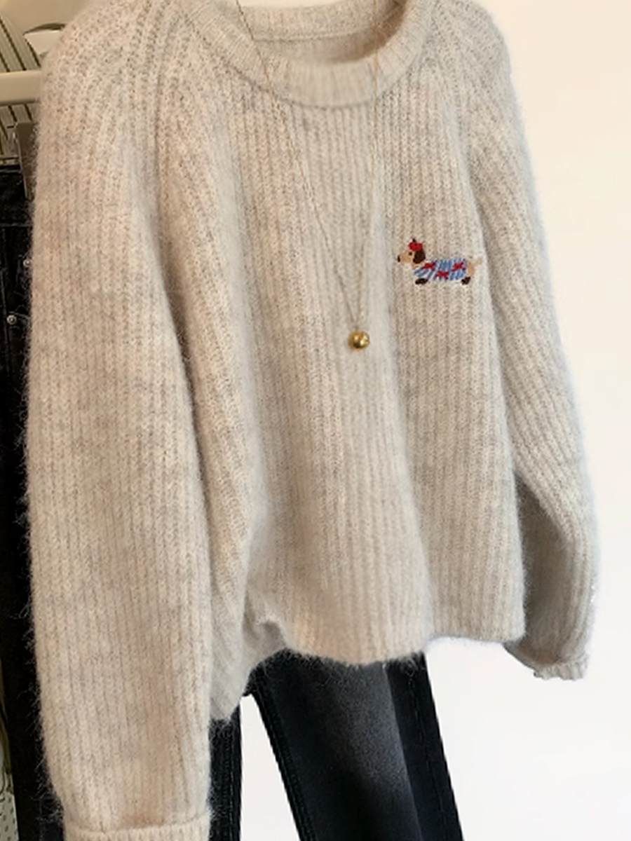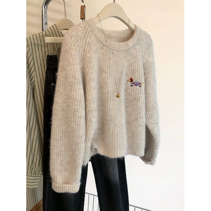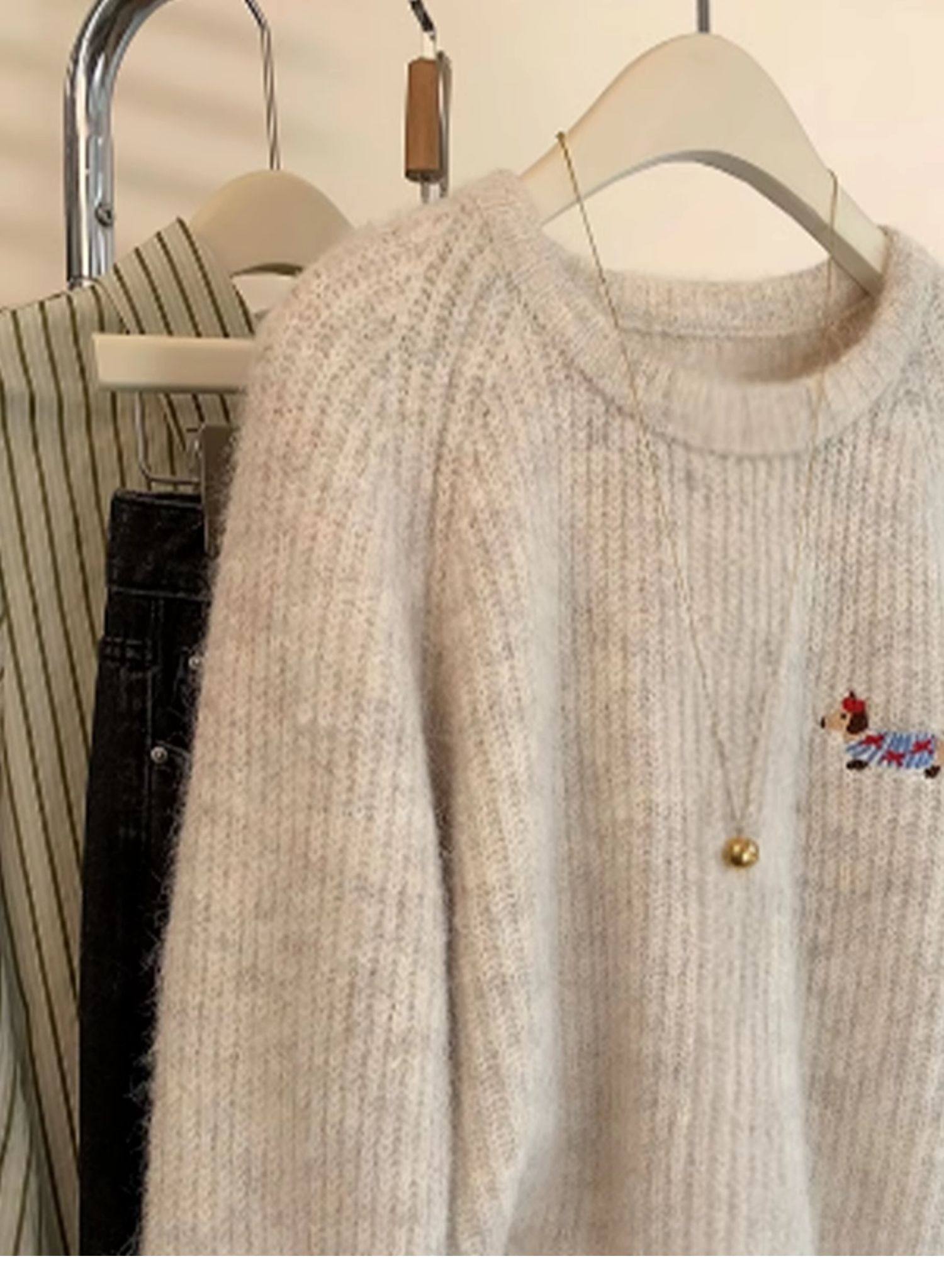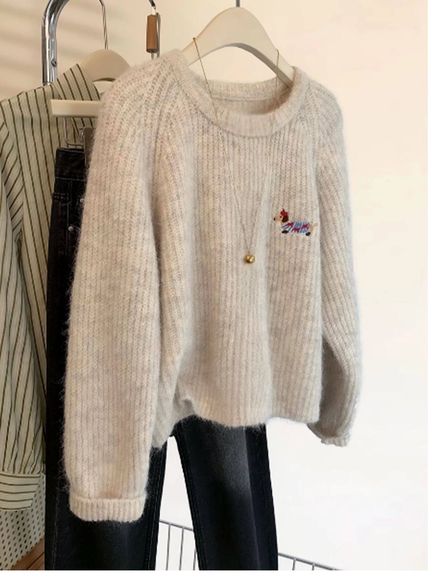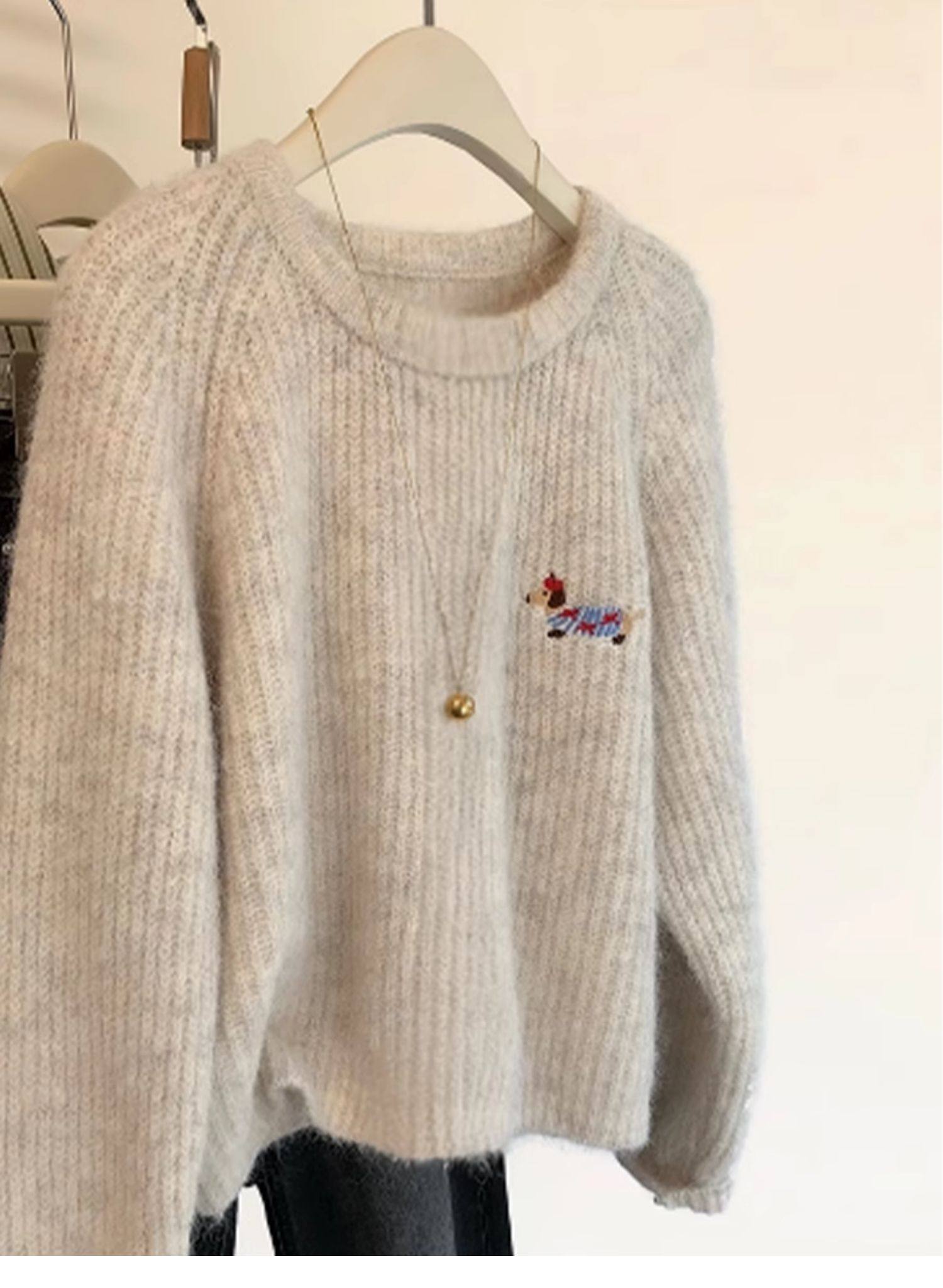 小狗拉鍊圓領毛衣外套女秋冬2025新款慵懶風軟糯短款羊毛針織開衫