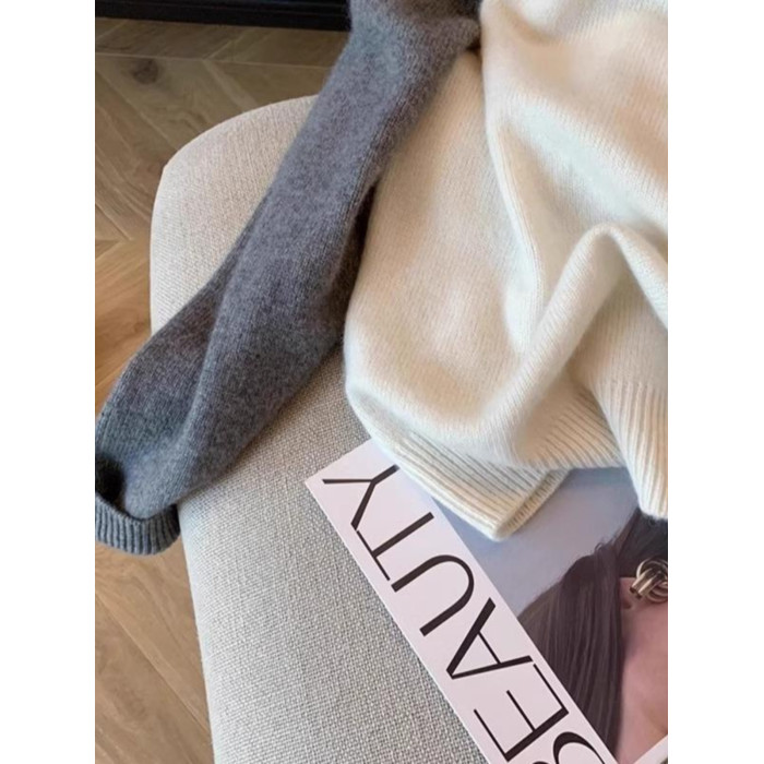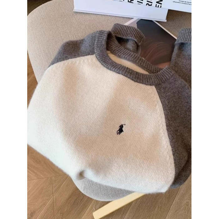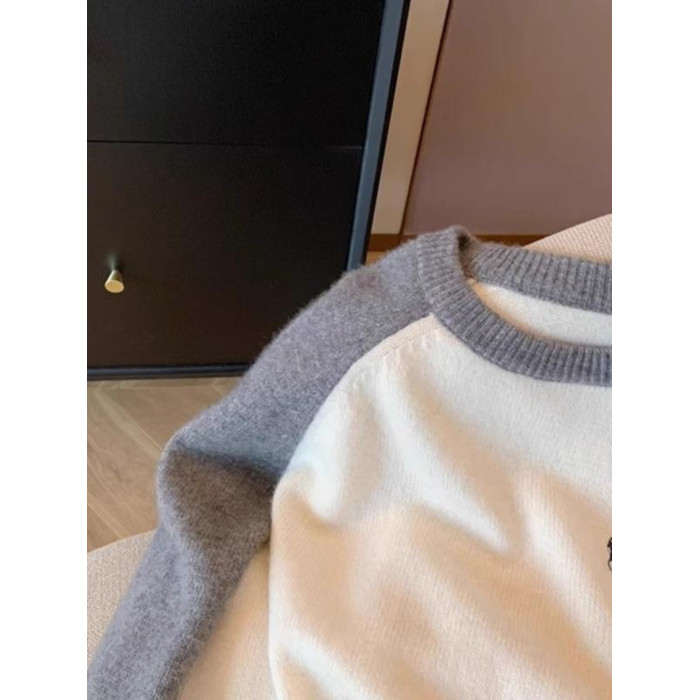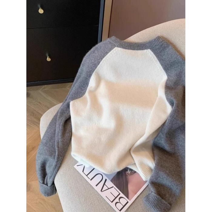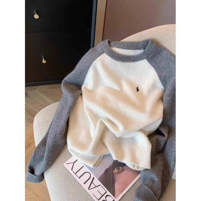 軟糯慵懶撞色刺綉毛衣女秋冬加厚韓系插肩袖顯瘦打底針織衫上衣潮