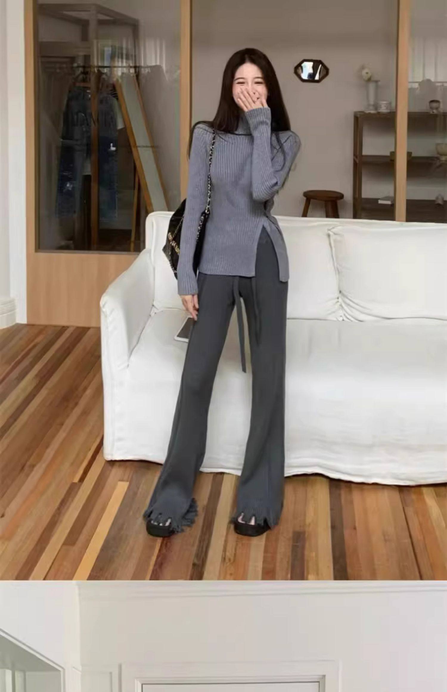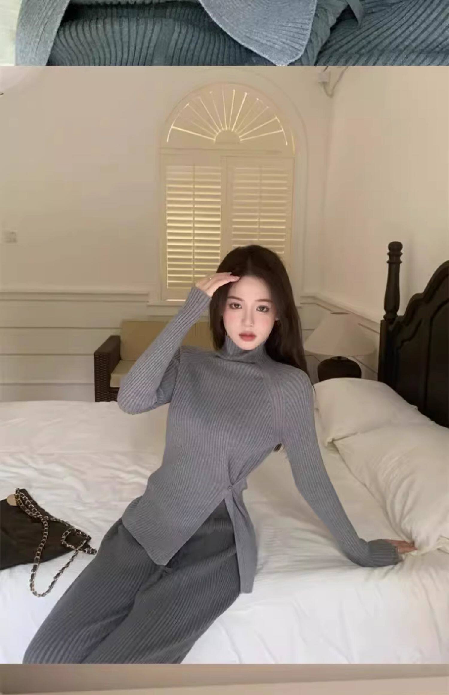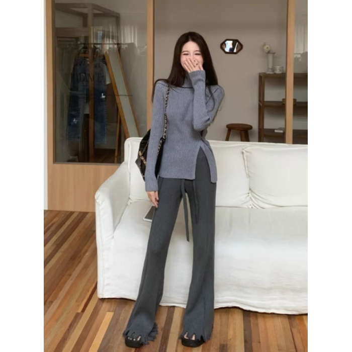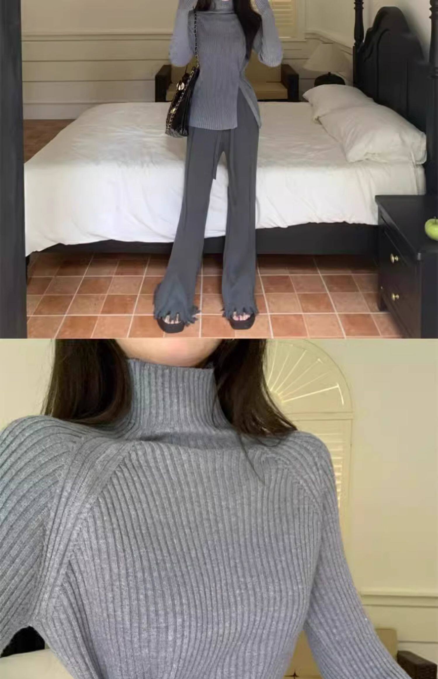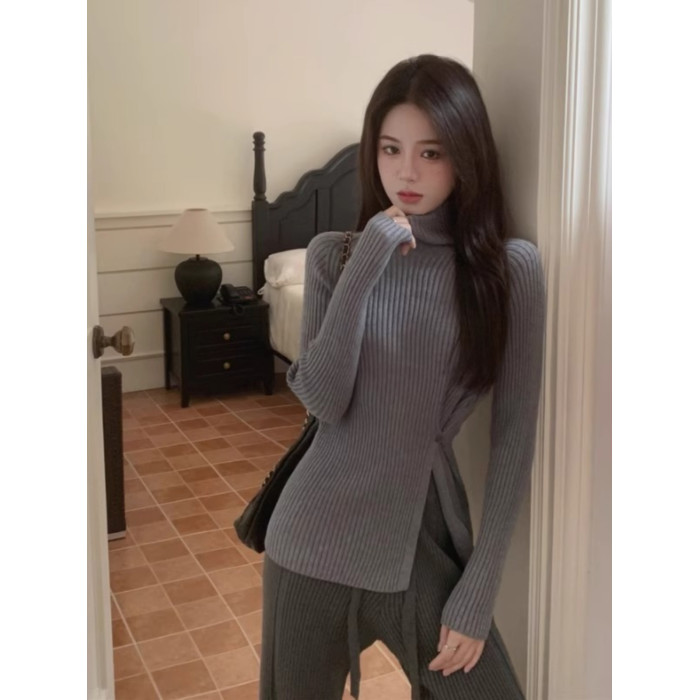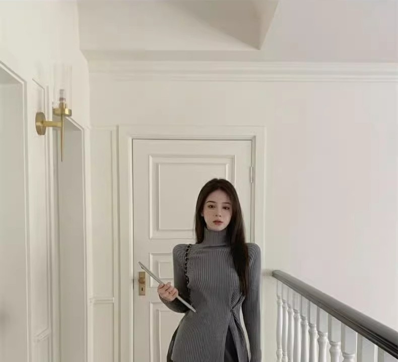 辣妹半高領長袖針織衫女秋冬設計感小衆開叉不規則打底衫內搭洋氣