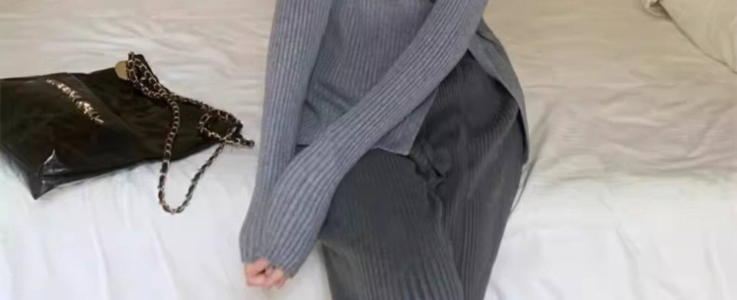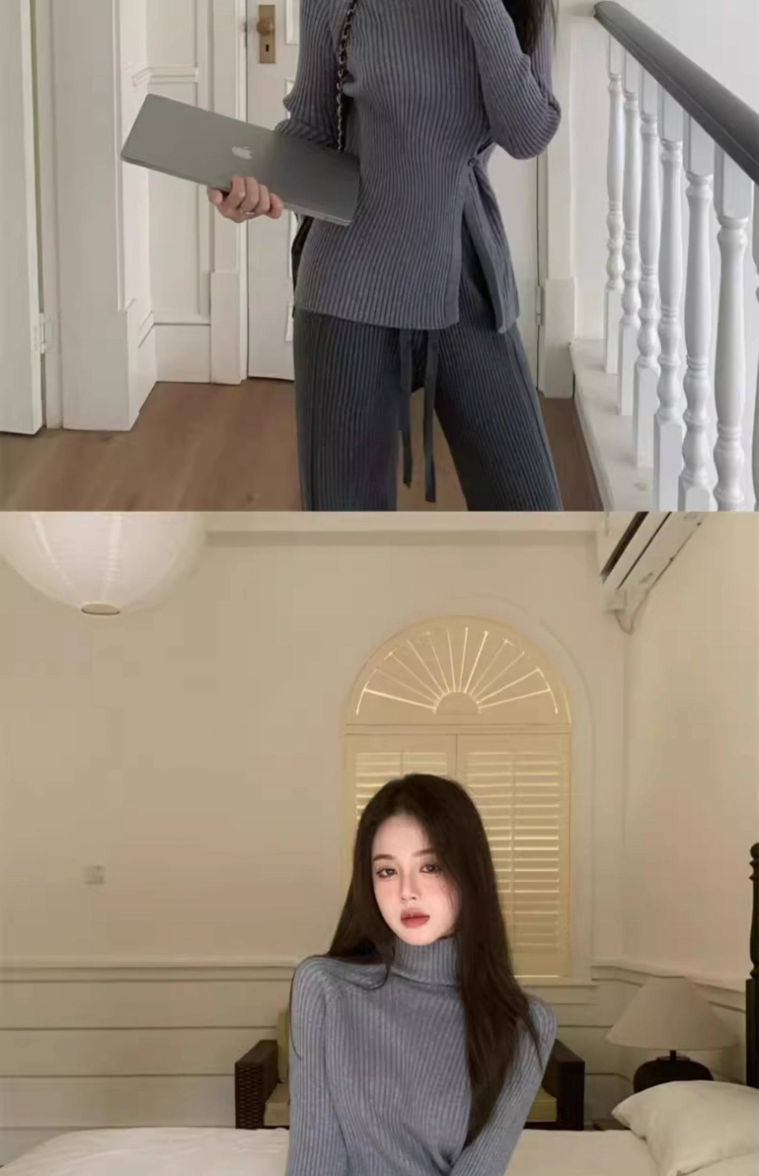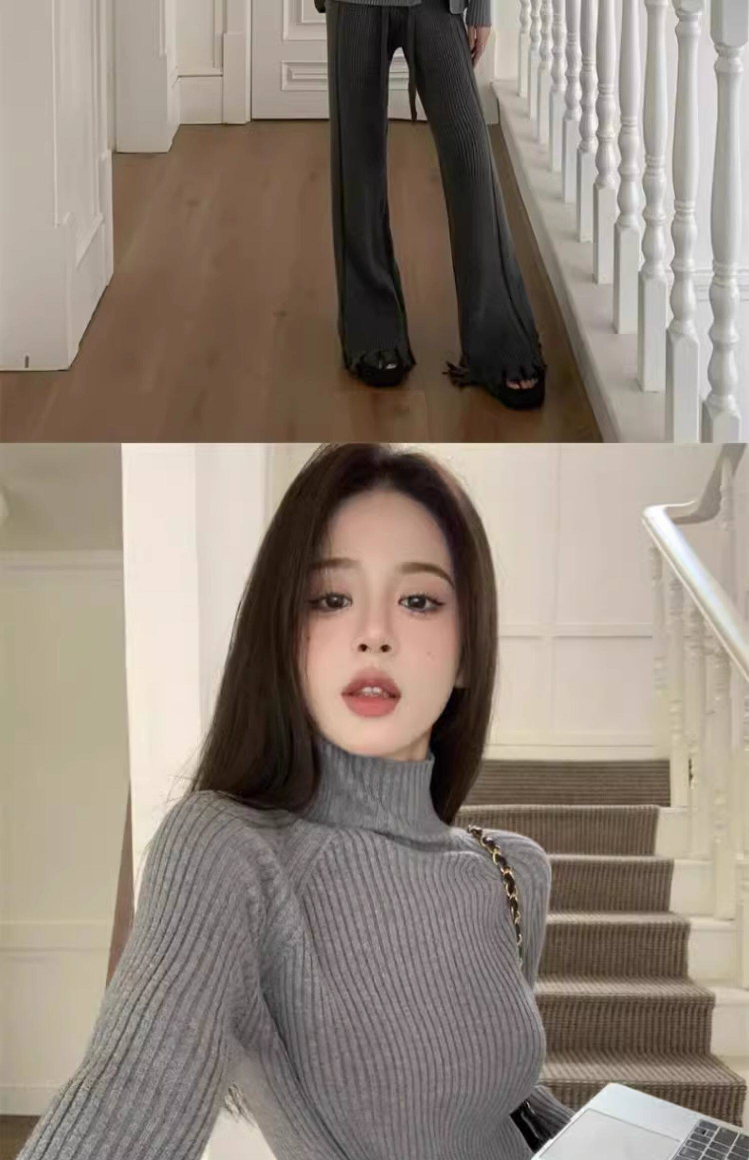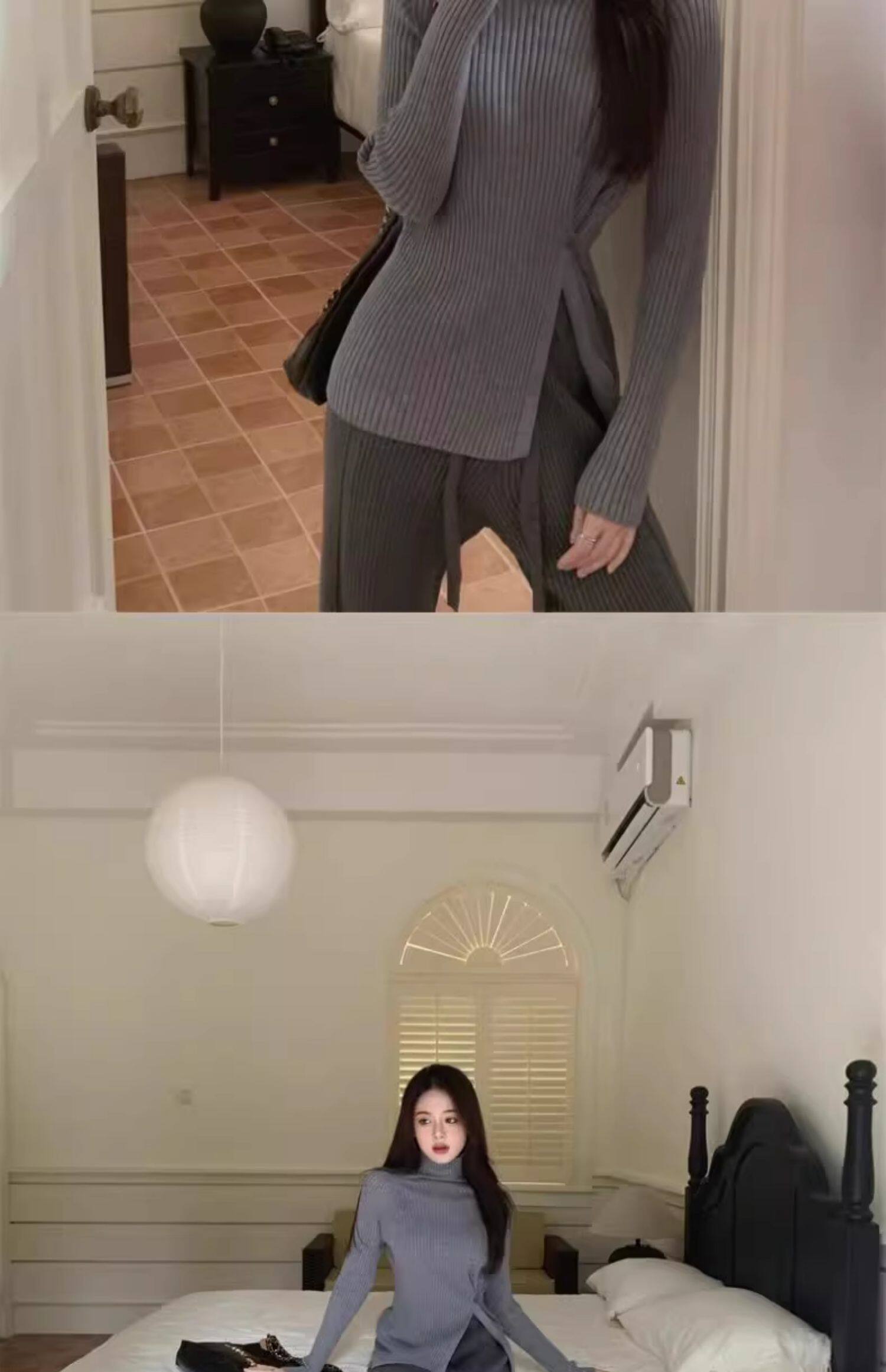 辣妹半高領長袖針織衫女秋冬設計感小衆開叉不規則打底衫內搭洋氣