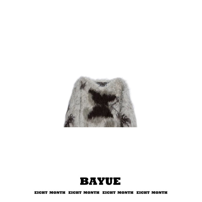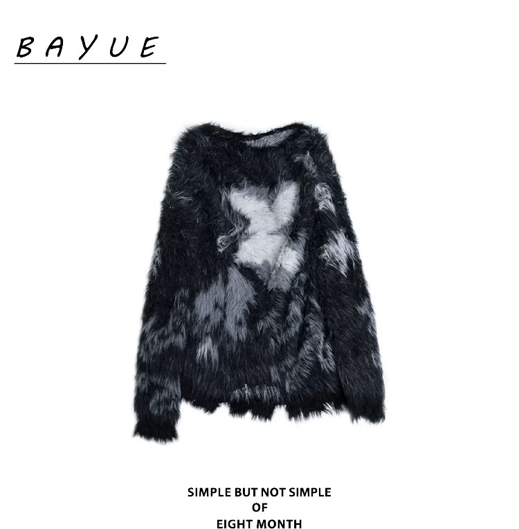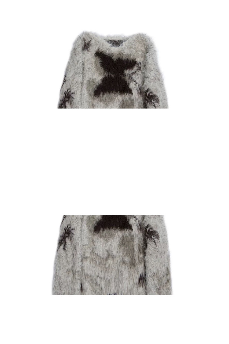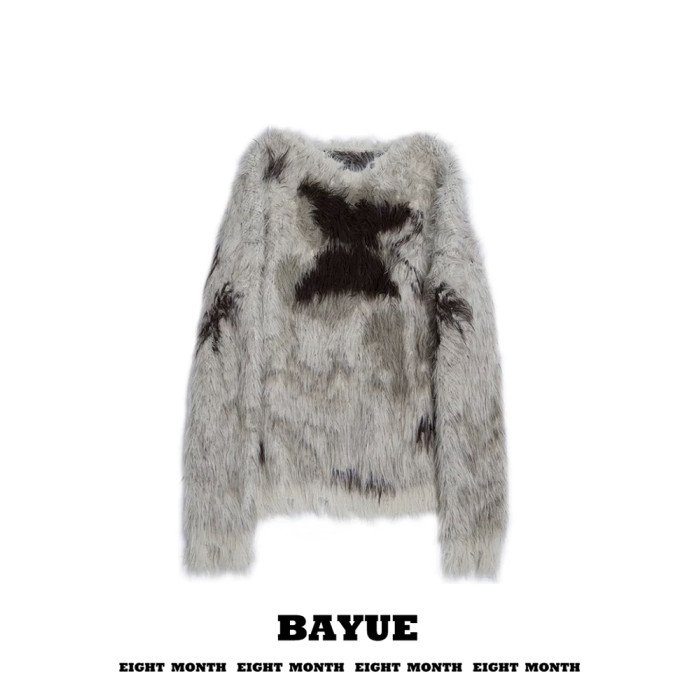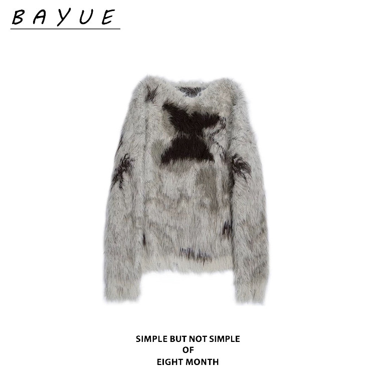 美拉德復古提花仿貂毛毛衣女秋冬外穿辣妹慵懶風寬鬆大領口上衣