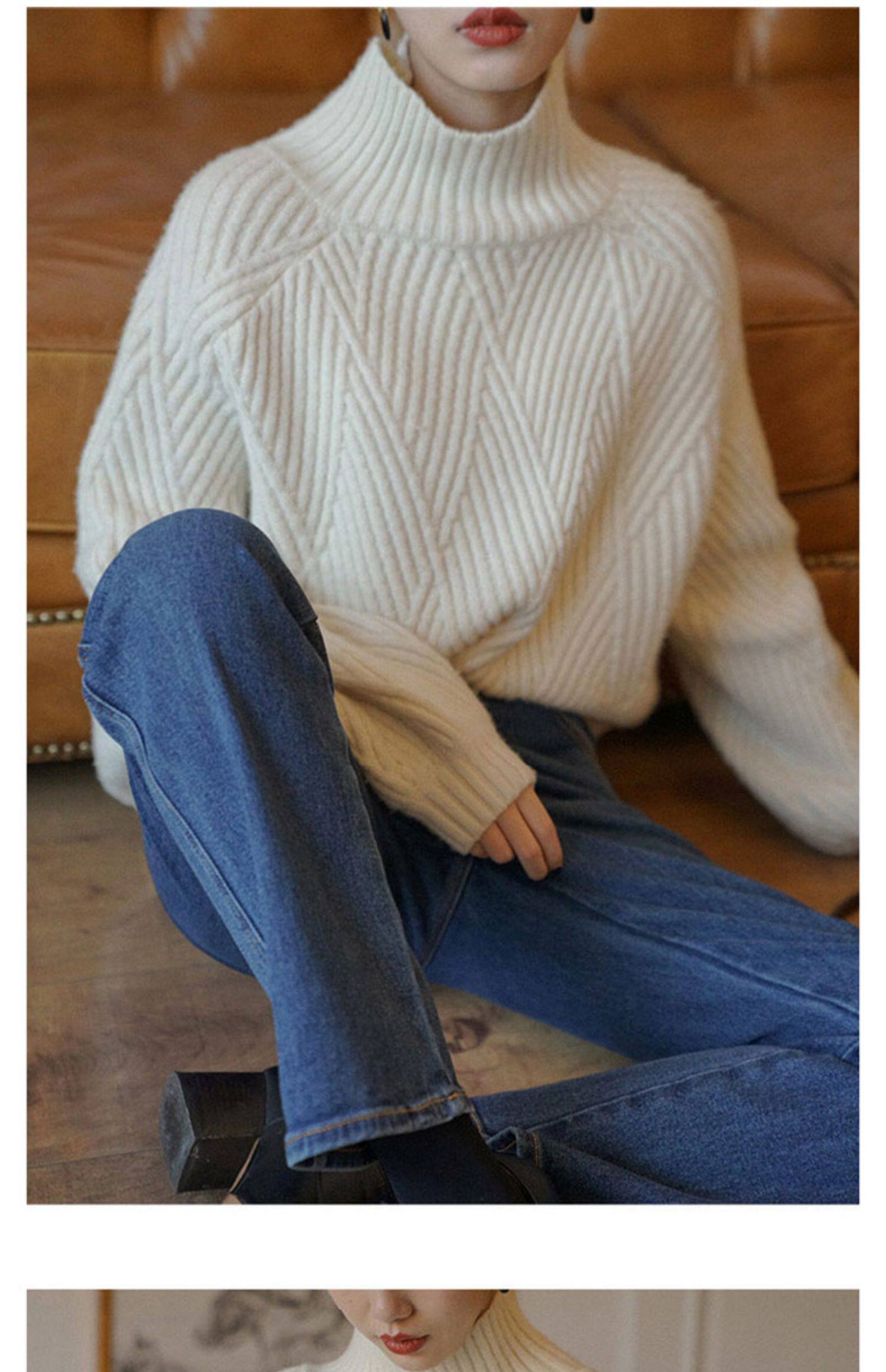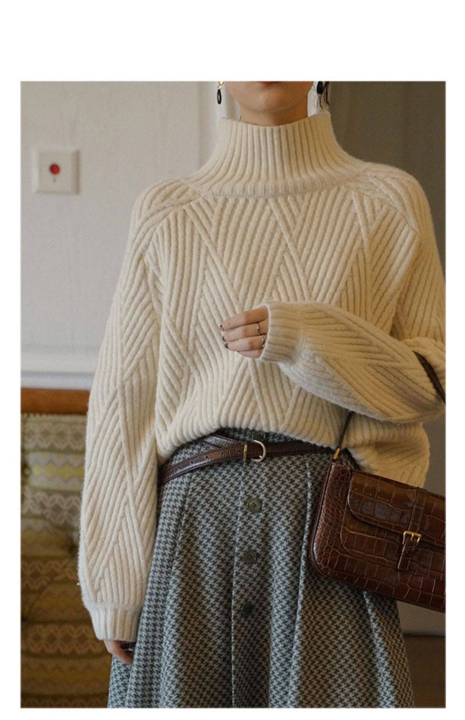 白色高領絞花毛衣2025新款女秋冬溫柔軟糯慵懶高級感奶fufu針織衫