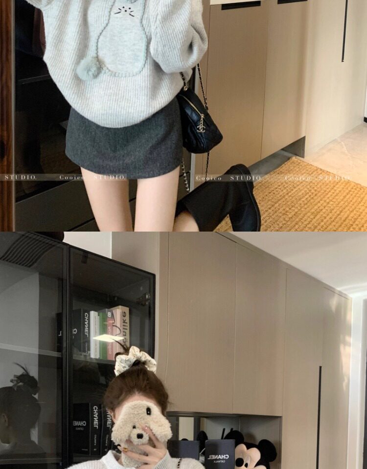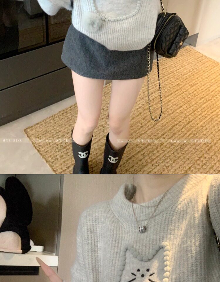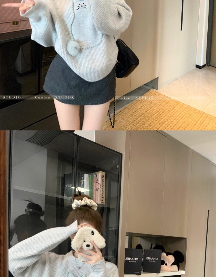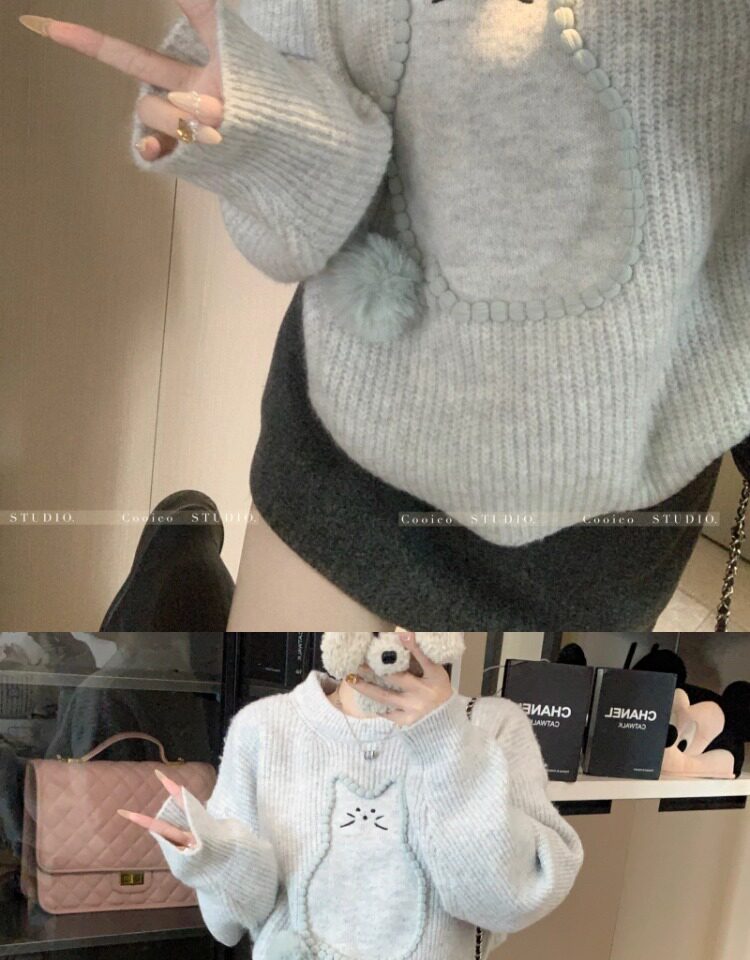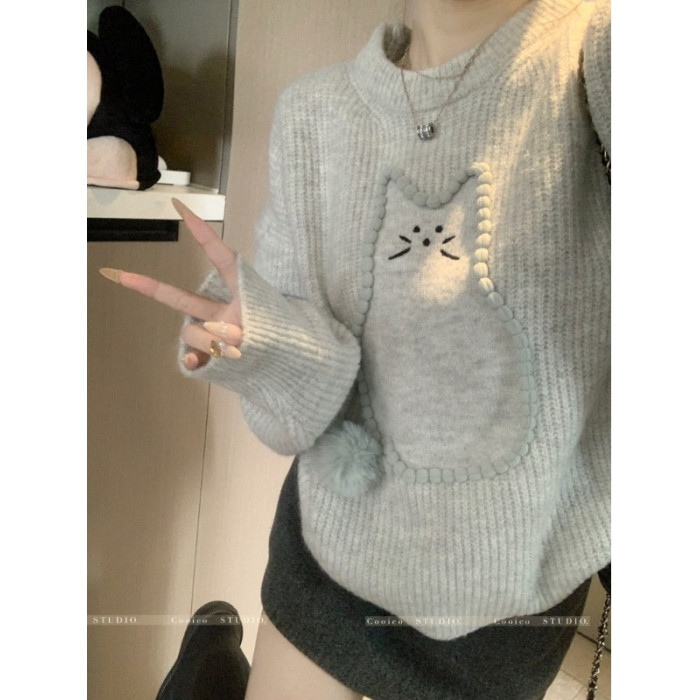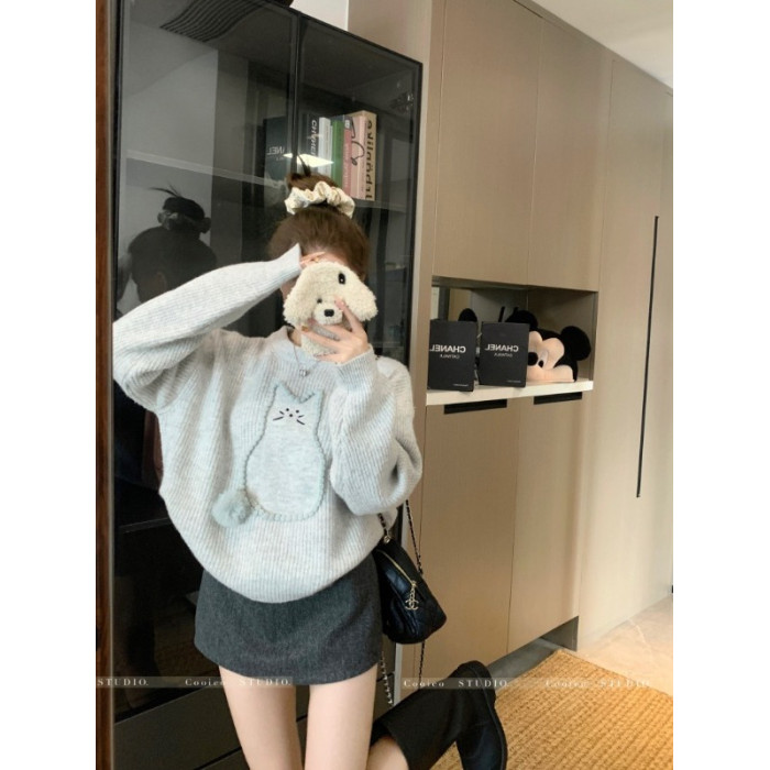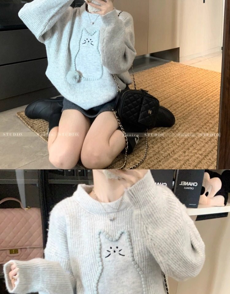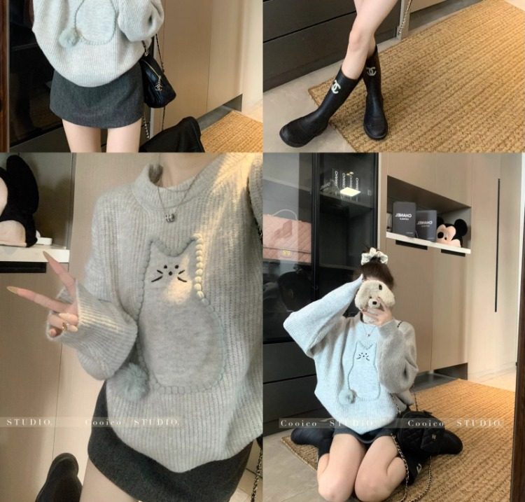 大碼圓領刺綉加厚毛衣女裝秋冬韓版慵懶風針織衫胖MM寬松休閒上衣