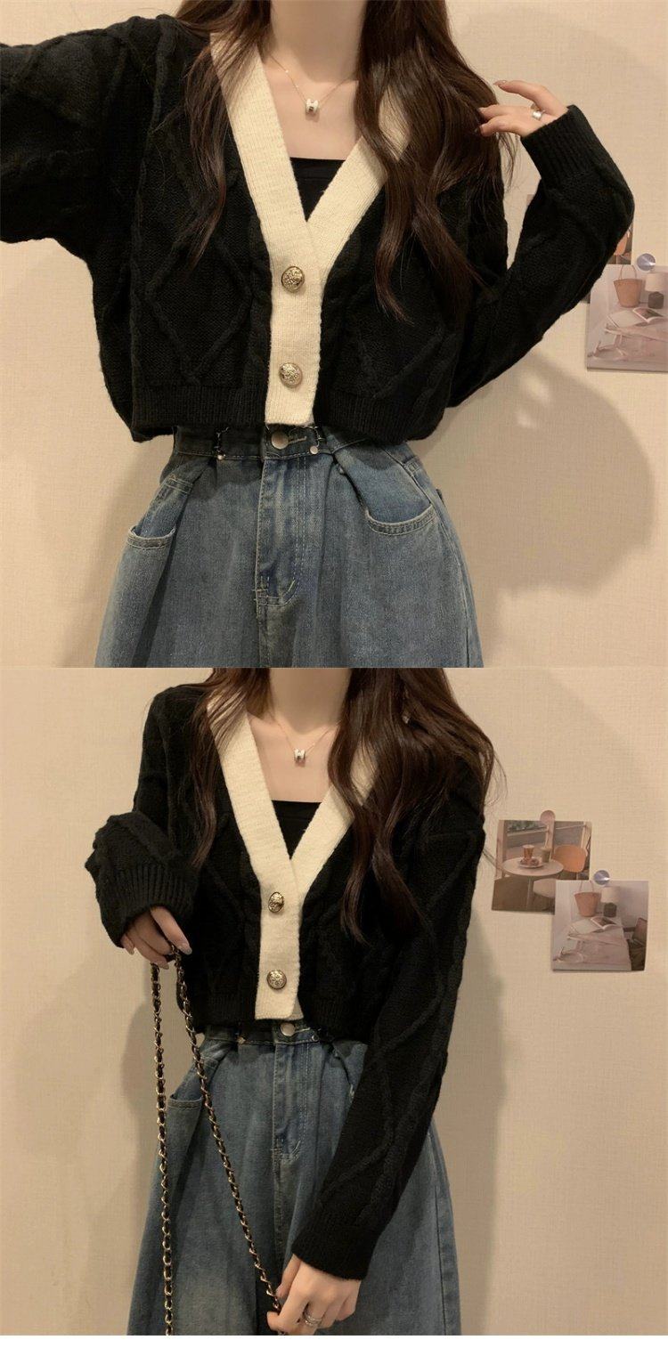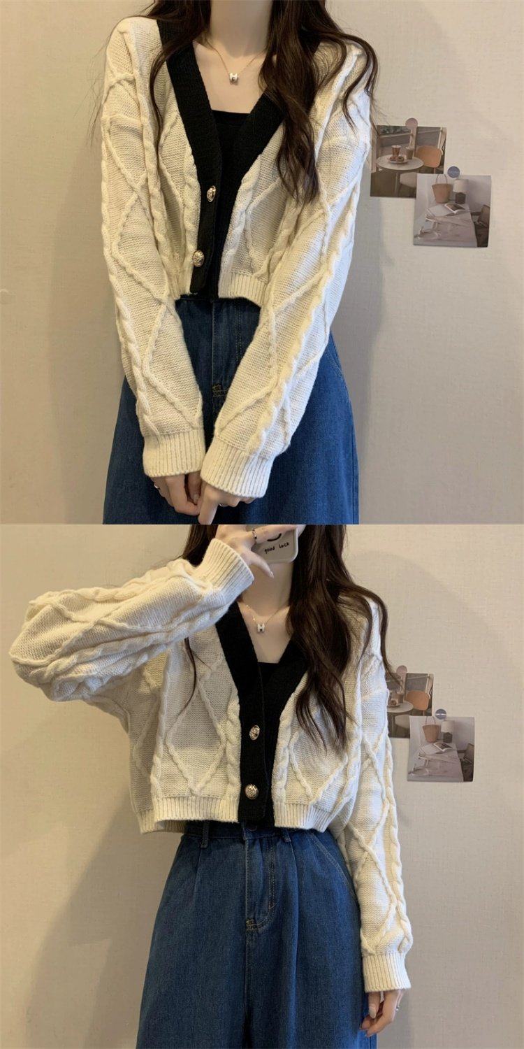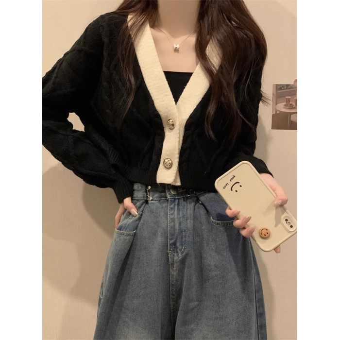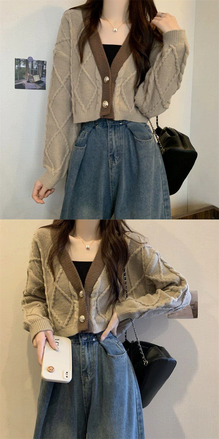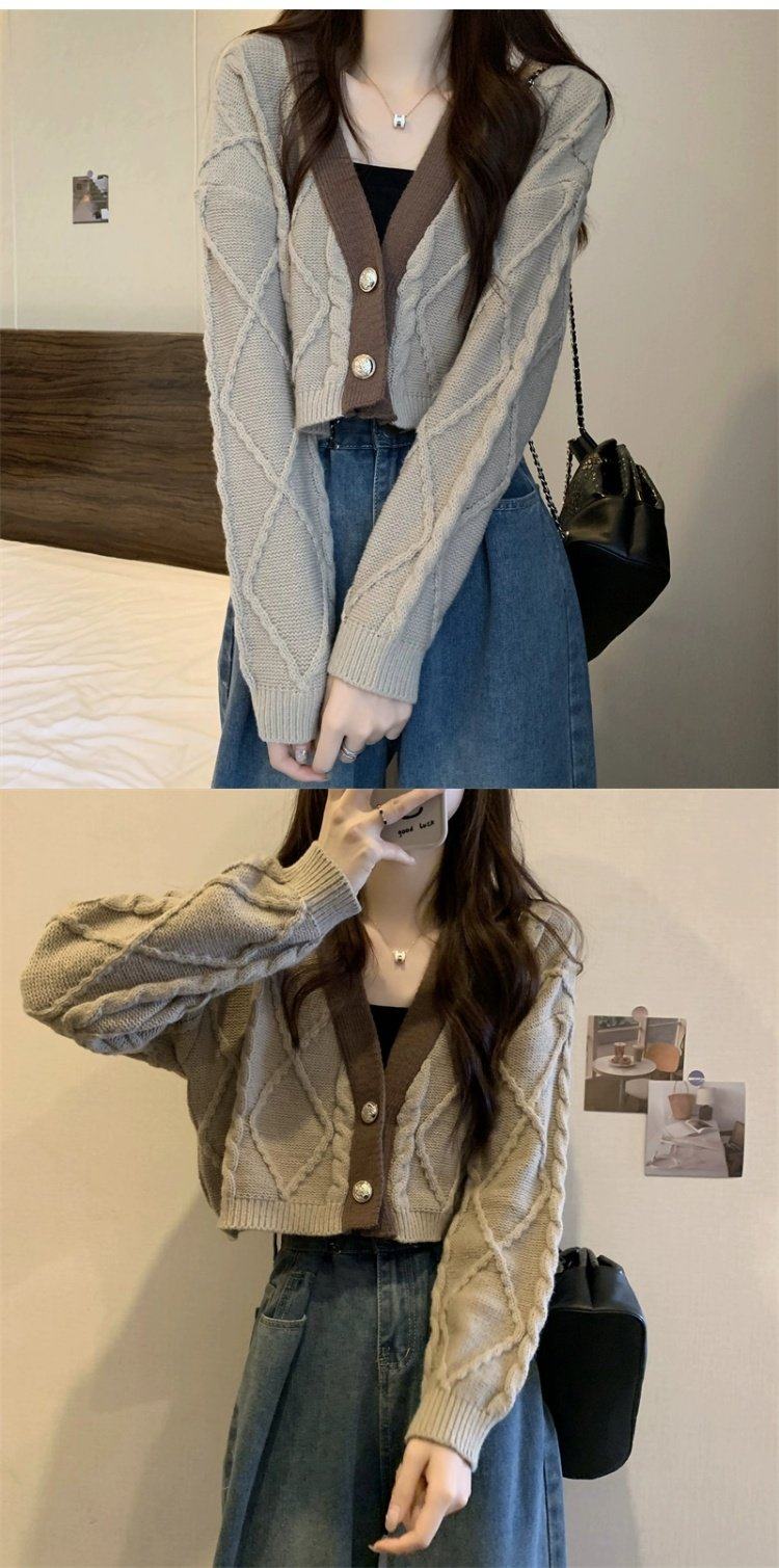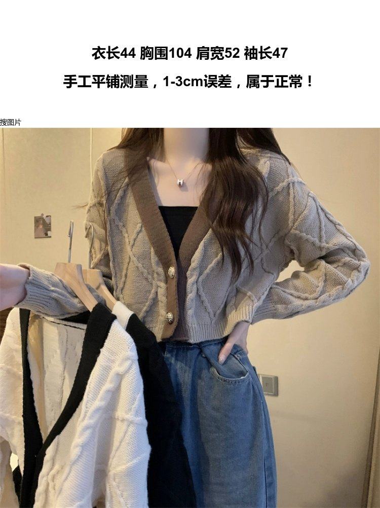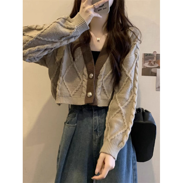 復古咖色軟糯麻花毛衣外套女春秋款粗線寬鬆針織開衫外搭短款上衣