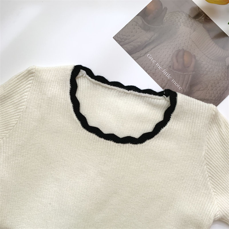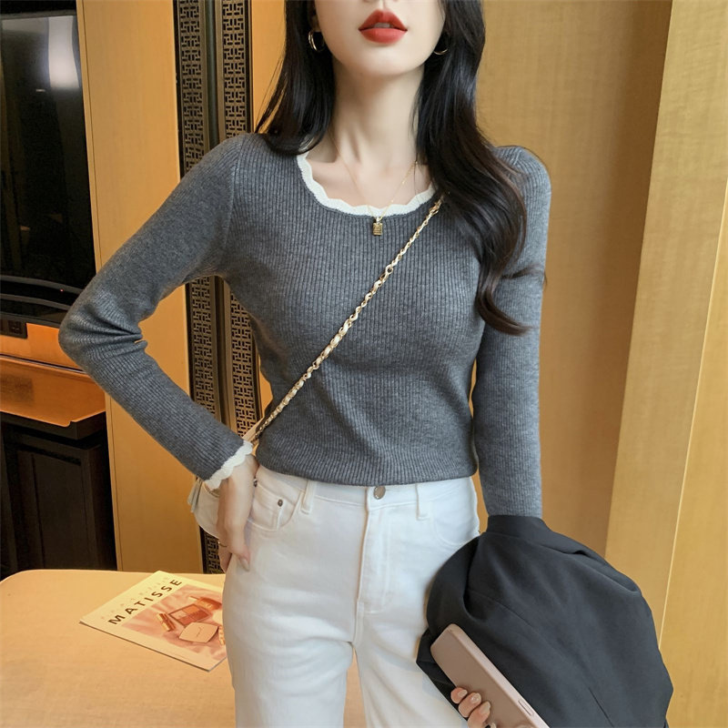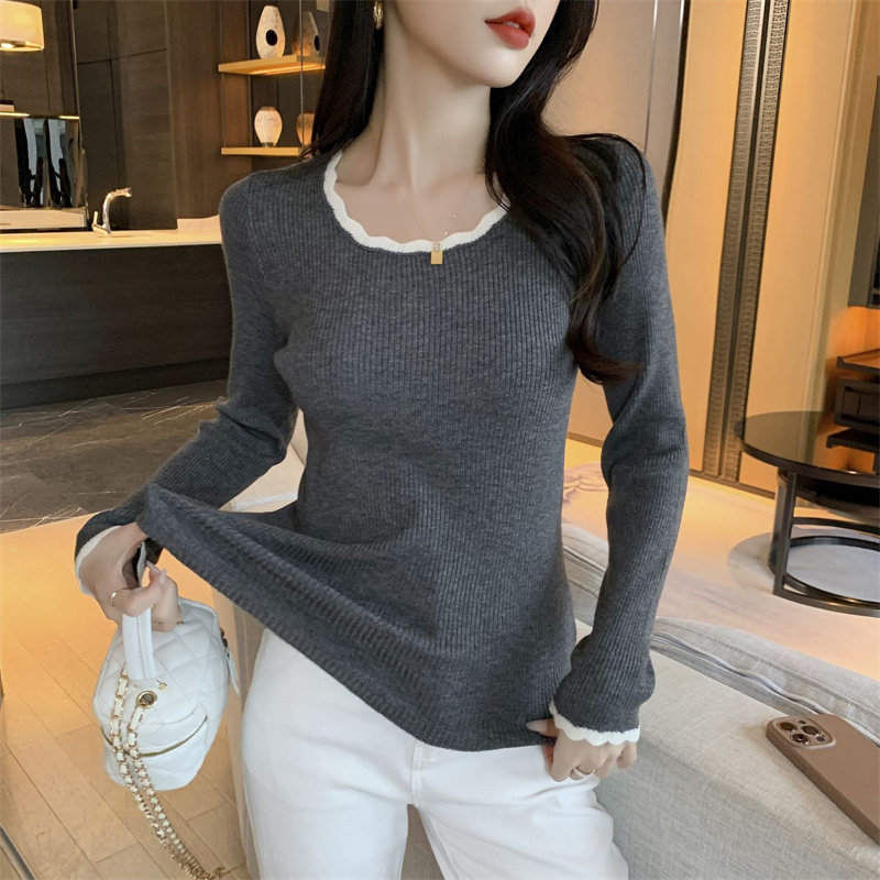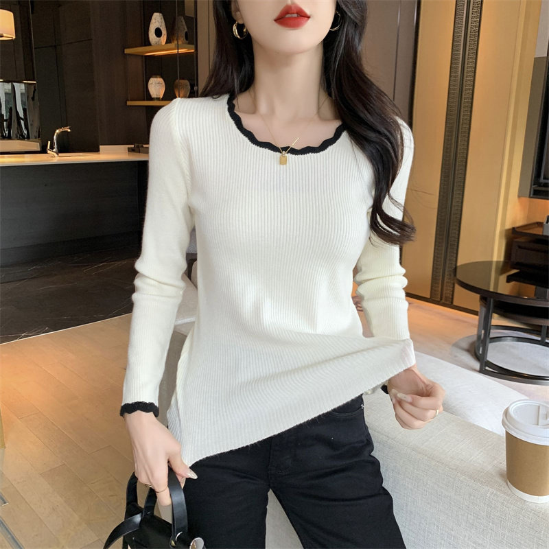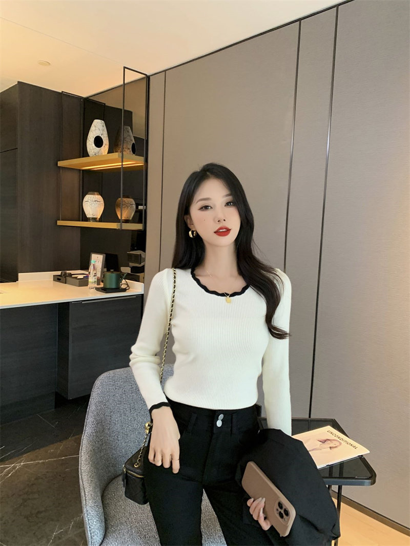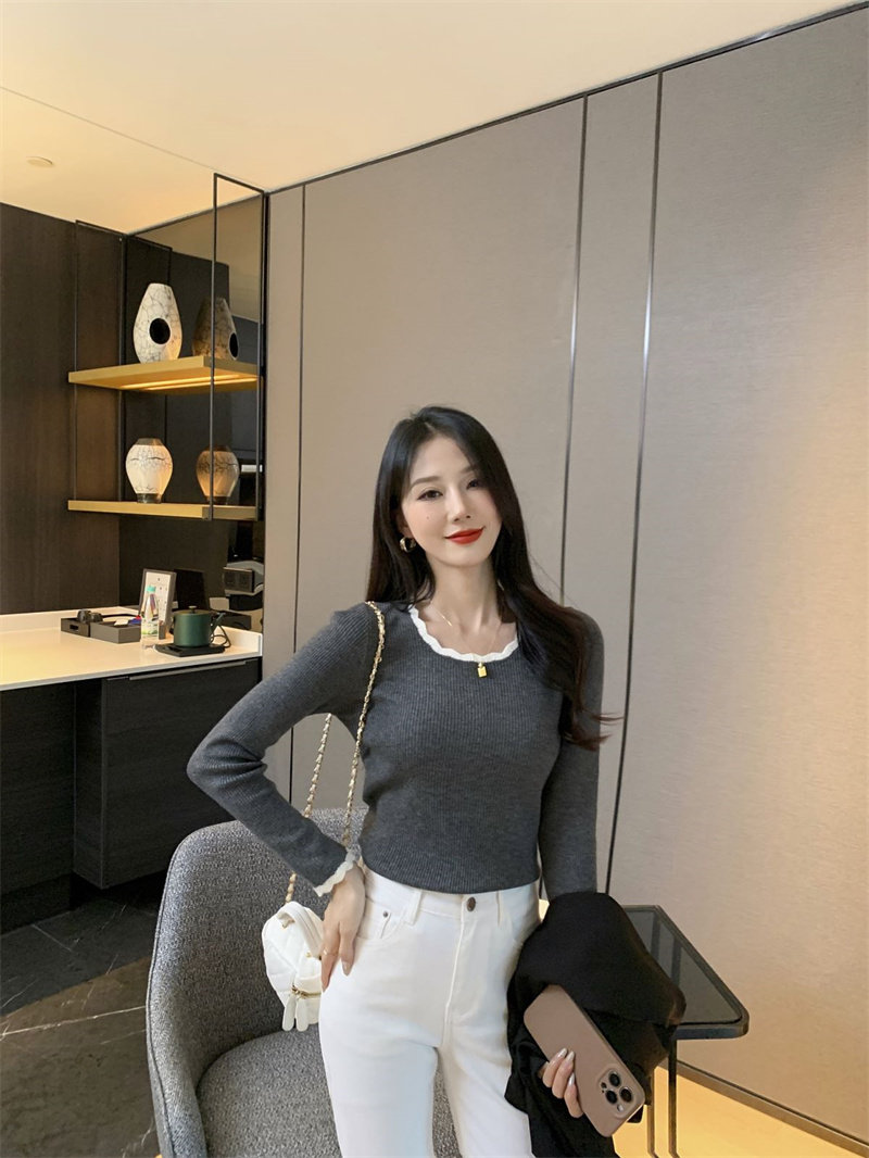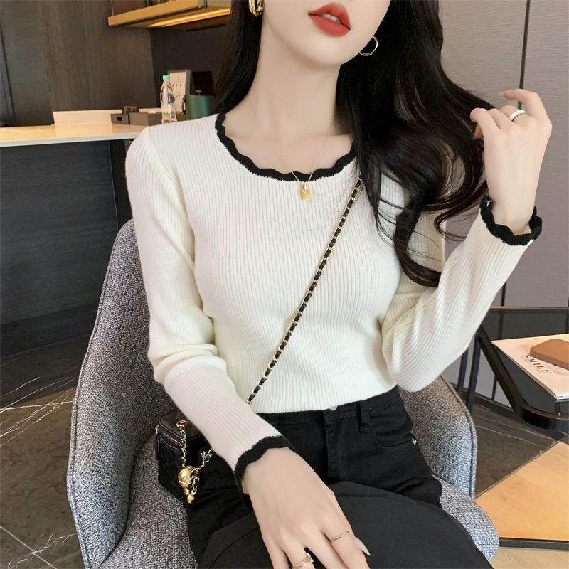 木耳邊方領內搭修身毛衣女打底衫春秋高級感小衆設計感針織上衣潮
