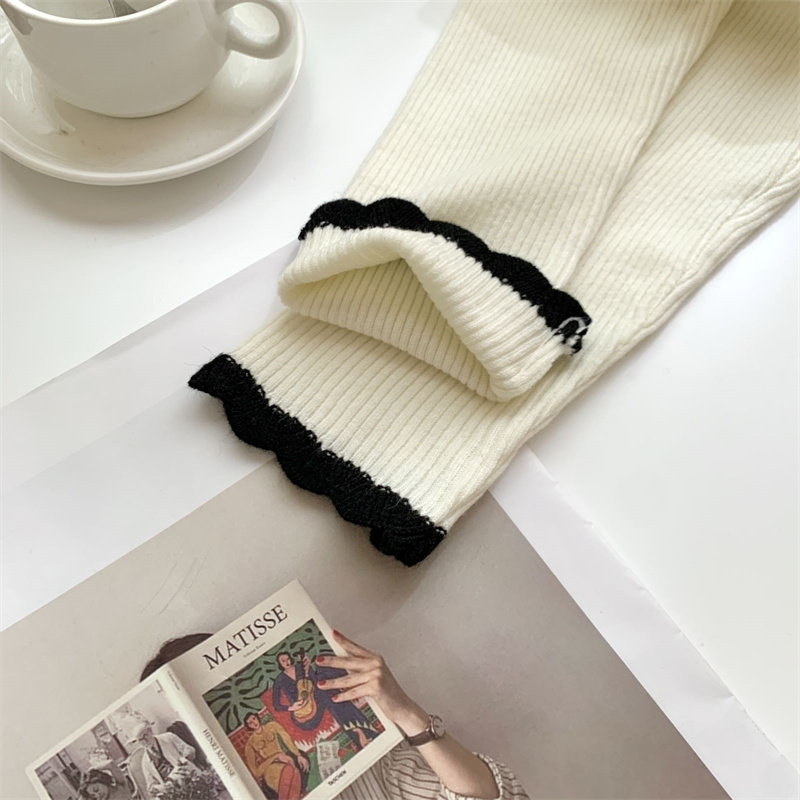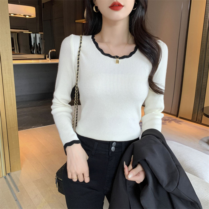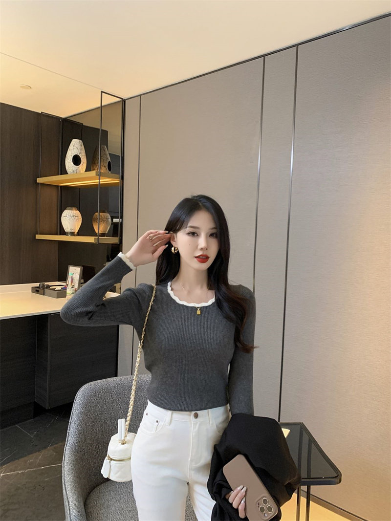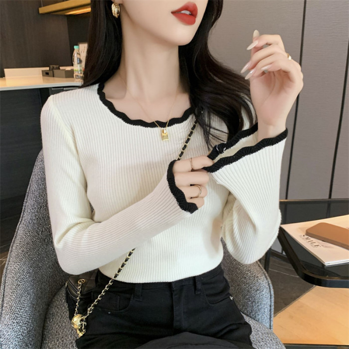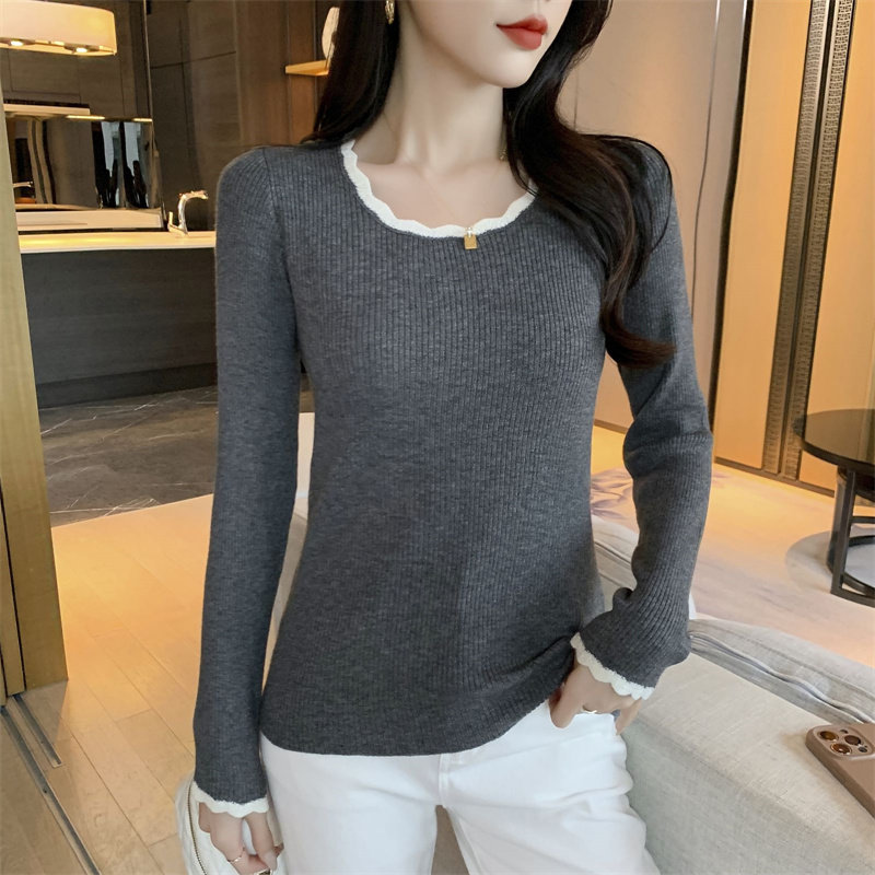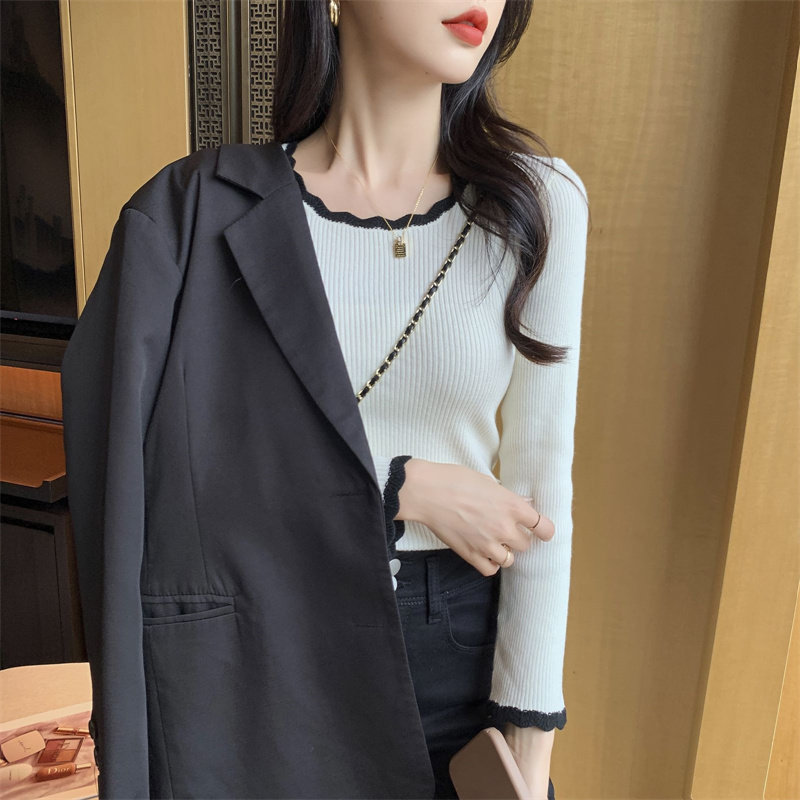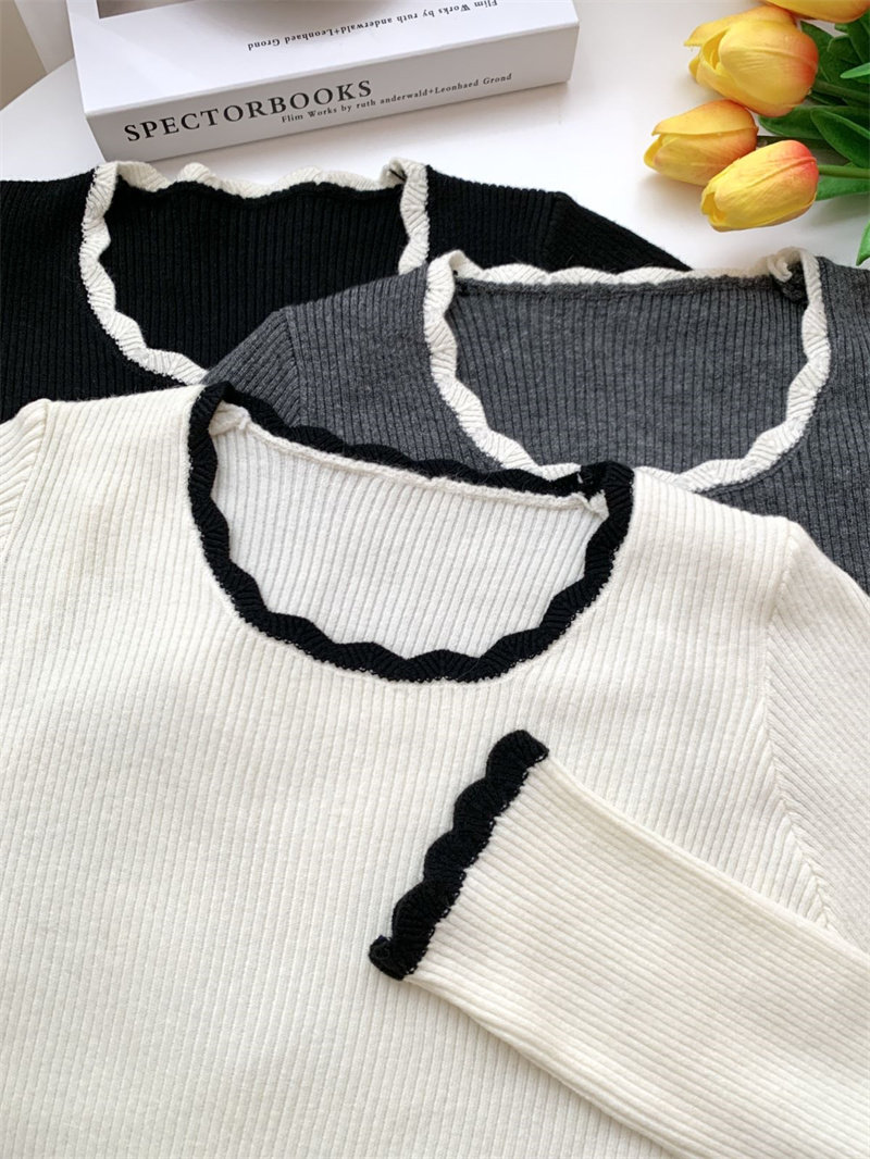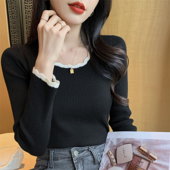 木耳邊方領內搭修身毛衣女打底衫春秋高級感小衆設計感針織上衣潮
